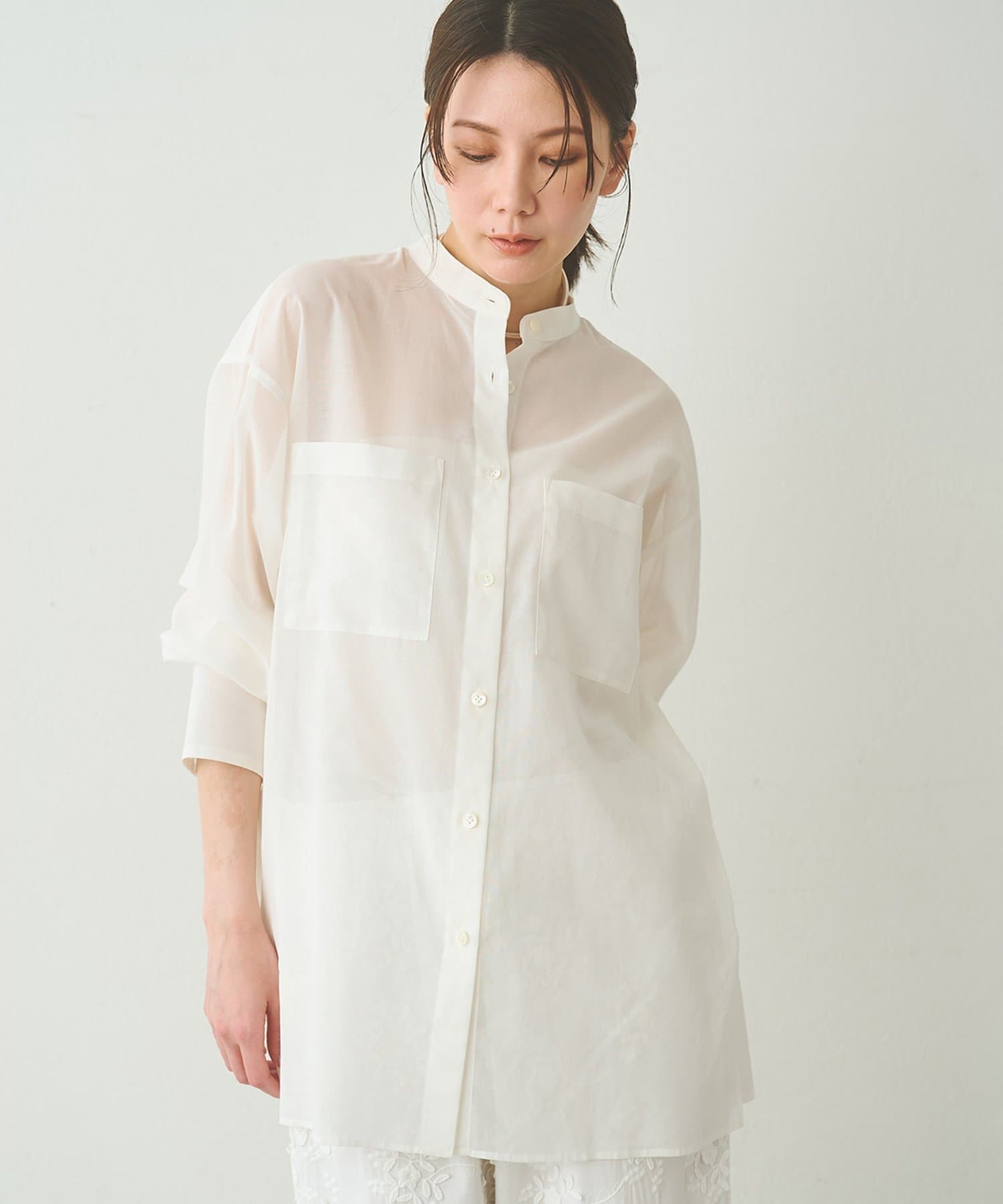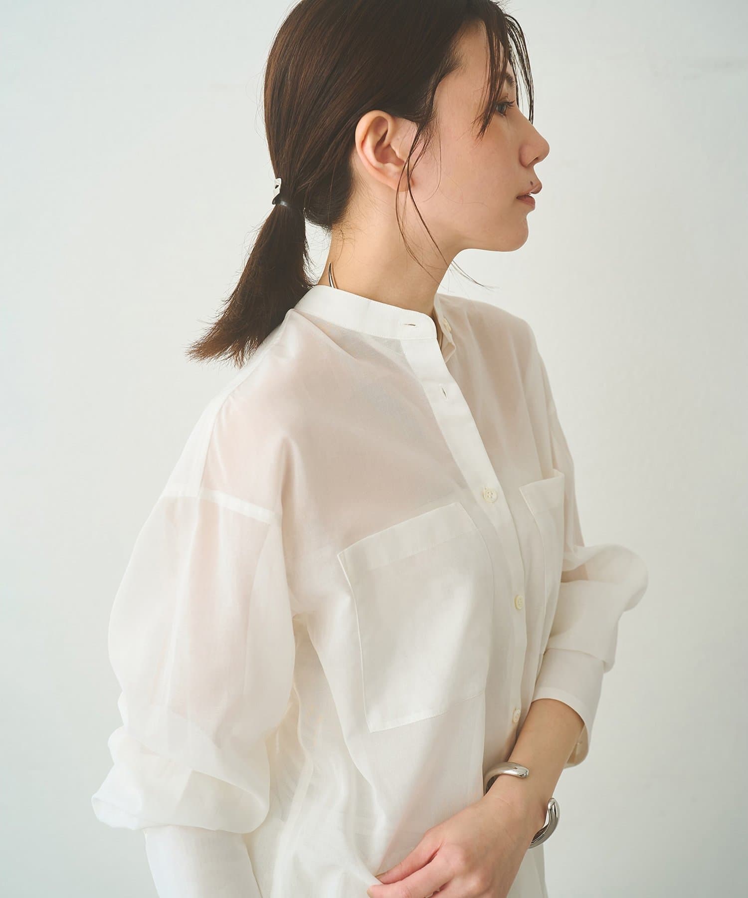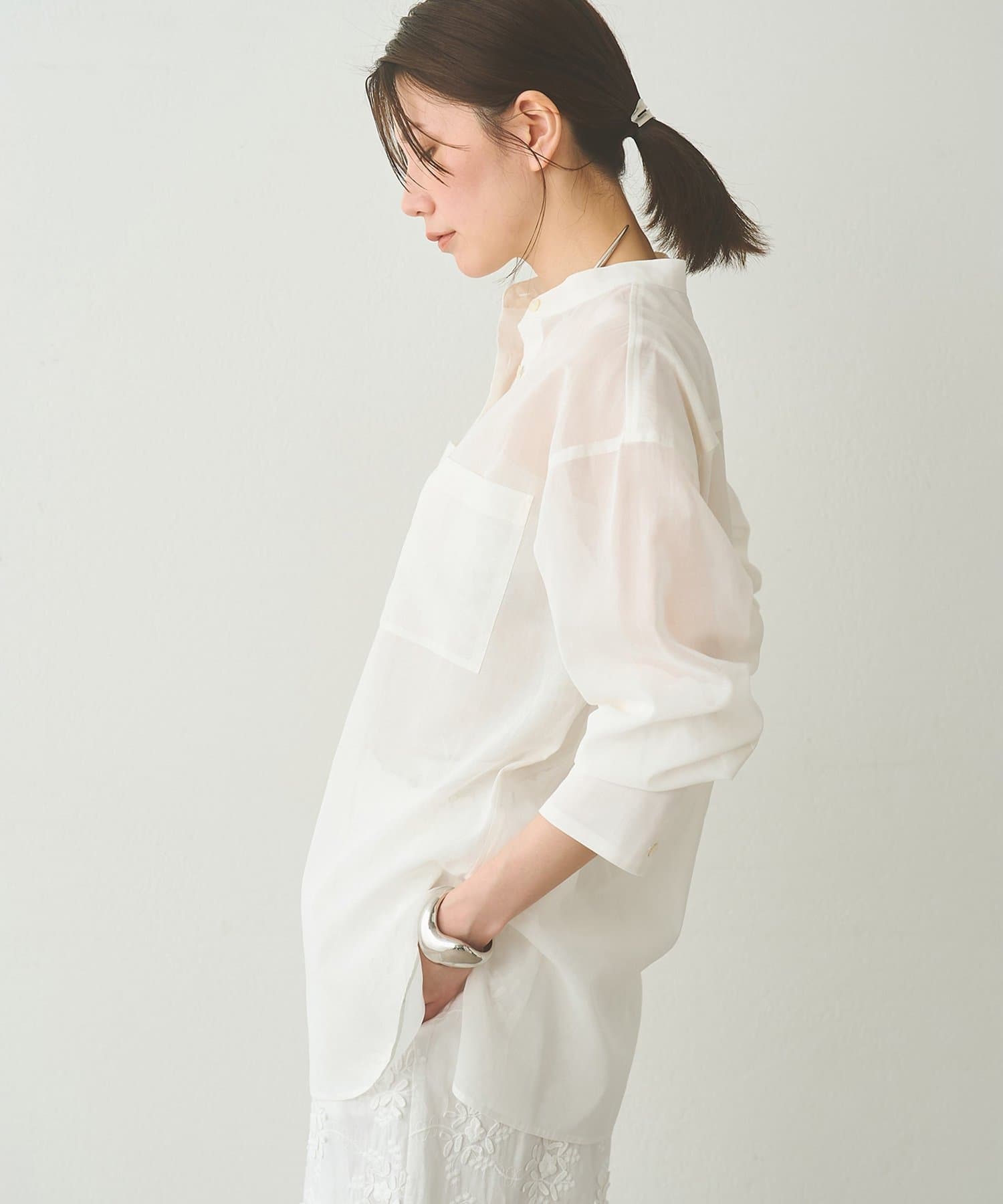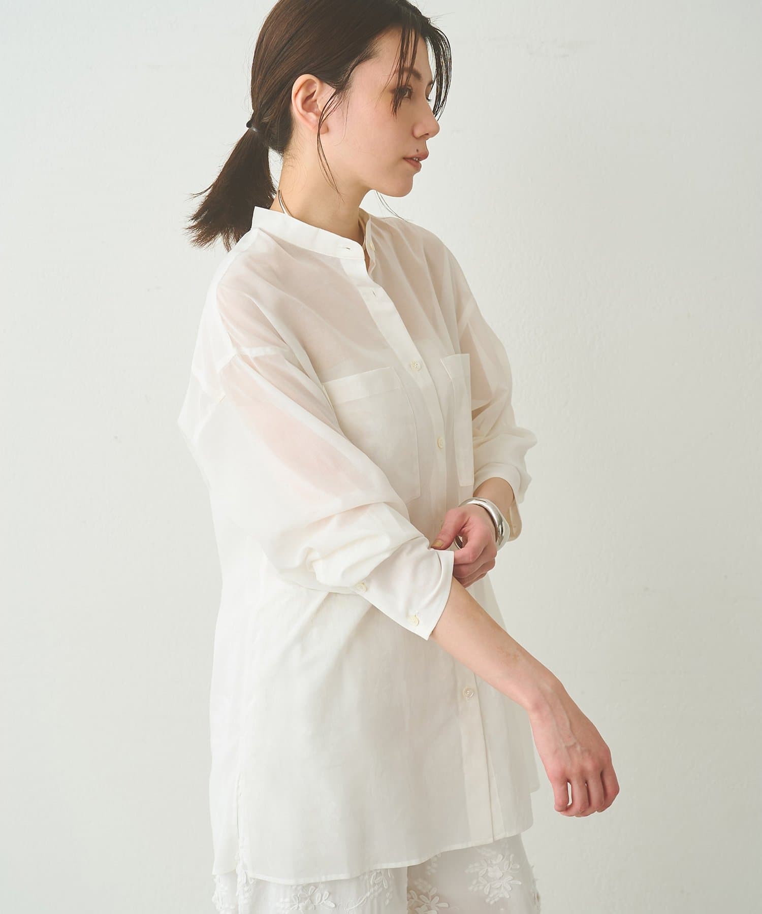 ナチュラルな清涼感が魅力的な、大人のオーガンジーシャツ