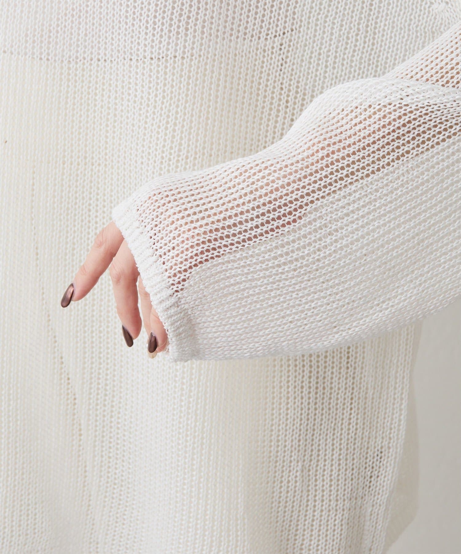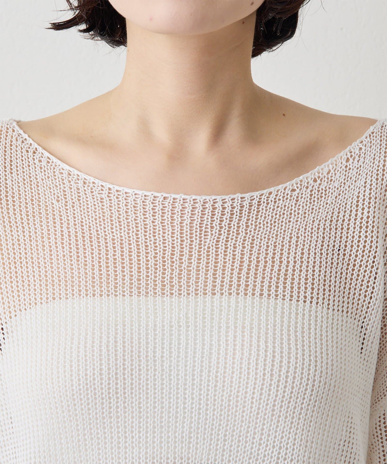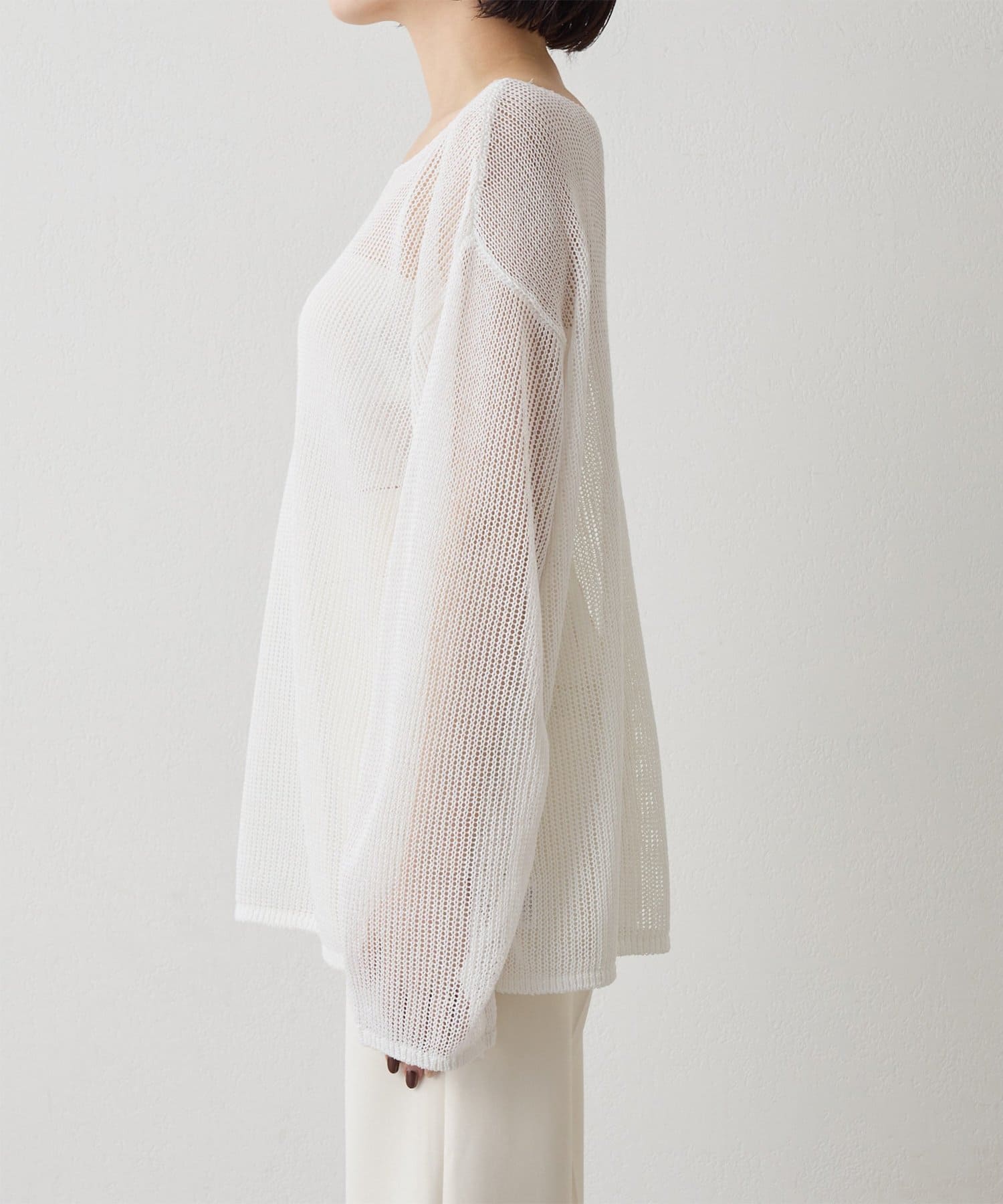 抜け感たっぷりに仕上げた、大人のメッシュニット