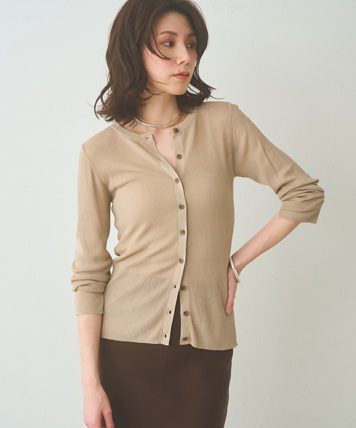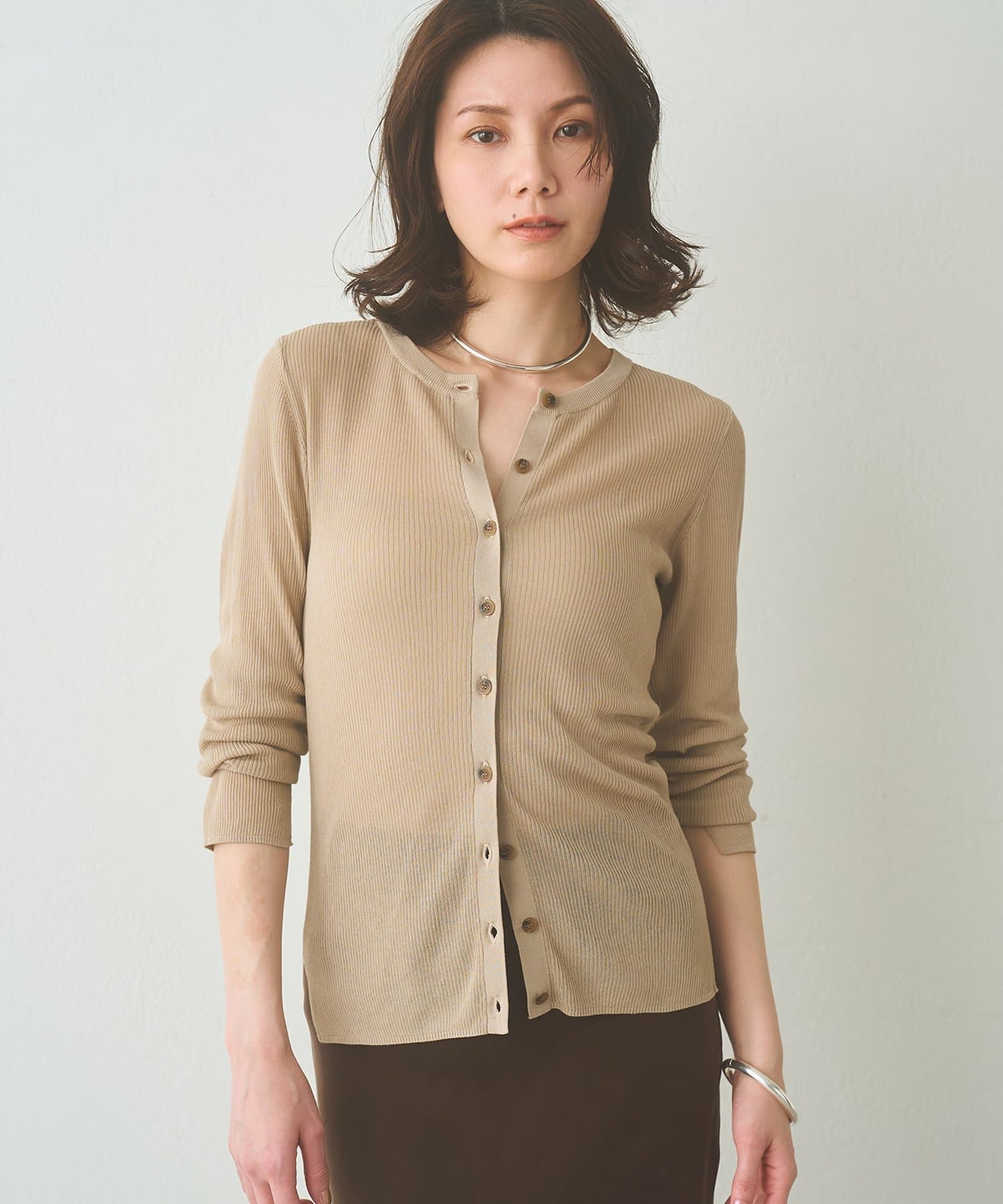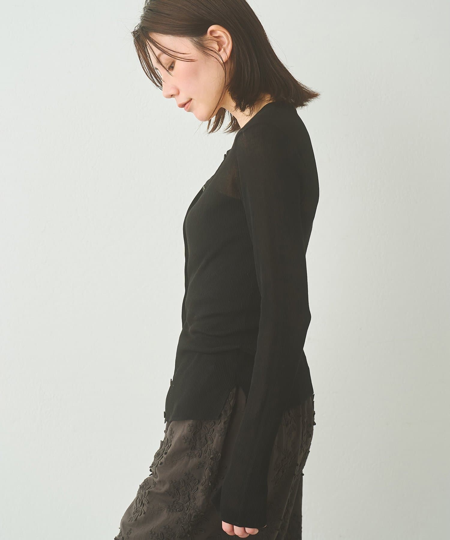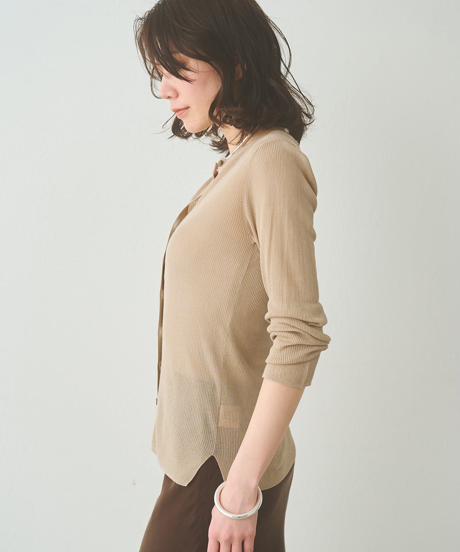上品な透け感が嬉しい、大人のシアーリブカーディガン