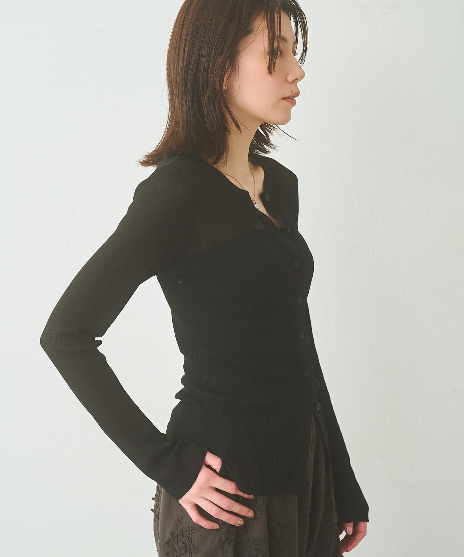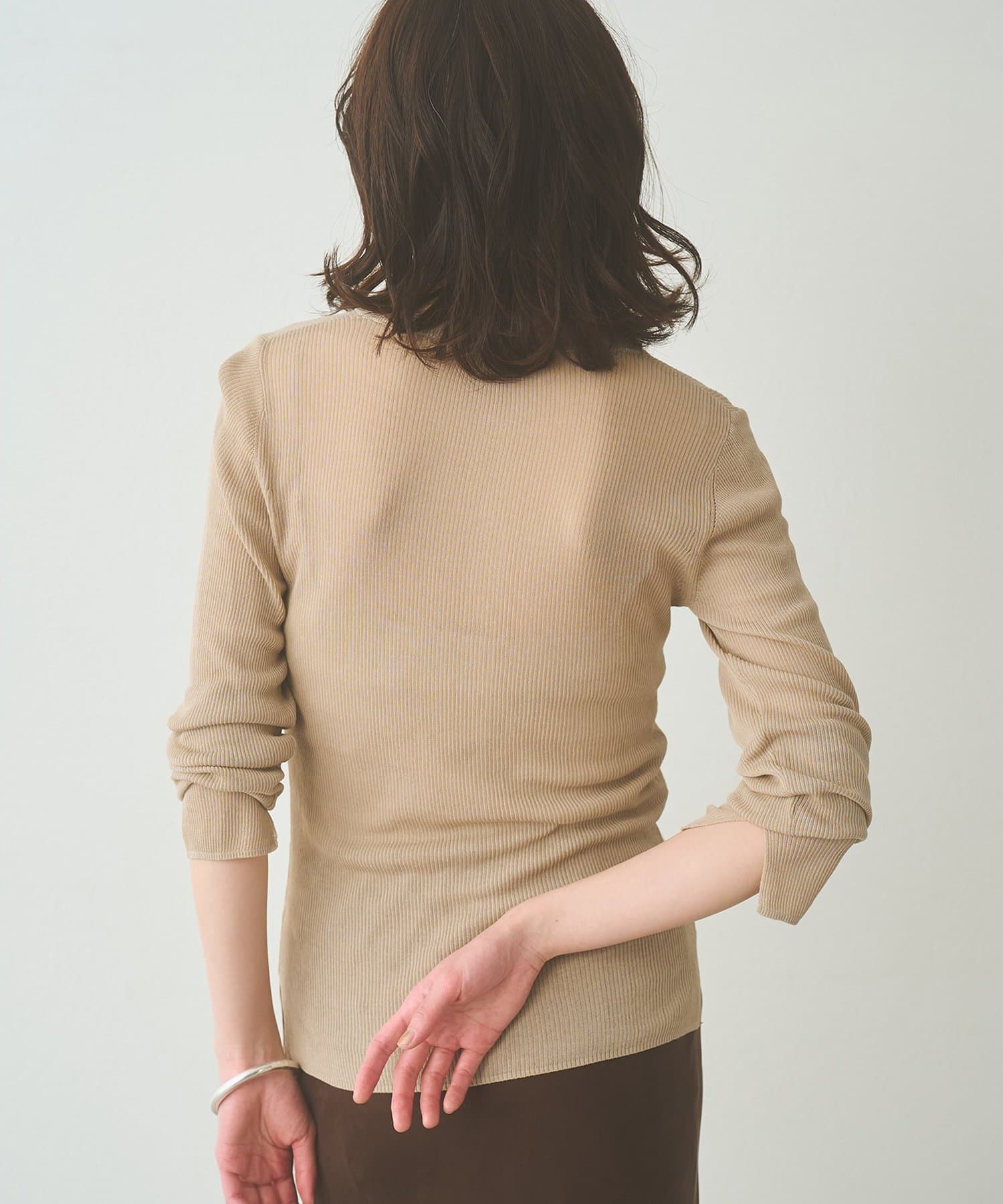 ■16ゲージの薄手のリブは、透けすぎず程よいシアー感が楽しめる一枚。