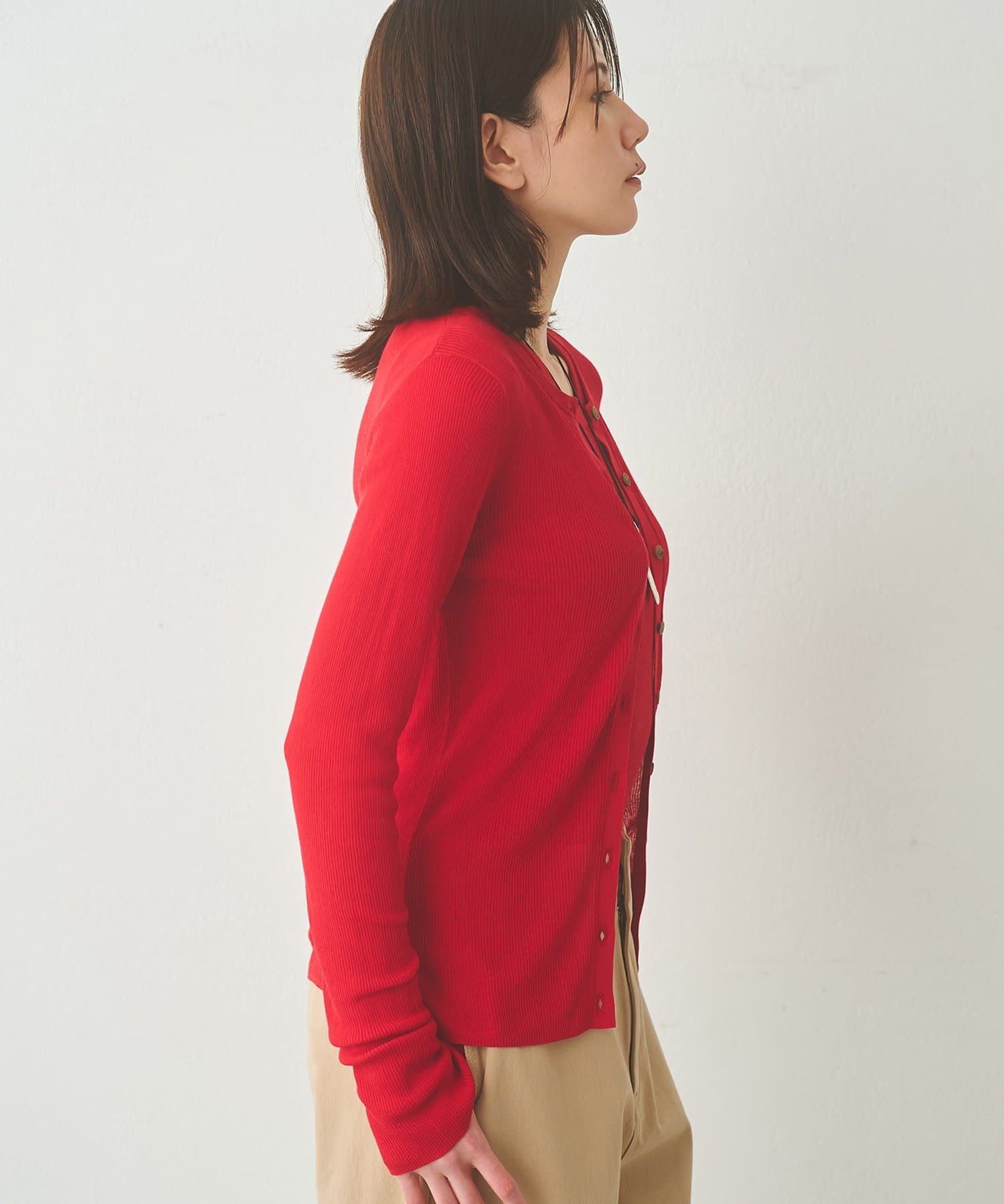 Whim Gazette(ウィム ガゼット) シアーリブニットカーディガン