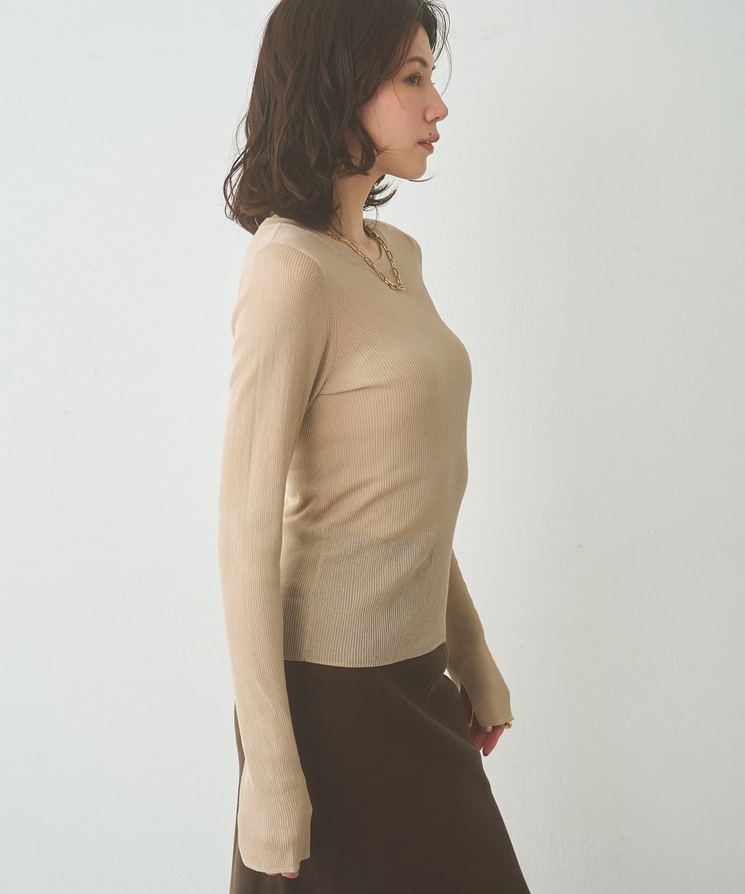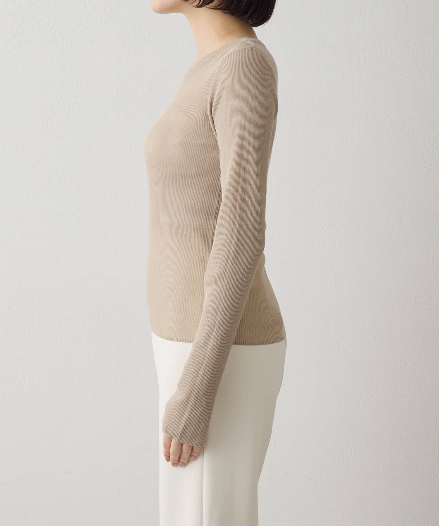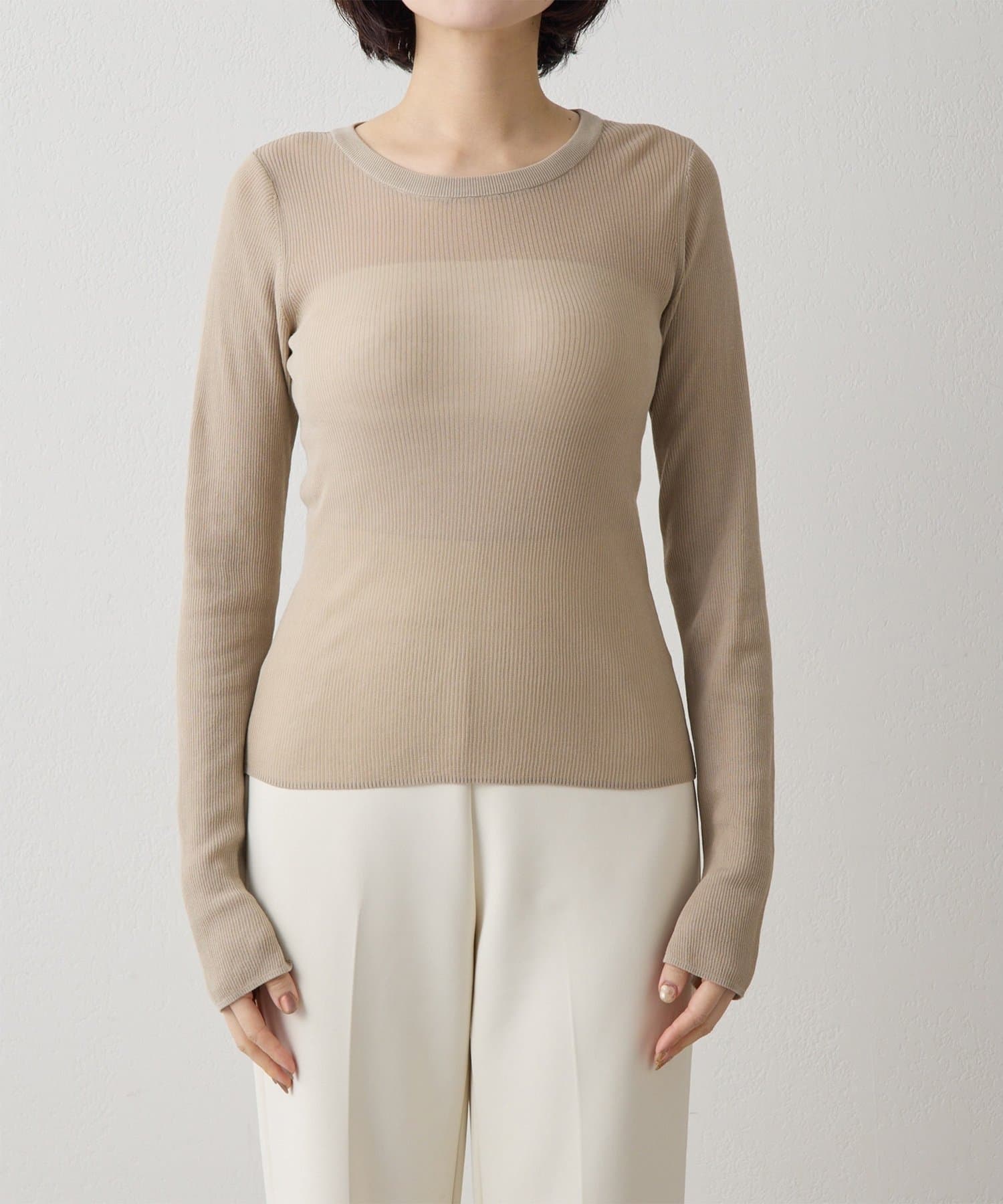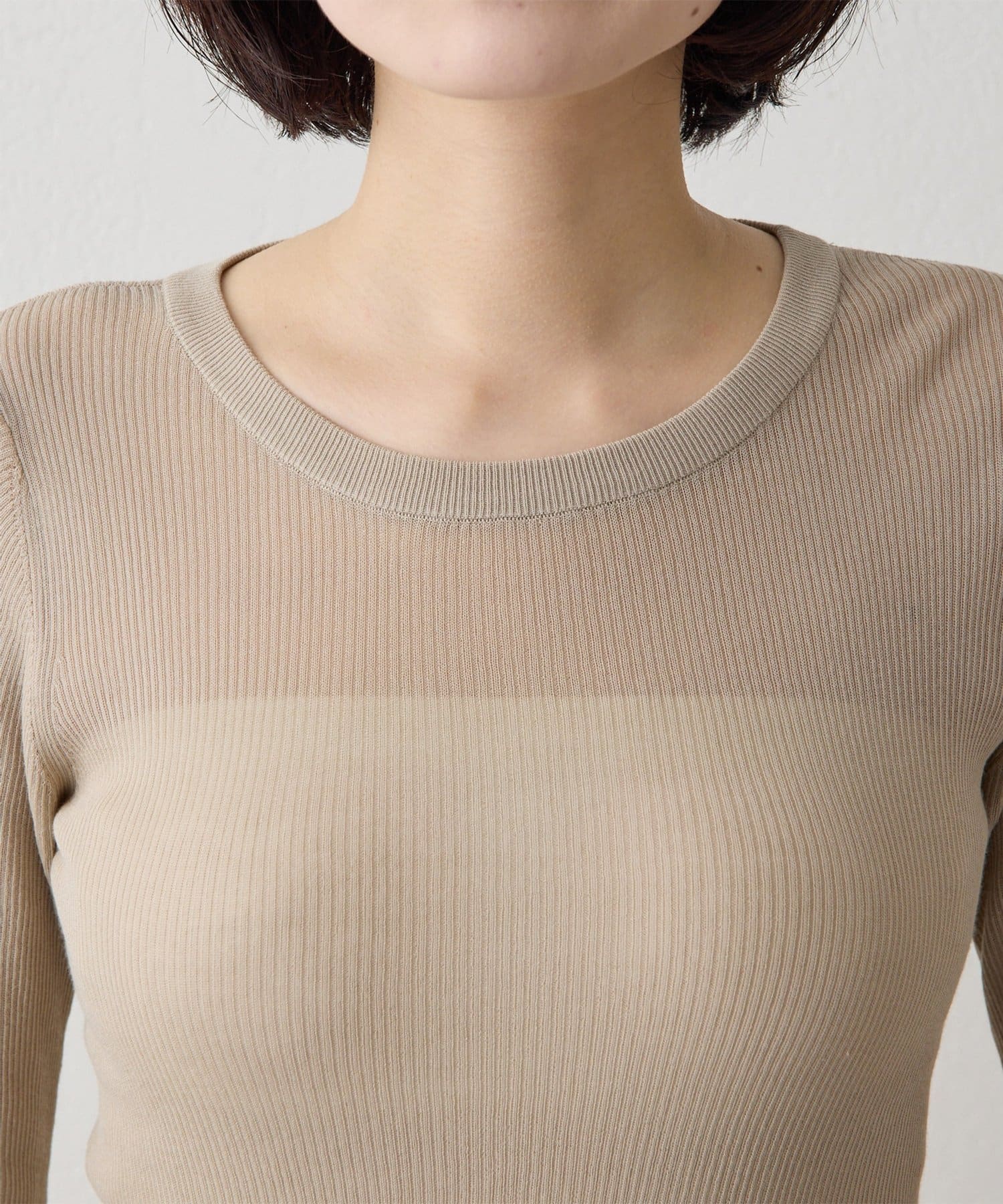 ■16ゲージの薄手のリブは、透けすぎず程よいシアー感が楽しめる一枚。