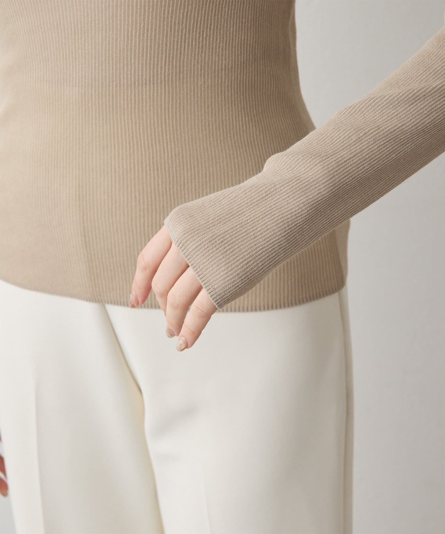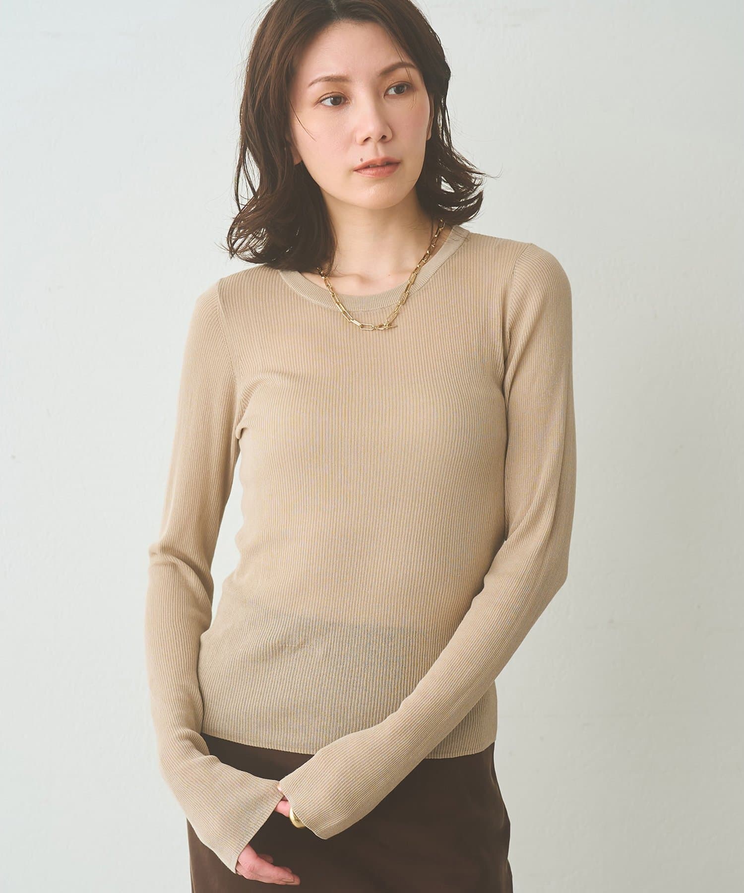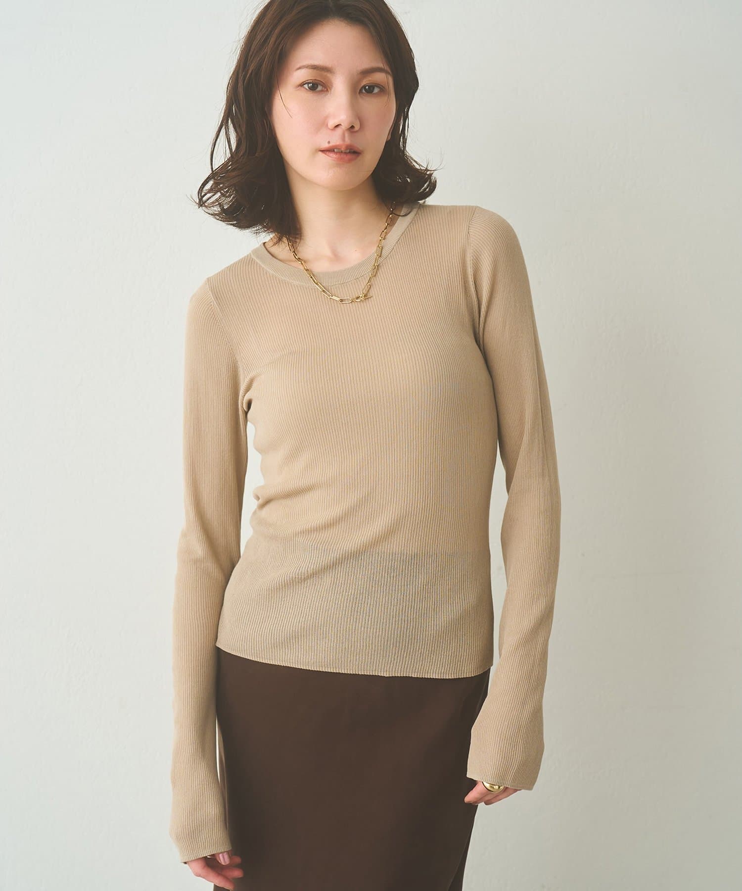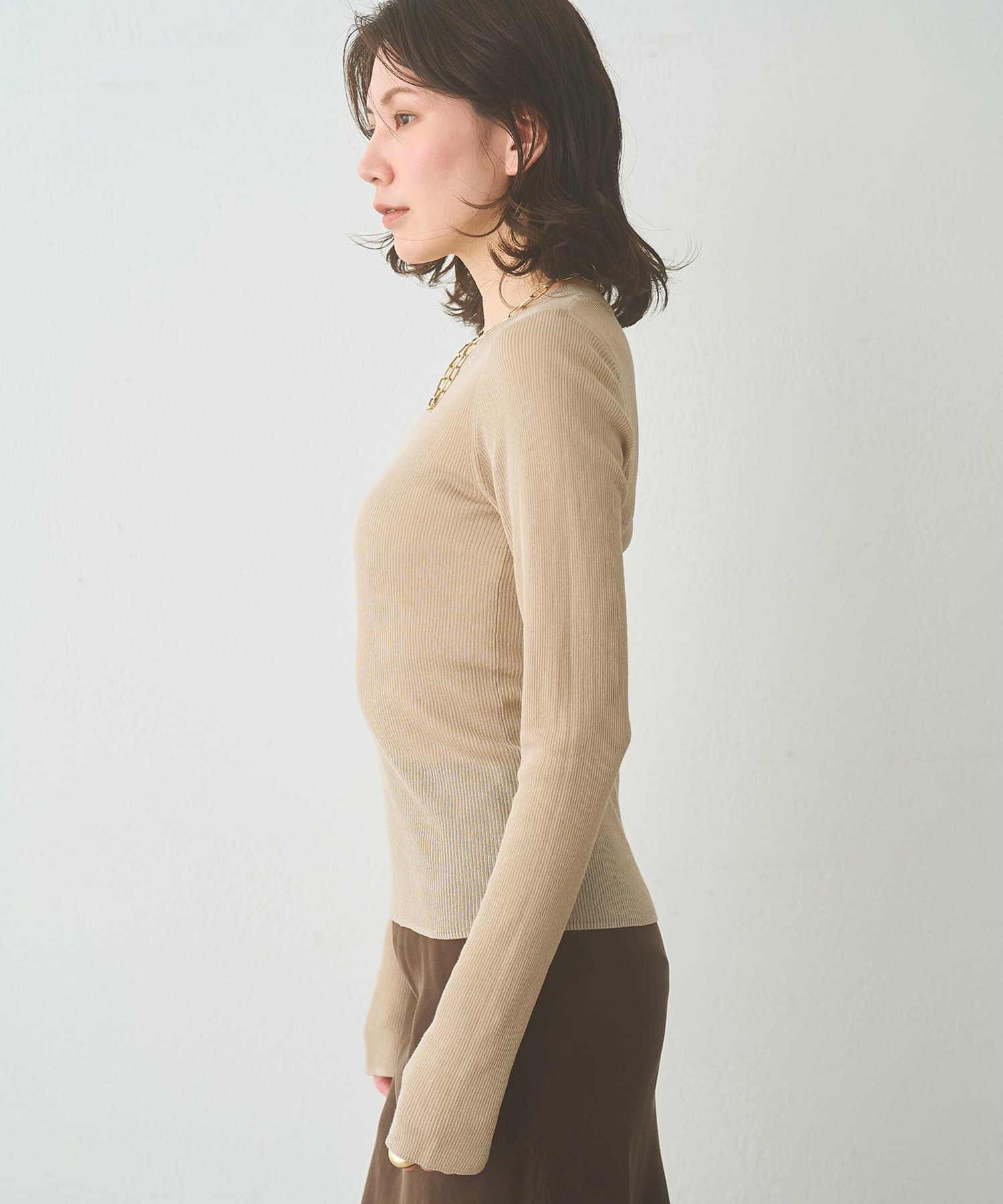 ■16ゲージの薄手のリブは、透けすぎず程よいシアー感が楽しめる一枚。