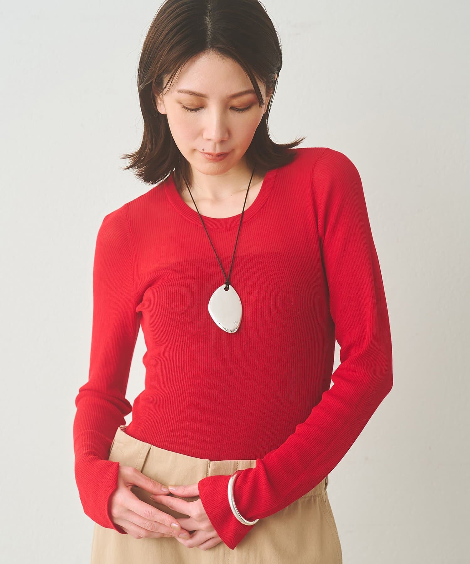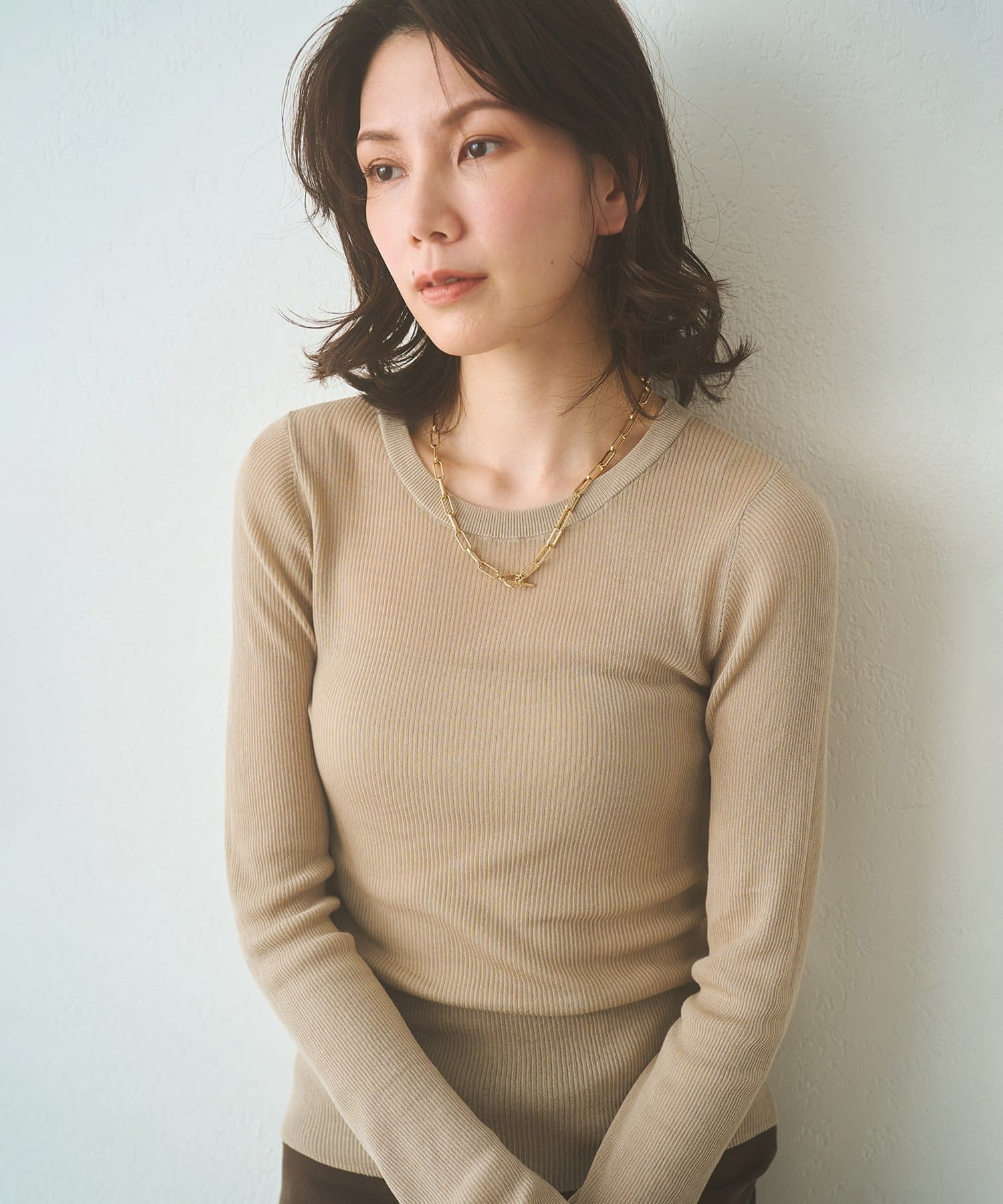 ■身体のラインを拾いすぎず、程よくフィット感のある女性らしいシルエットもポイント。