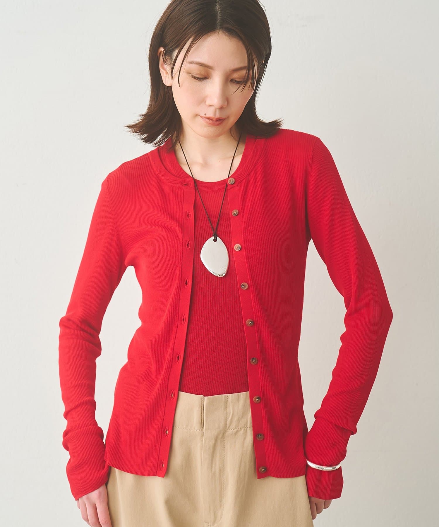 ■同素材の16Gハイゲージニットカーディガン(ブランド品番:WGZ1061305A0003)とのアンサンブルもおすすめ。