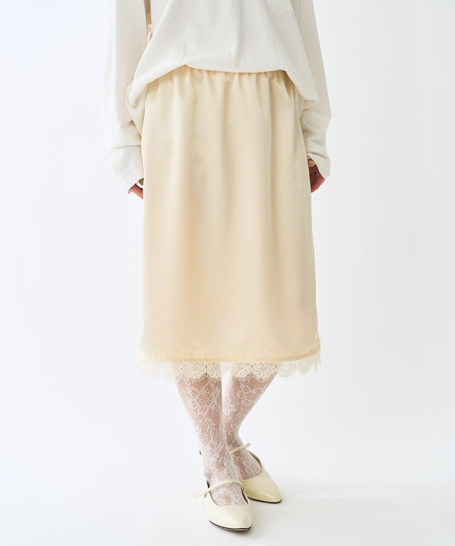 トレンドライクなレイヤードスタイルが叶うレーススカート