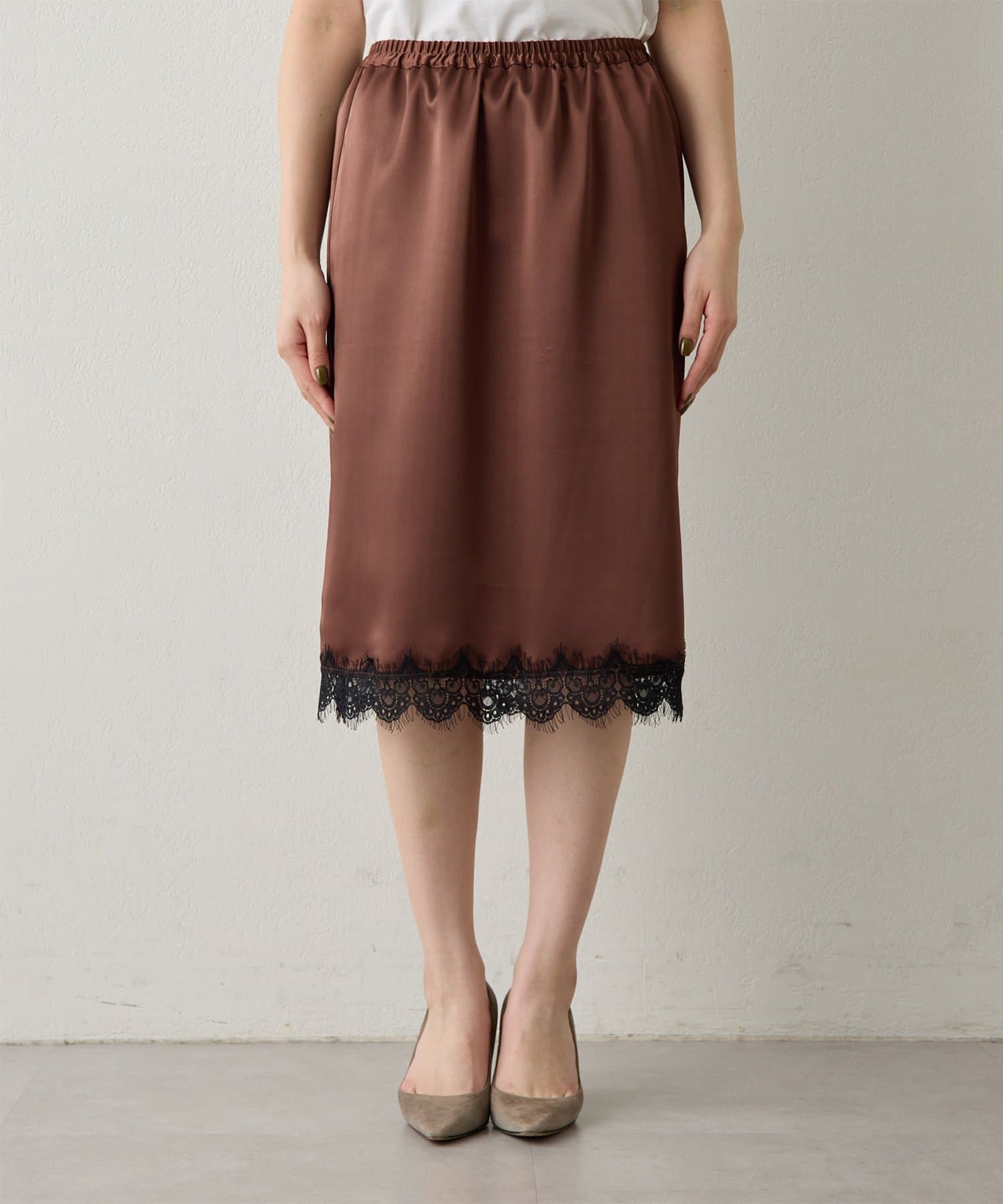 <WEB限定>【Nuition】サテンレーススカート