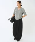 シルエットがアクセントになる、リネン調コクーンパンツ