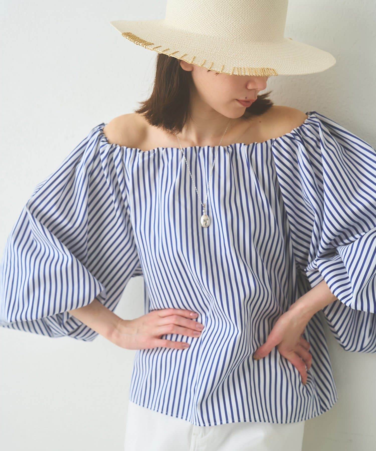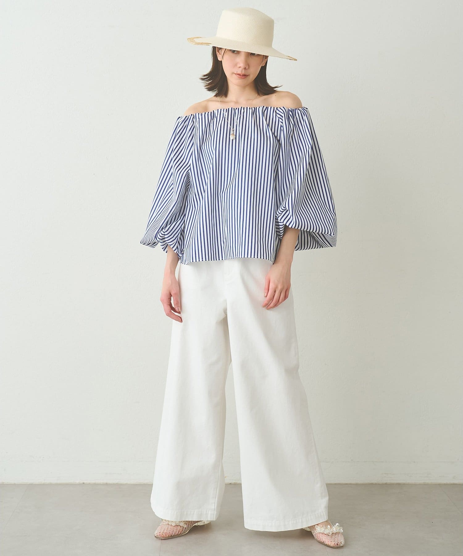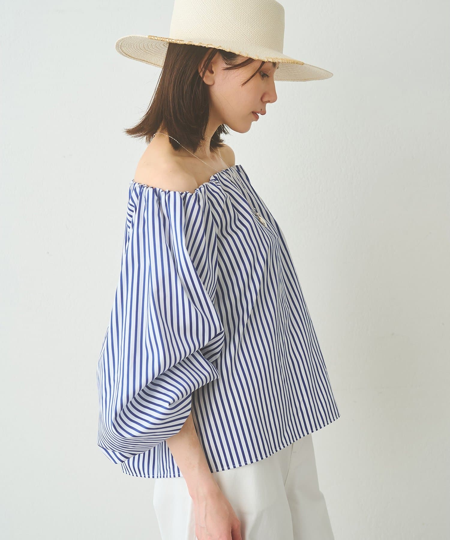 スタリングにニュアンスを与えてくれるオフショルブラウス