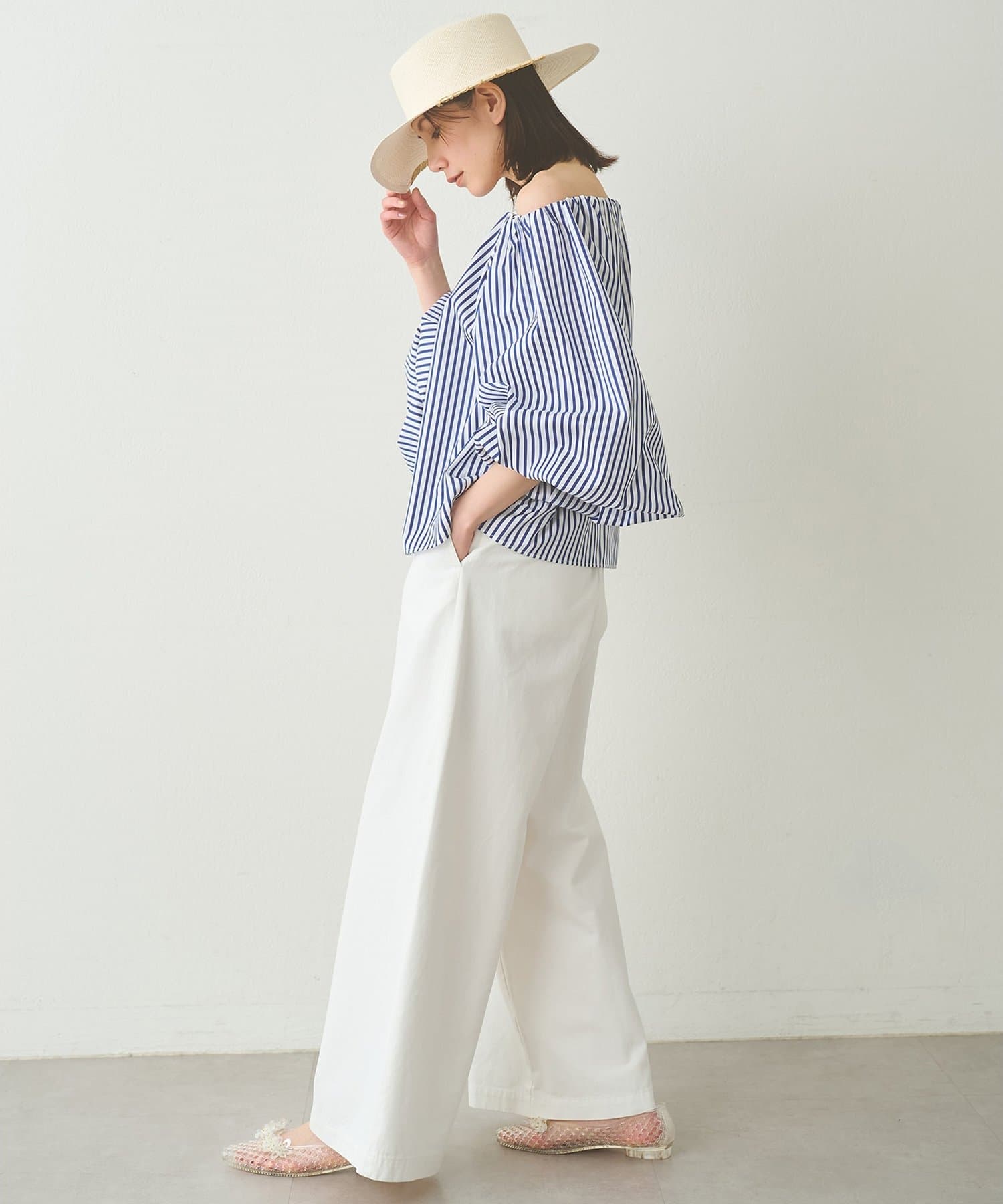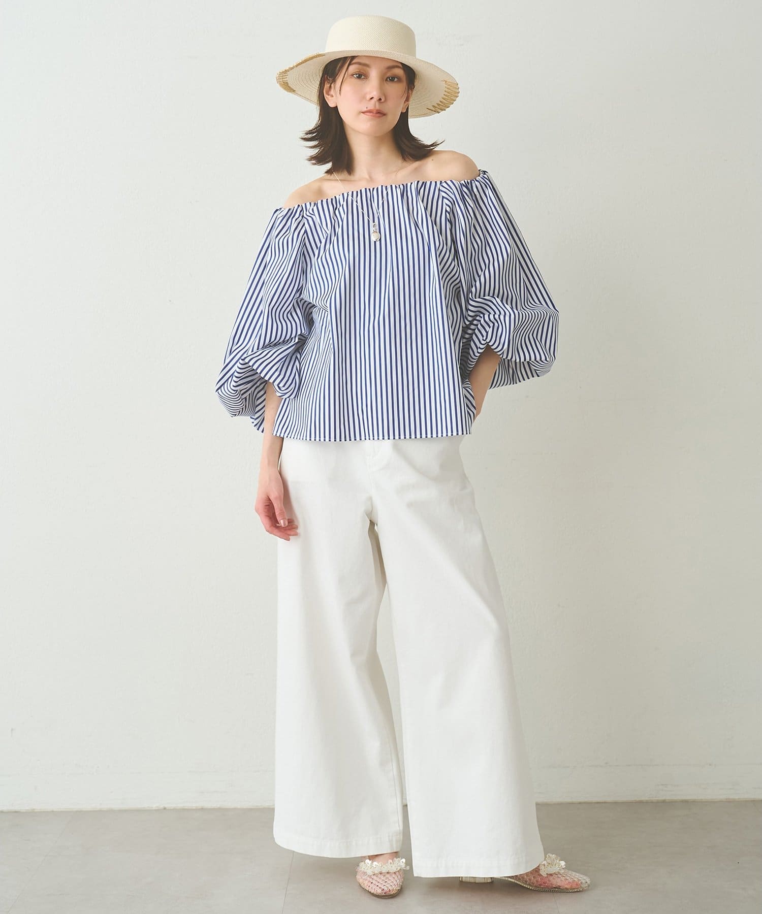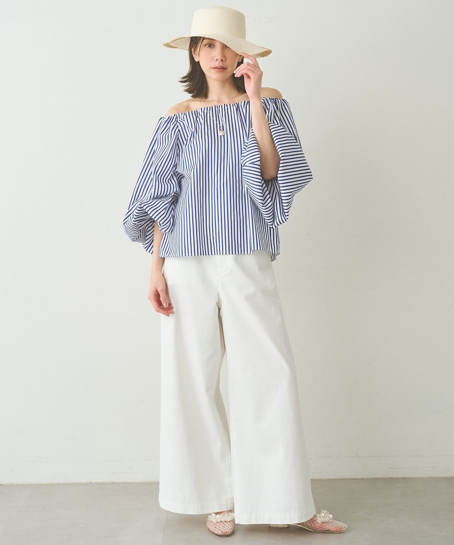 スタリングにニュアンスを与えてくれるオフショルブラウス