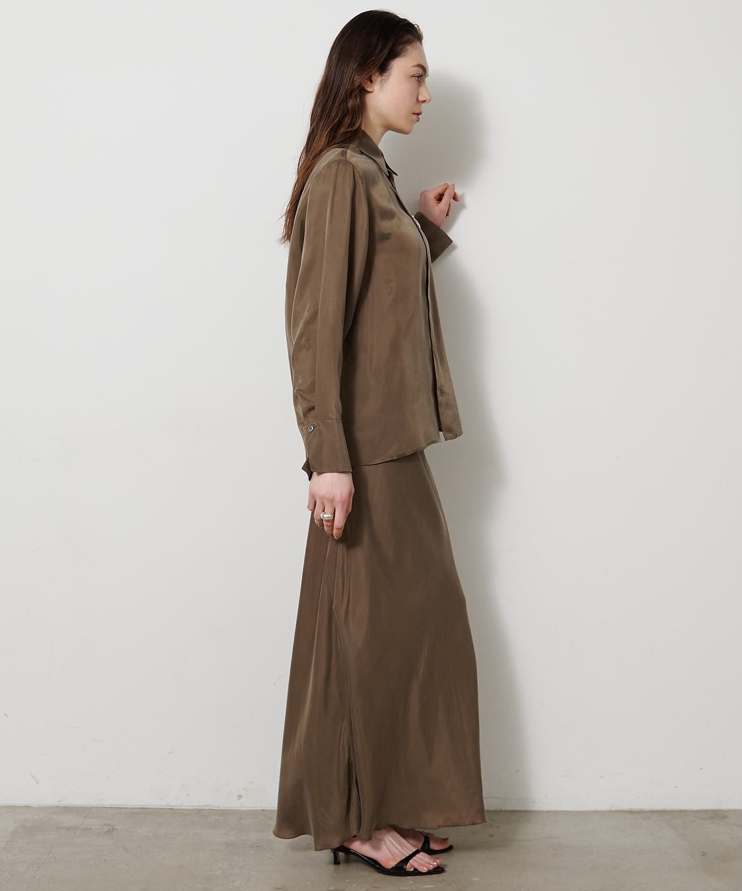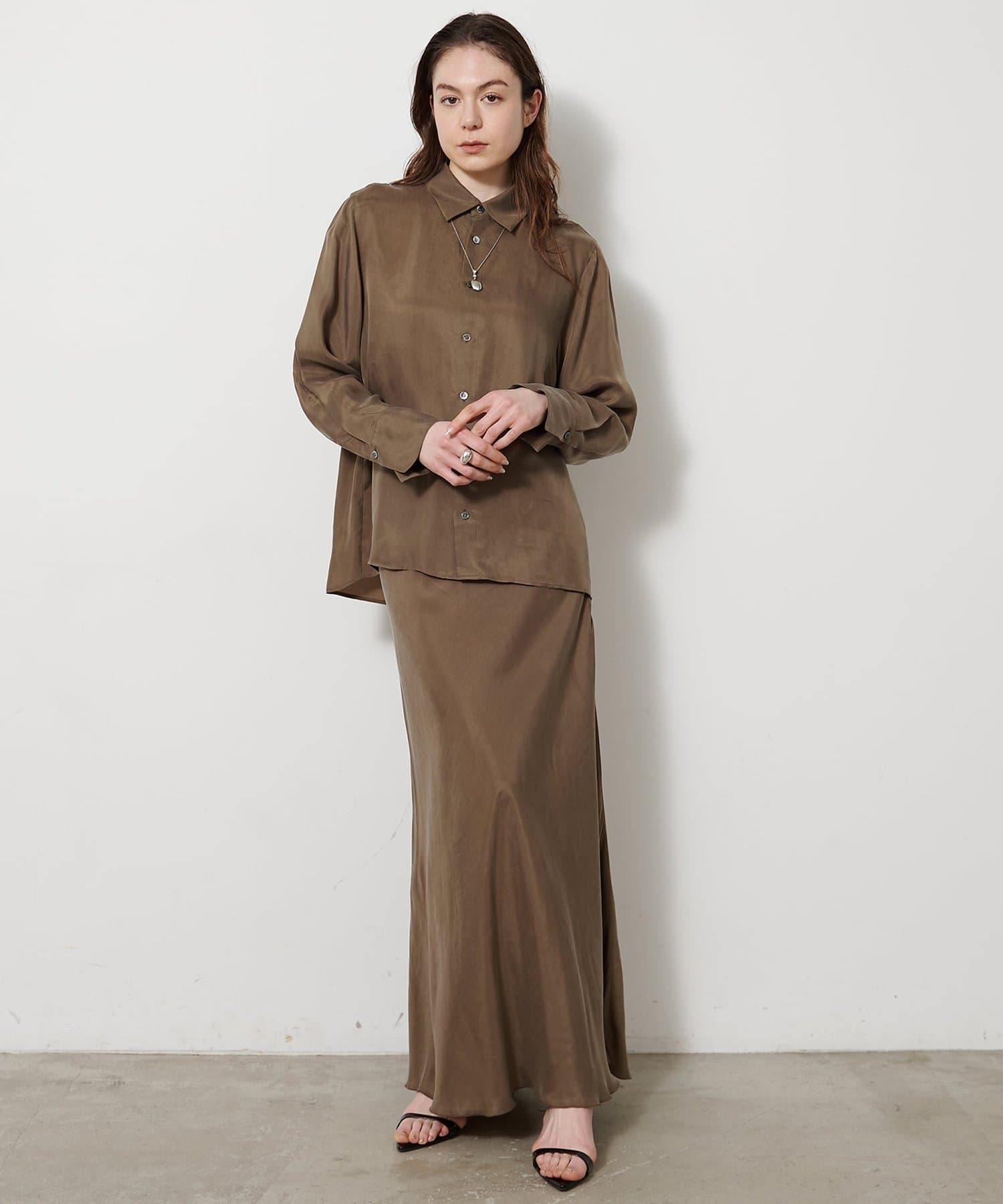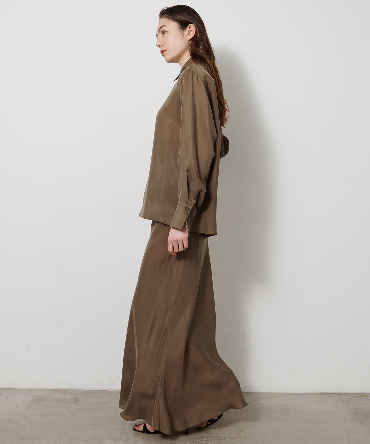 ■同素材のキュプラフィブリルフレアスカート(ブランド品番:WGZ1061401A0001)とのセットアップもおすすめ。