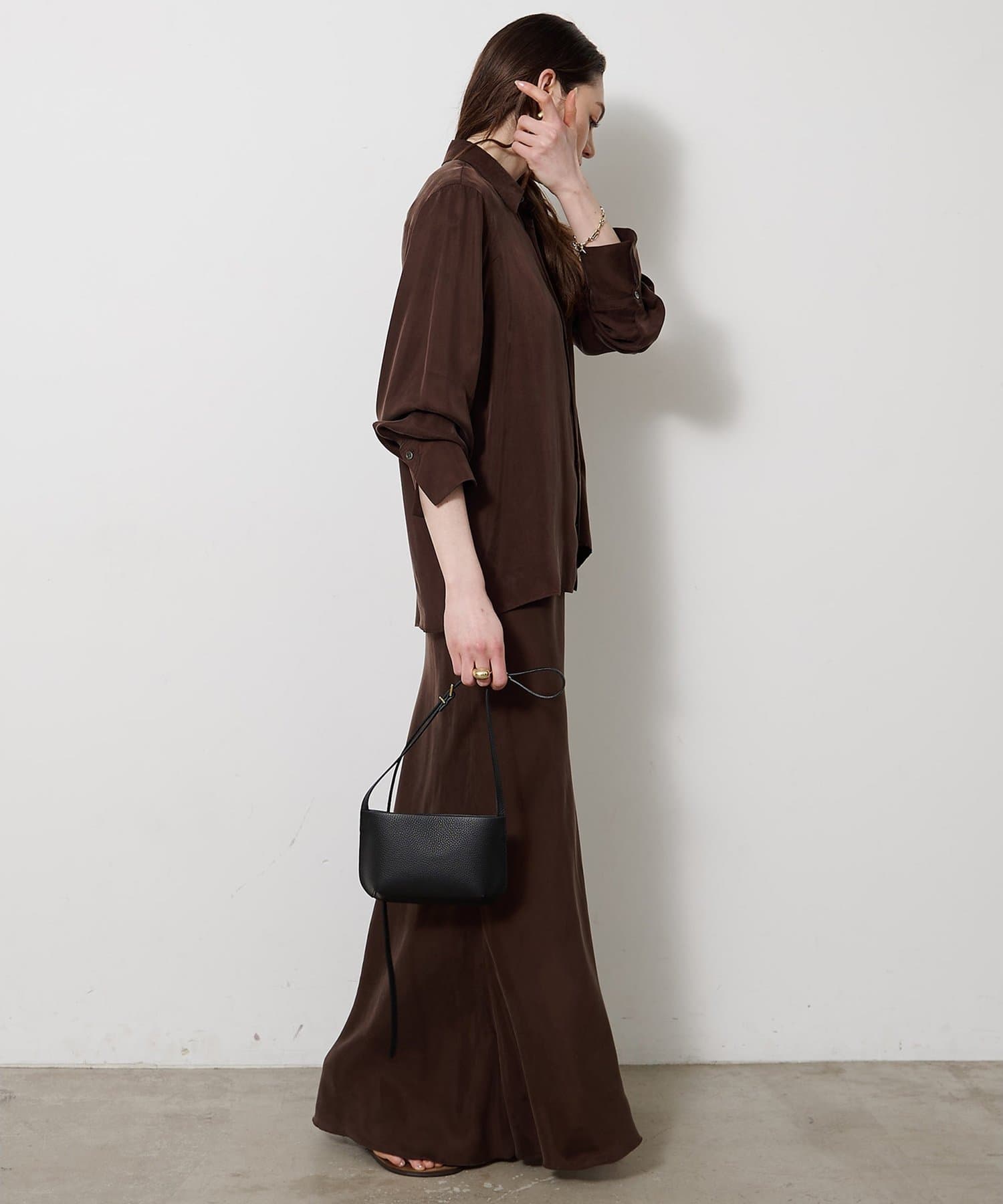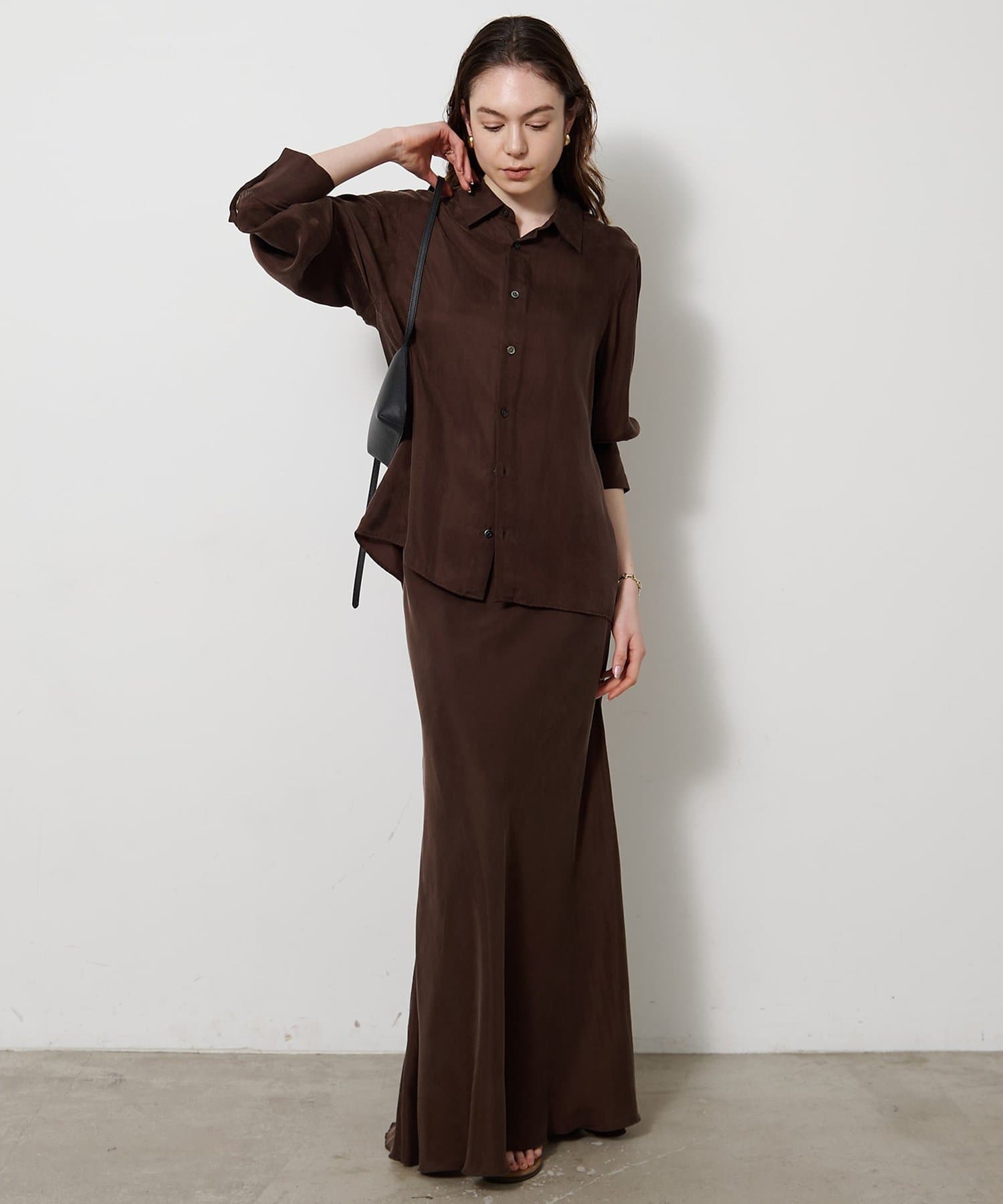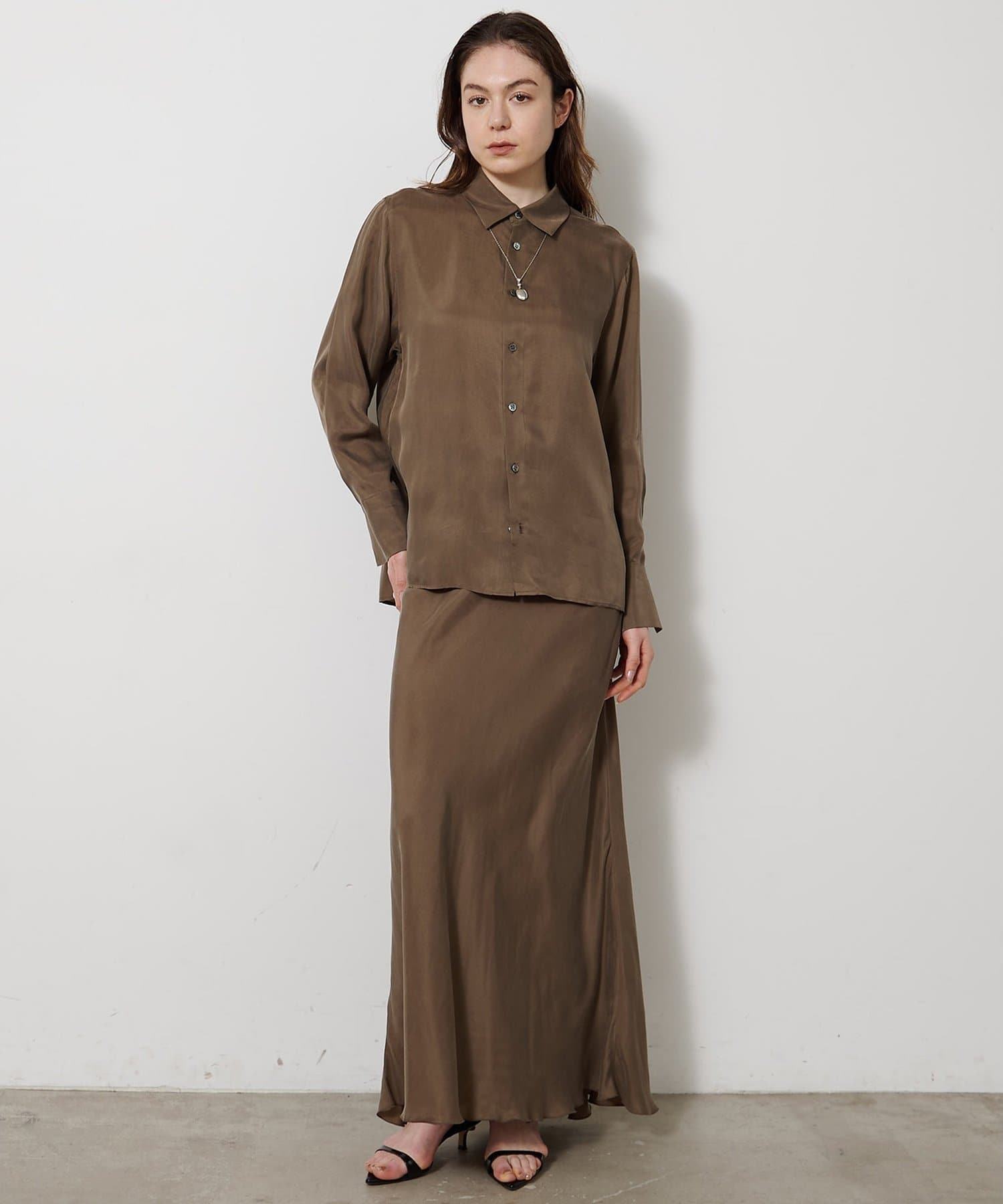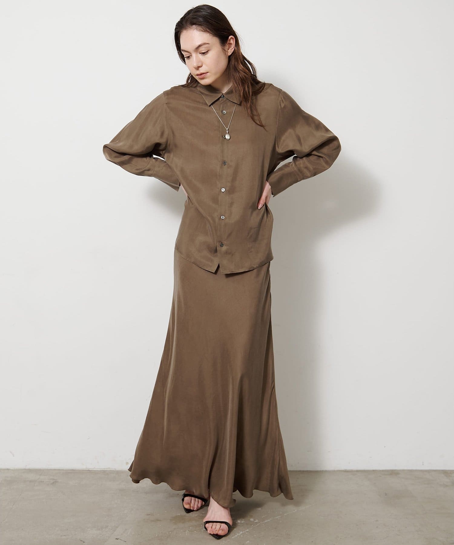 ■同素材のキュプラフィブリルフレアスカート(ブランド品番:WGZ1061401A0001)とのセットアップもおすすめ。