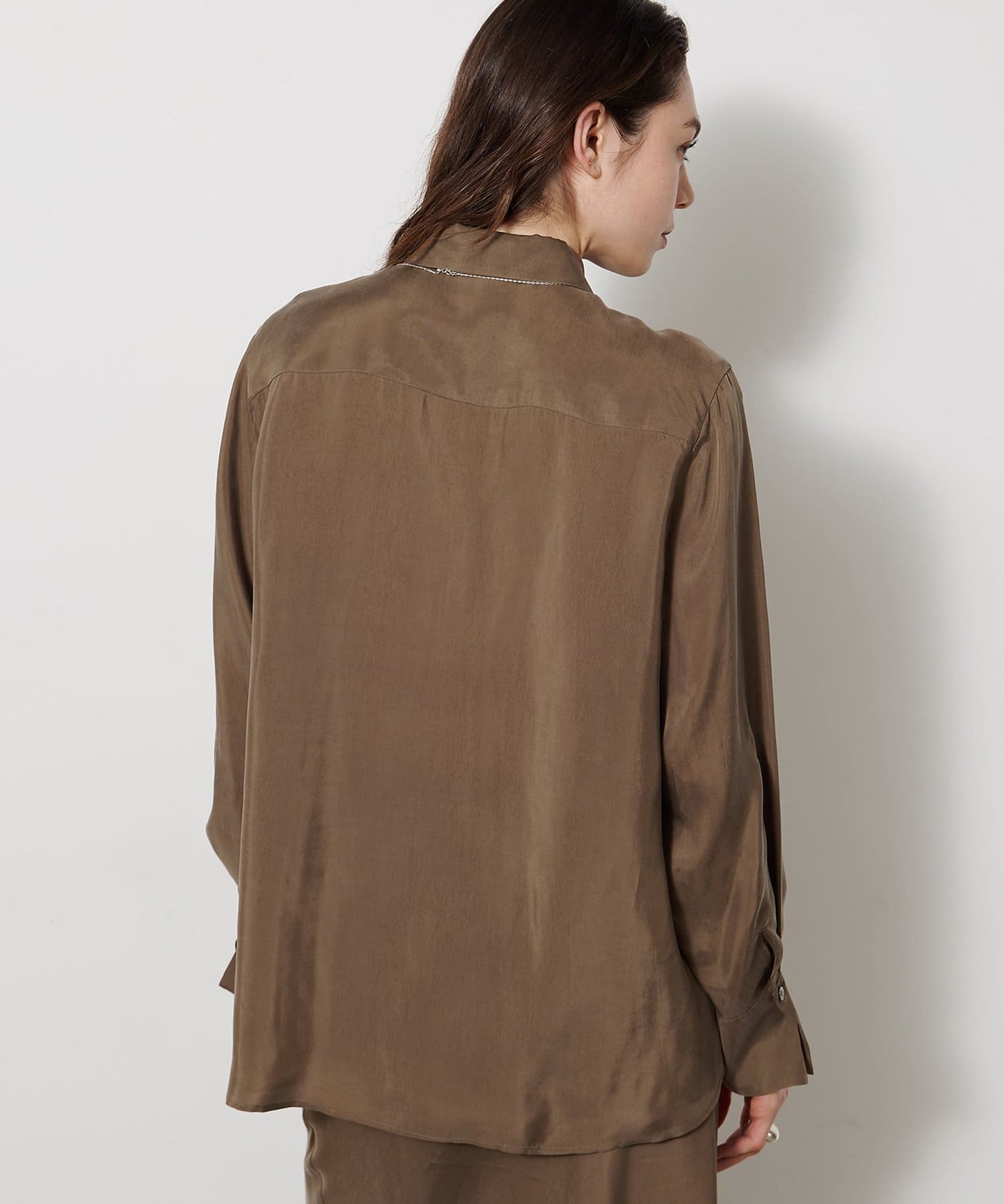 ■フィブリル加工を施したキュプラ素材を使用したシャツ。