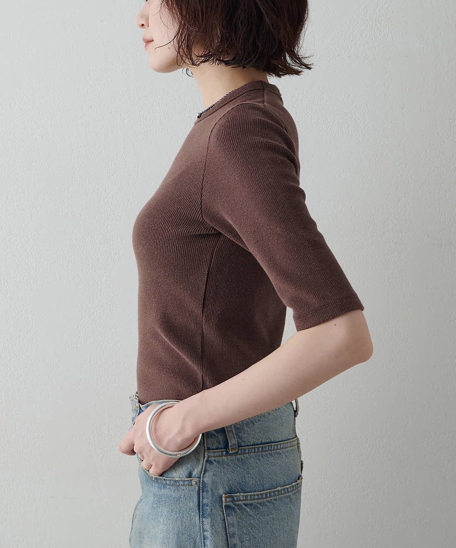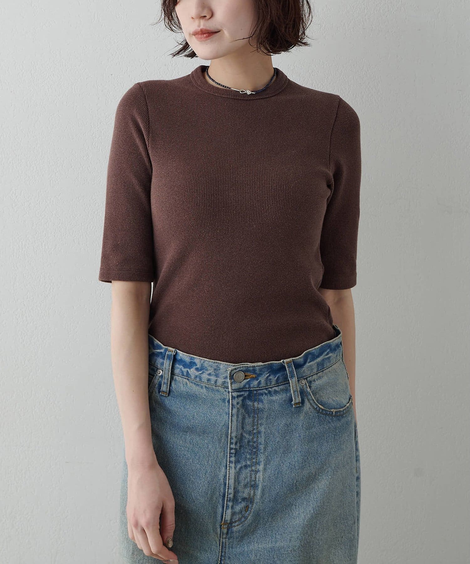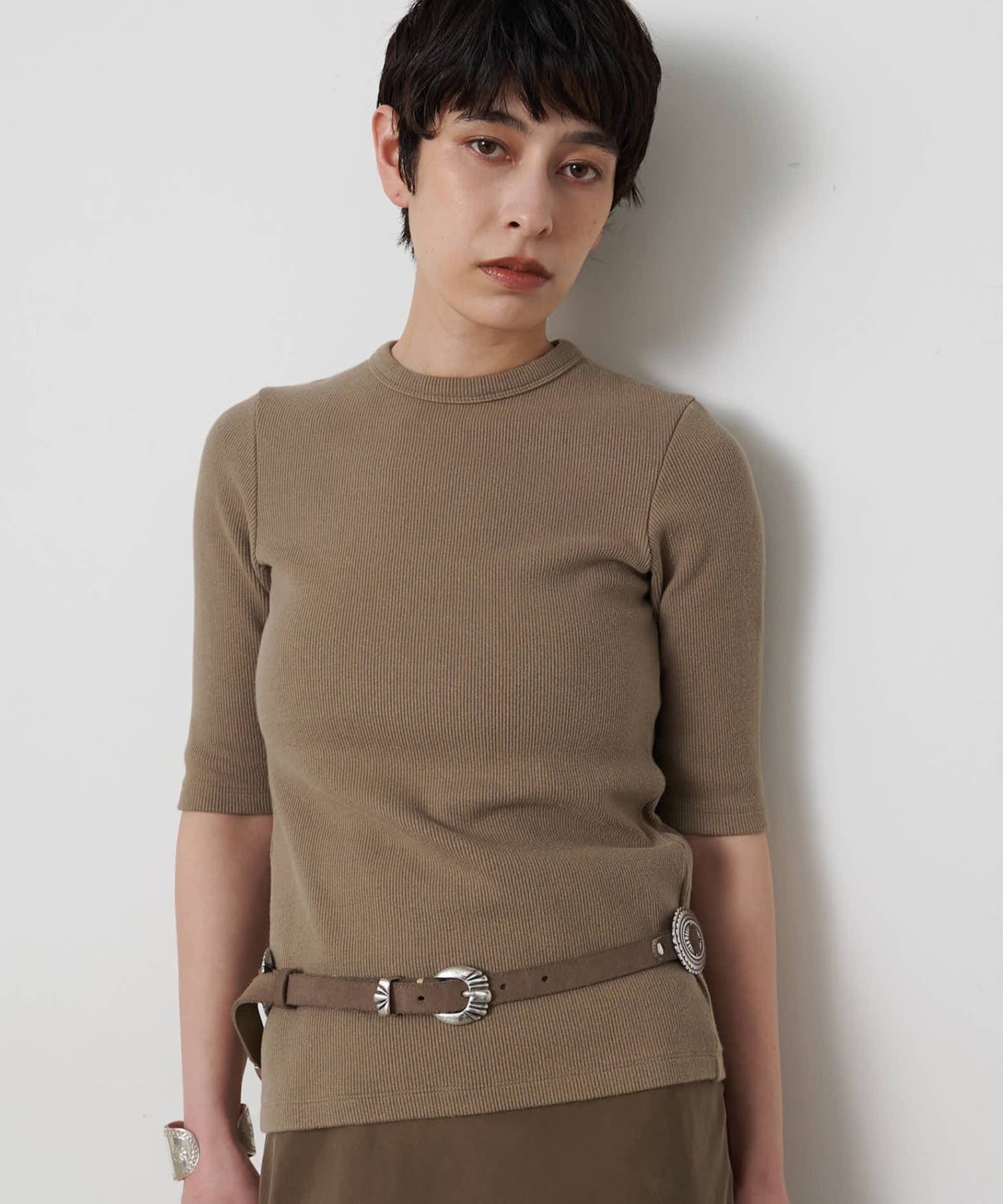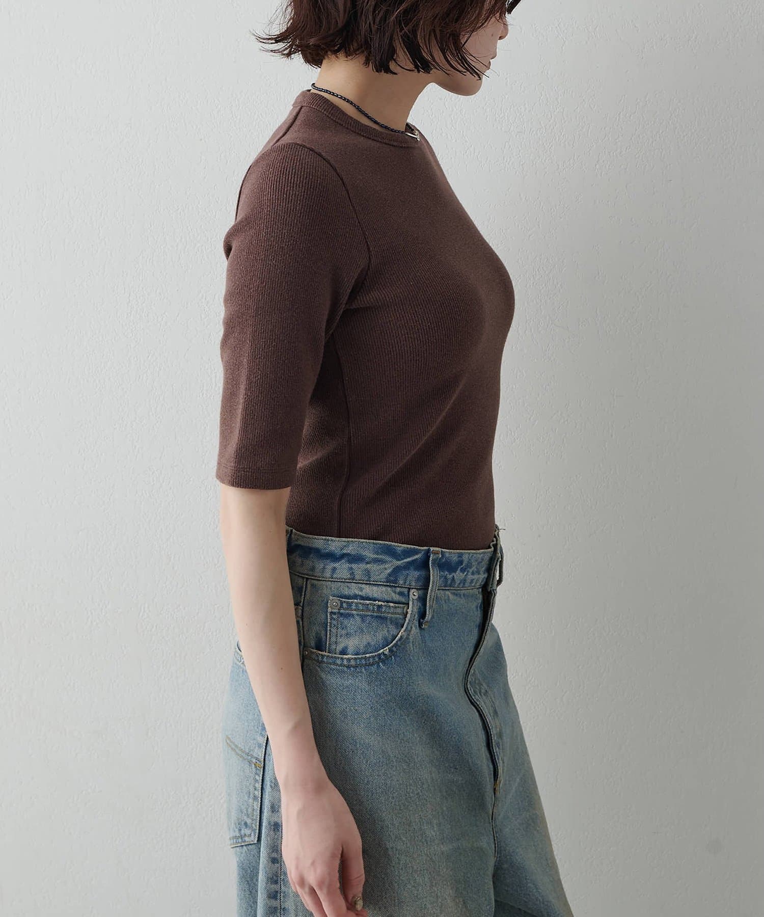 一枚でもレイヤードでも使える、大人の半袖リブTシャツ