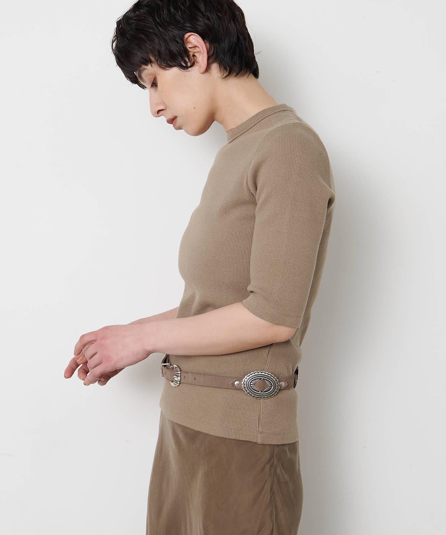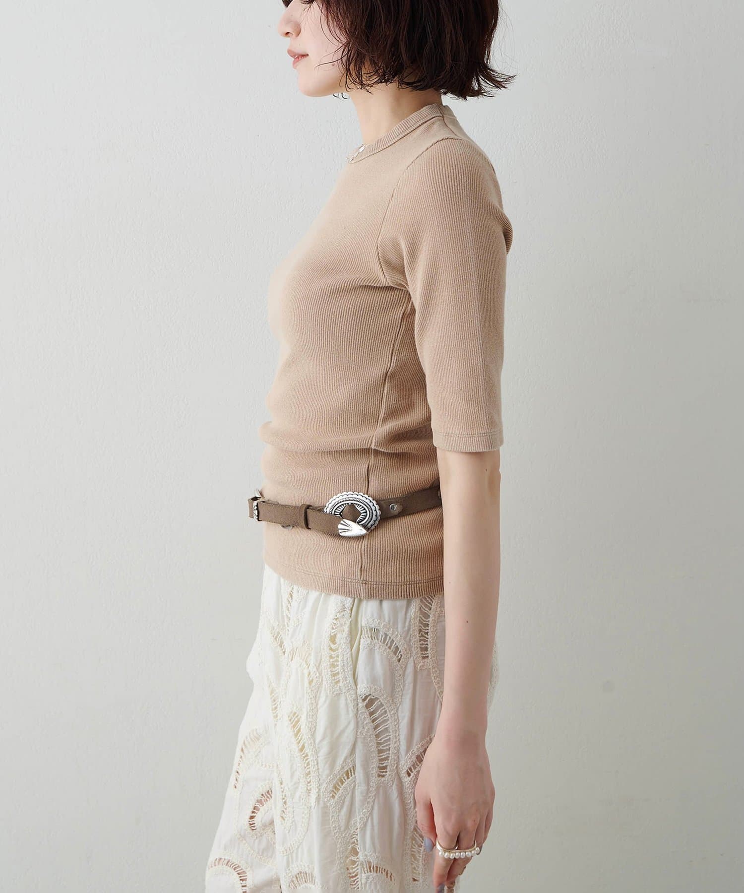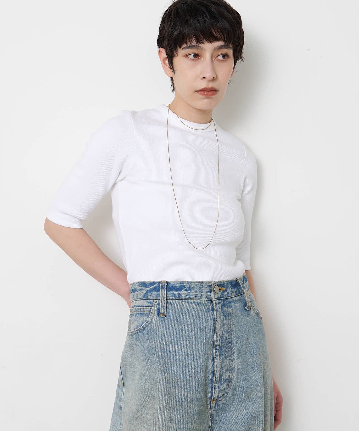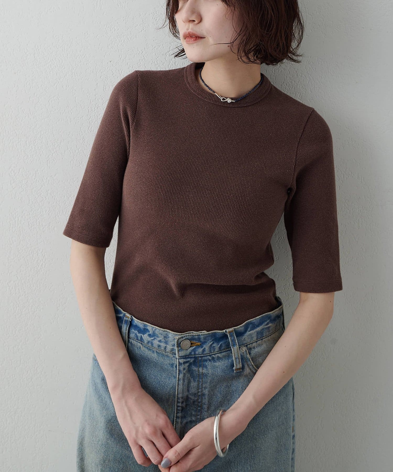 一枚でもレイヤードでも使える、大人の半袖リブTシャツ