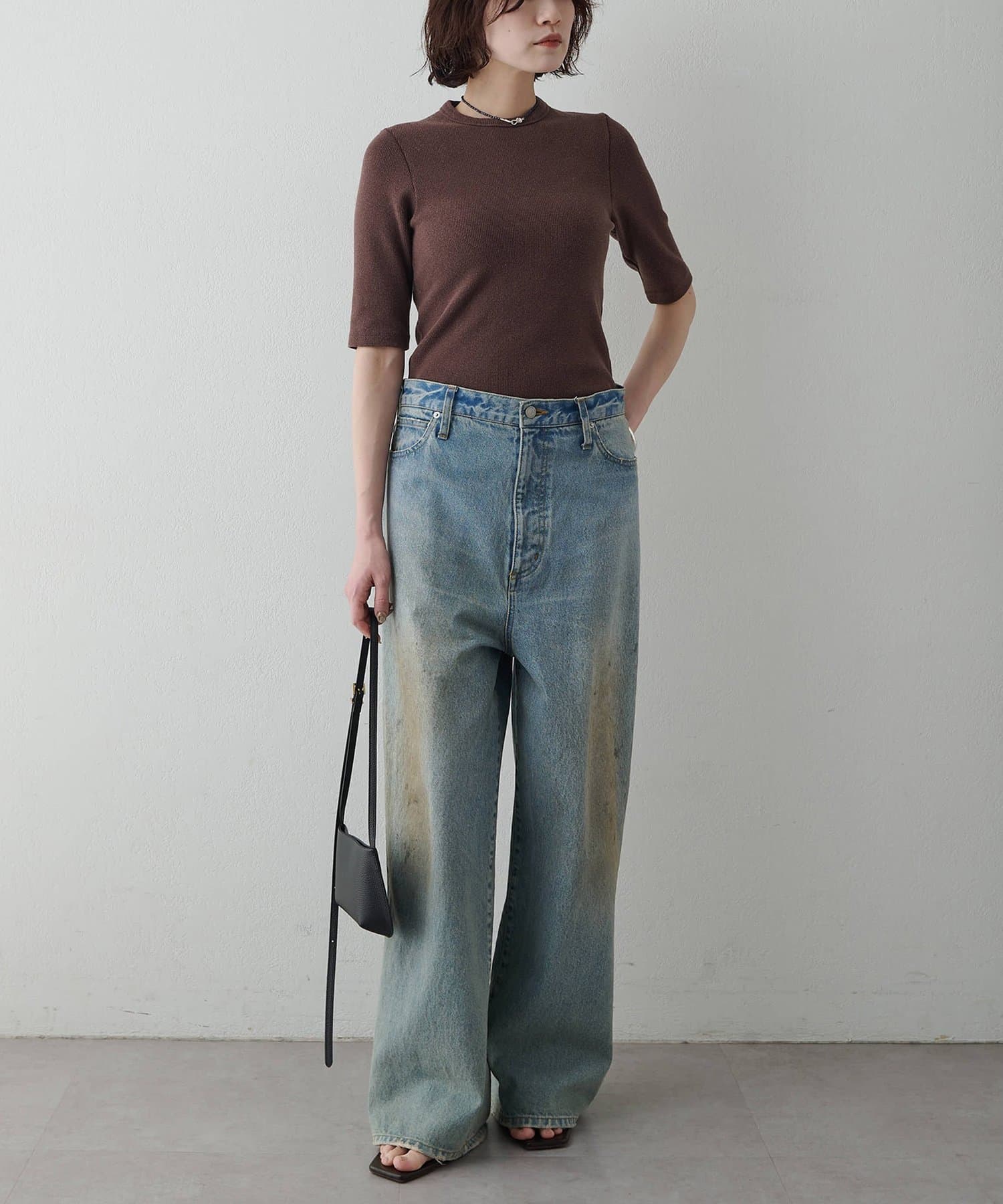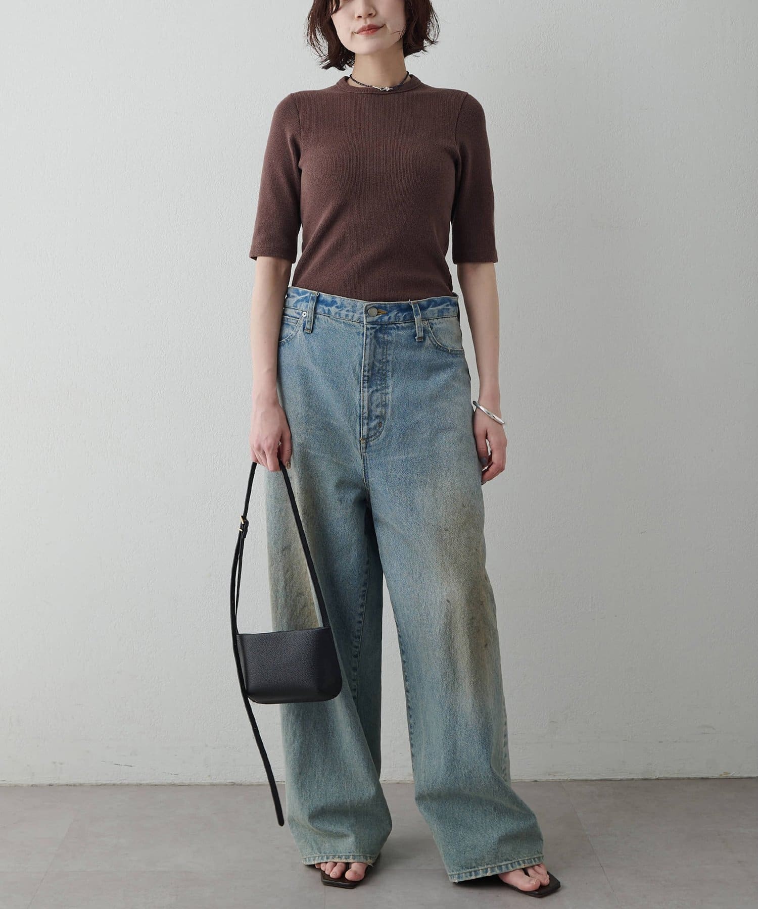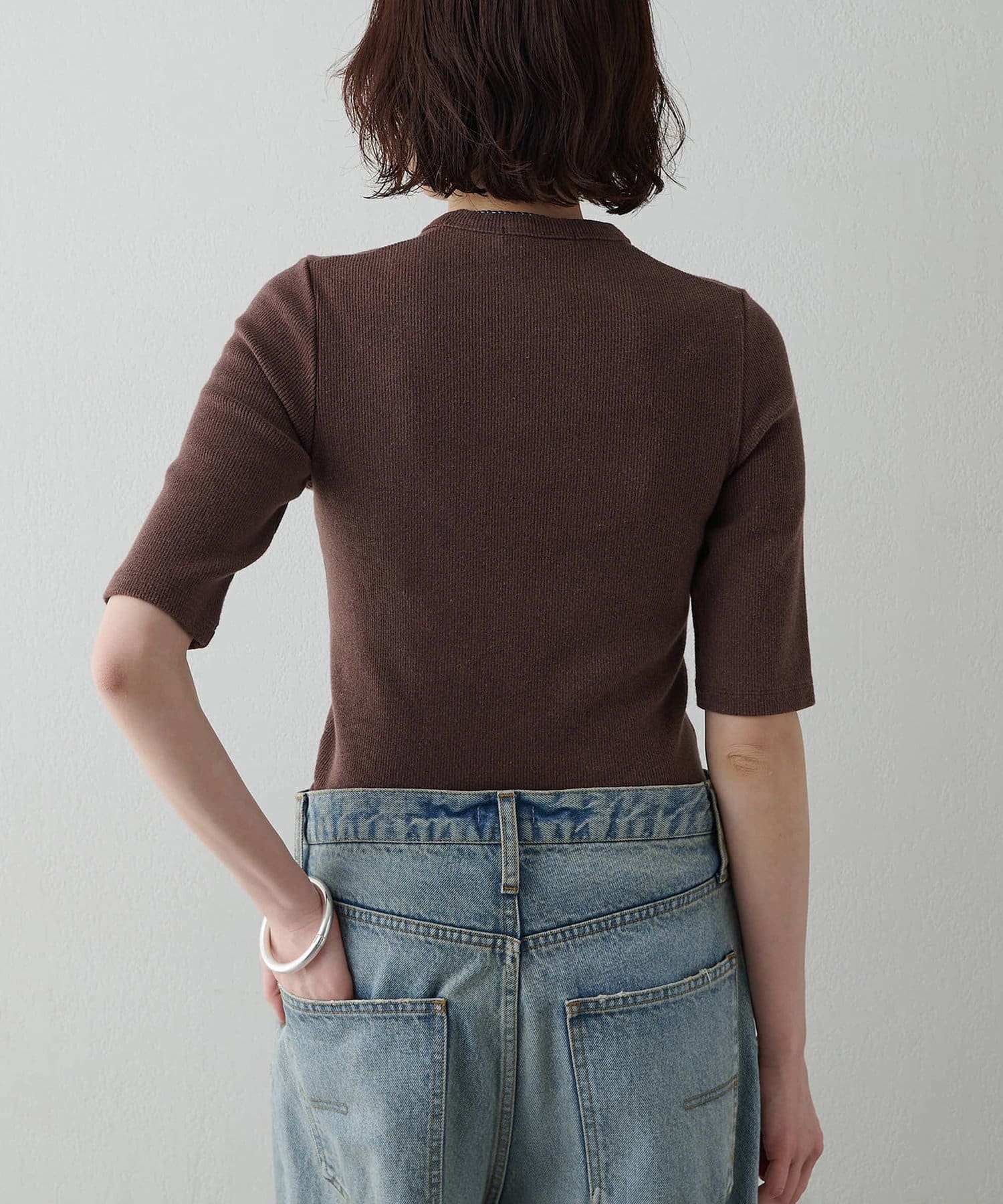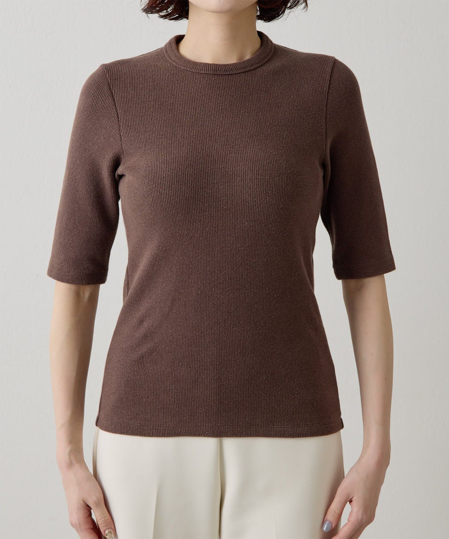 一枚でもレイヤードでも使える、大人の半袖リブTシャツ