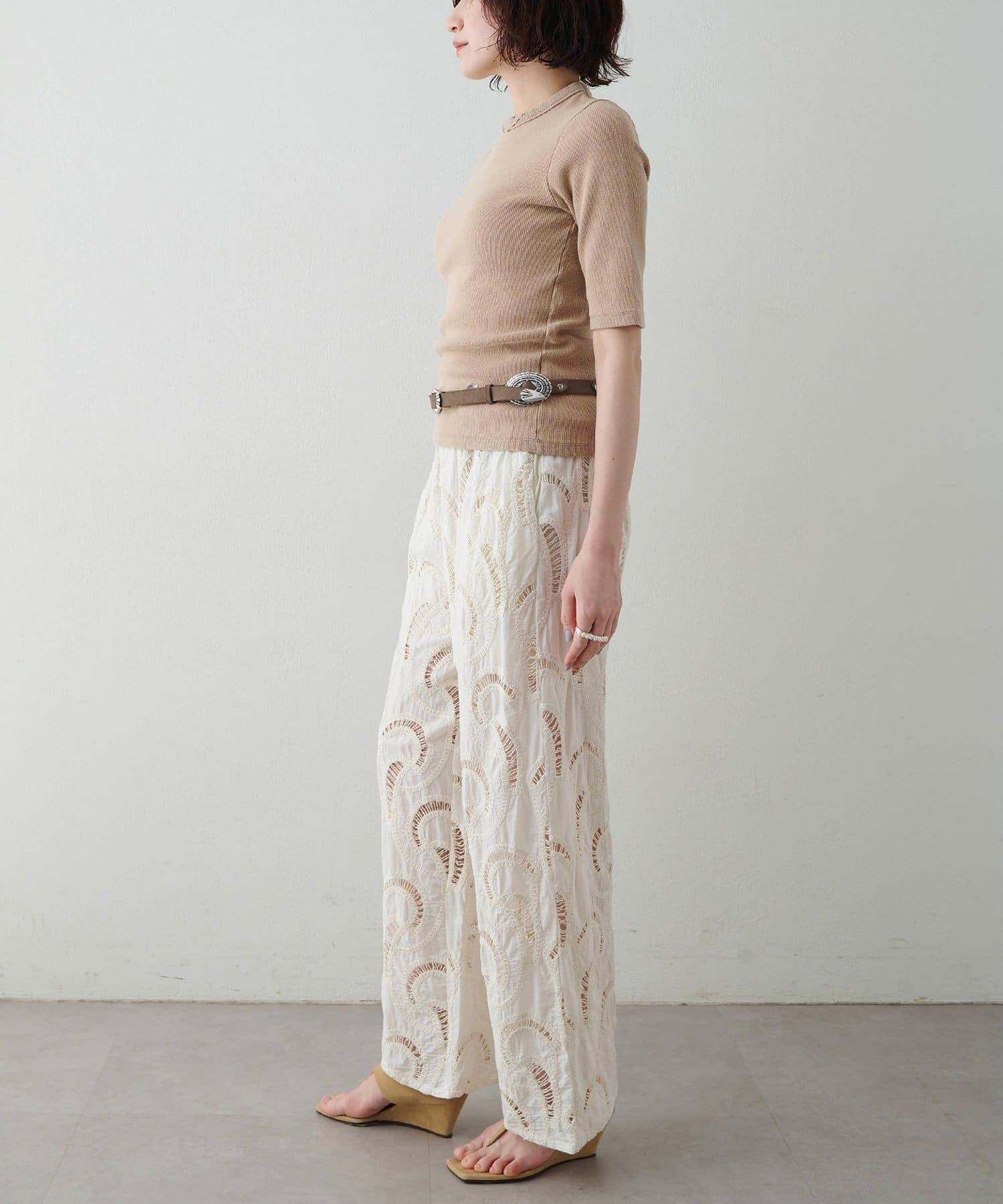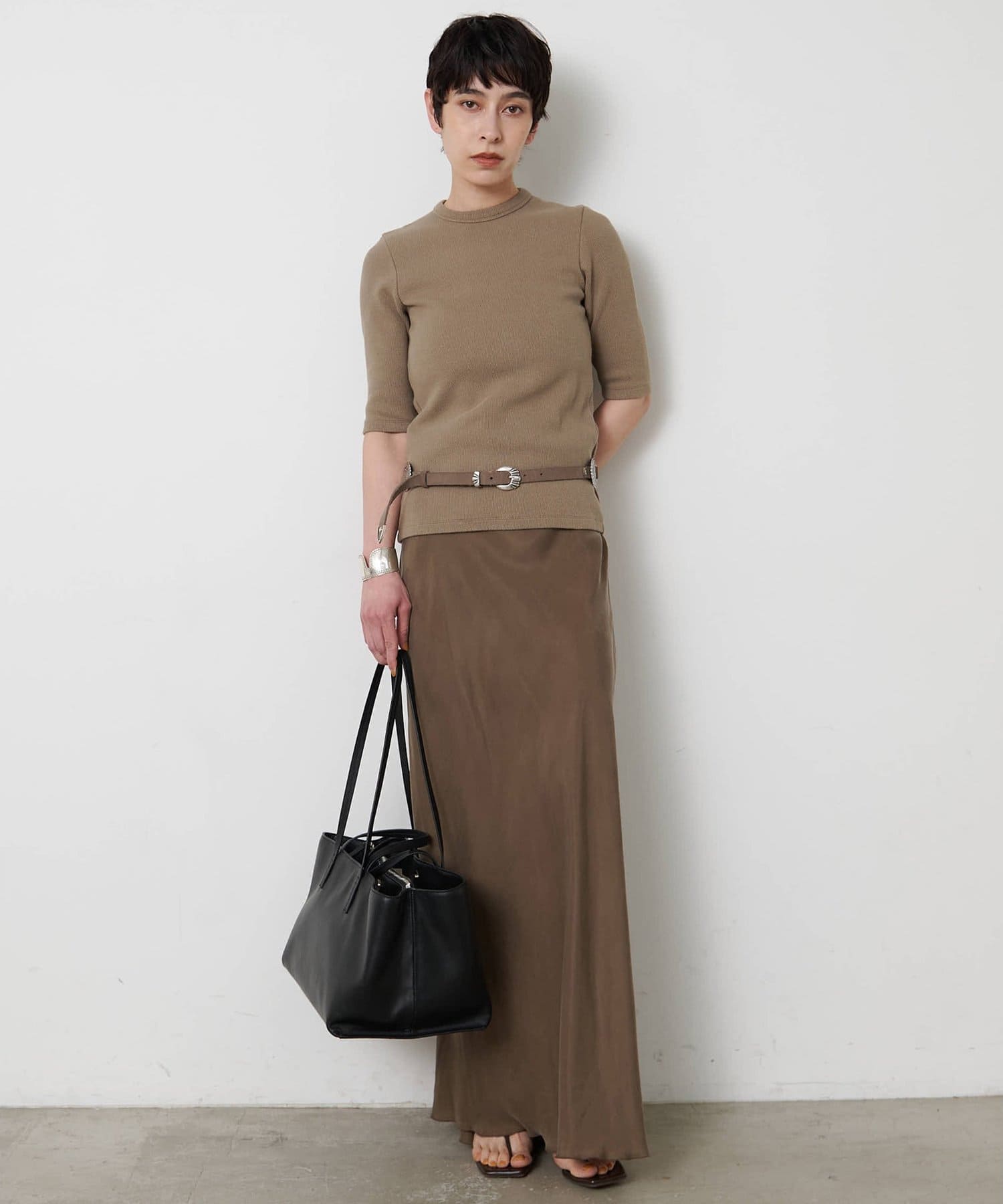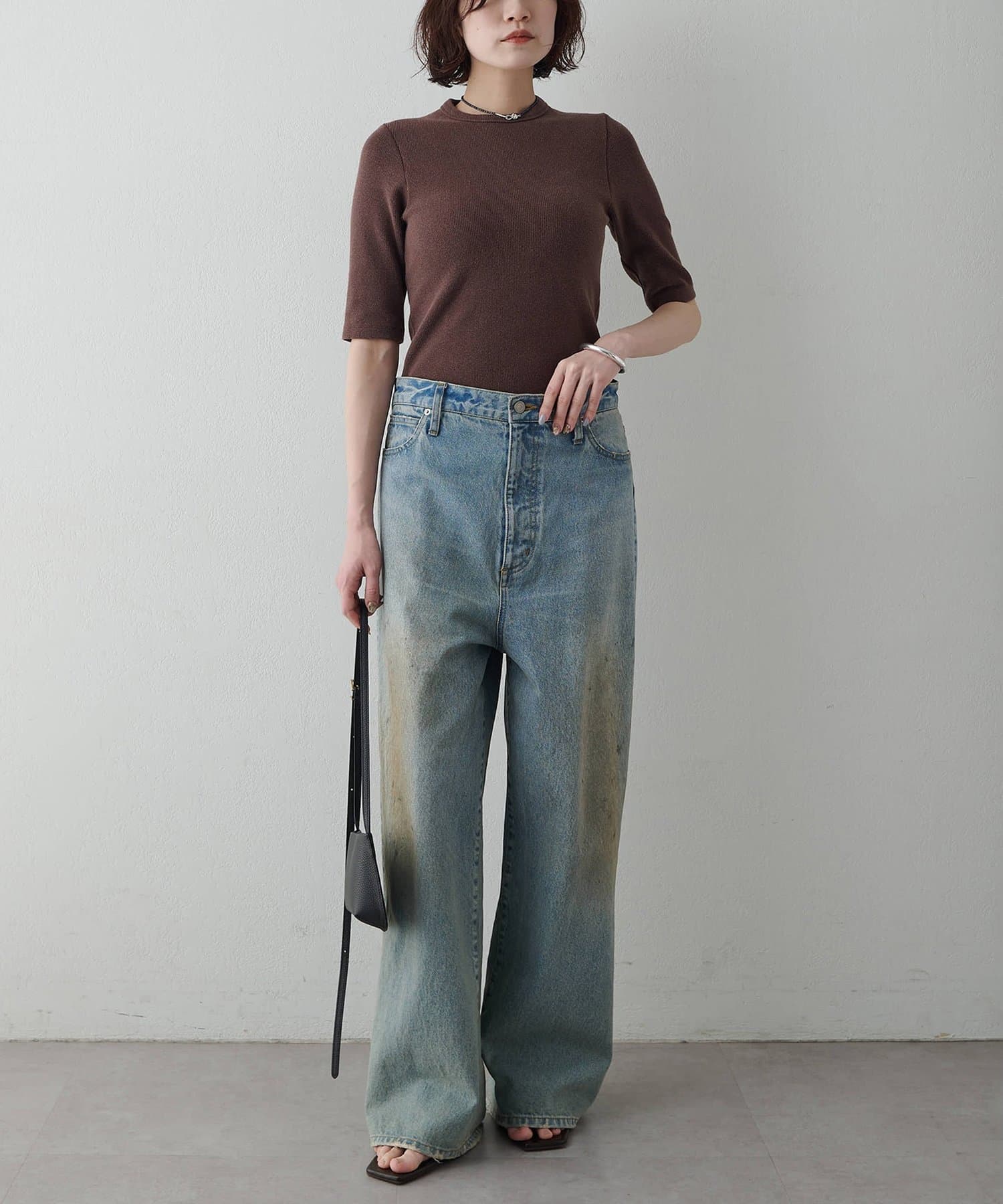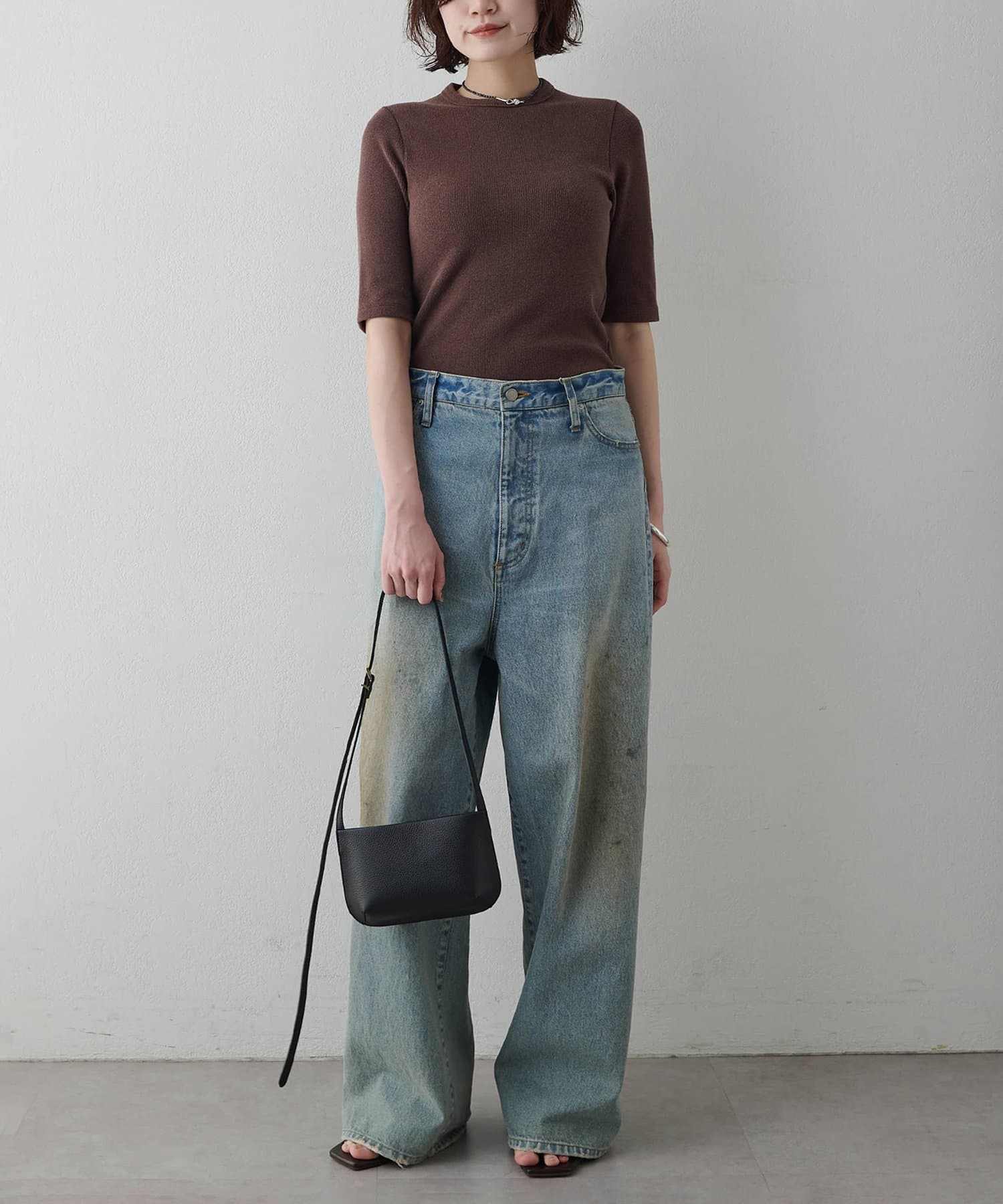 一枚でもレイヤードでも使える、大人の半袖リブTシャツ