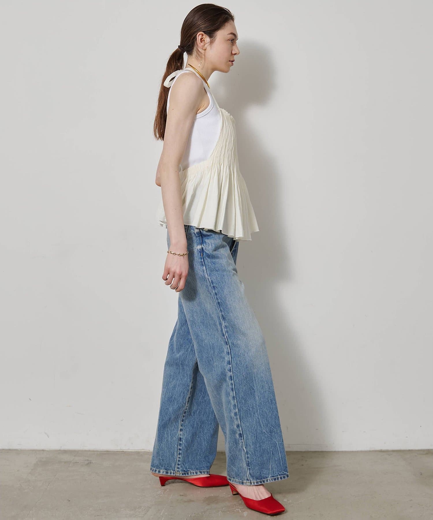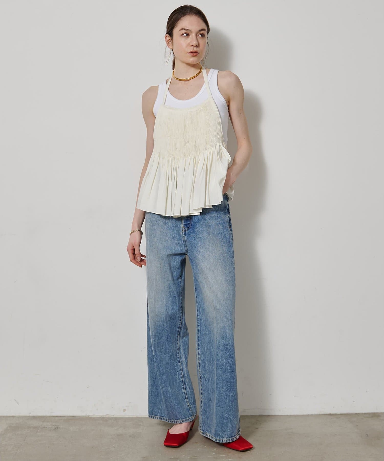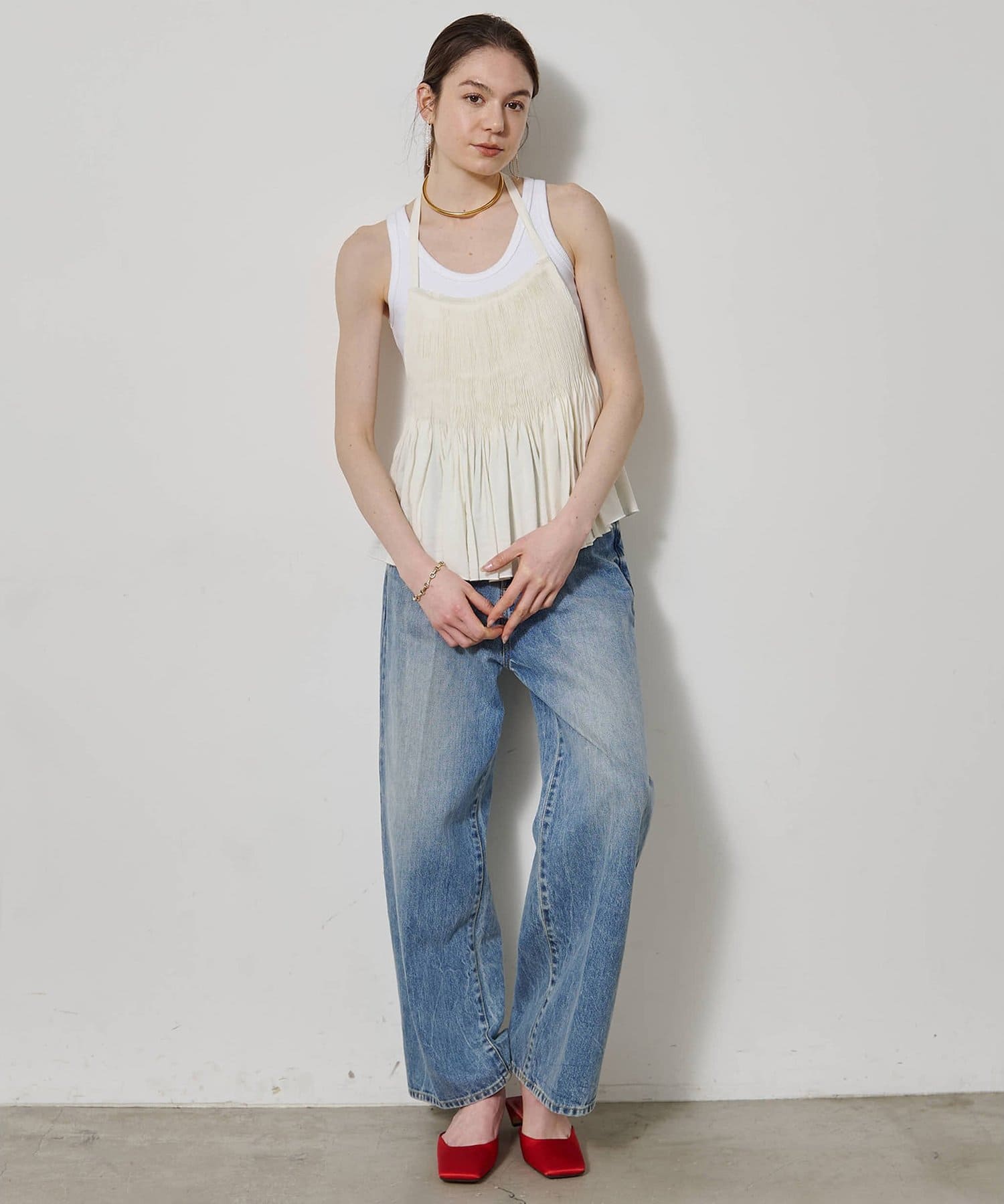 ■コンパクトなシルエットが女性らしいタンクトップ。