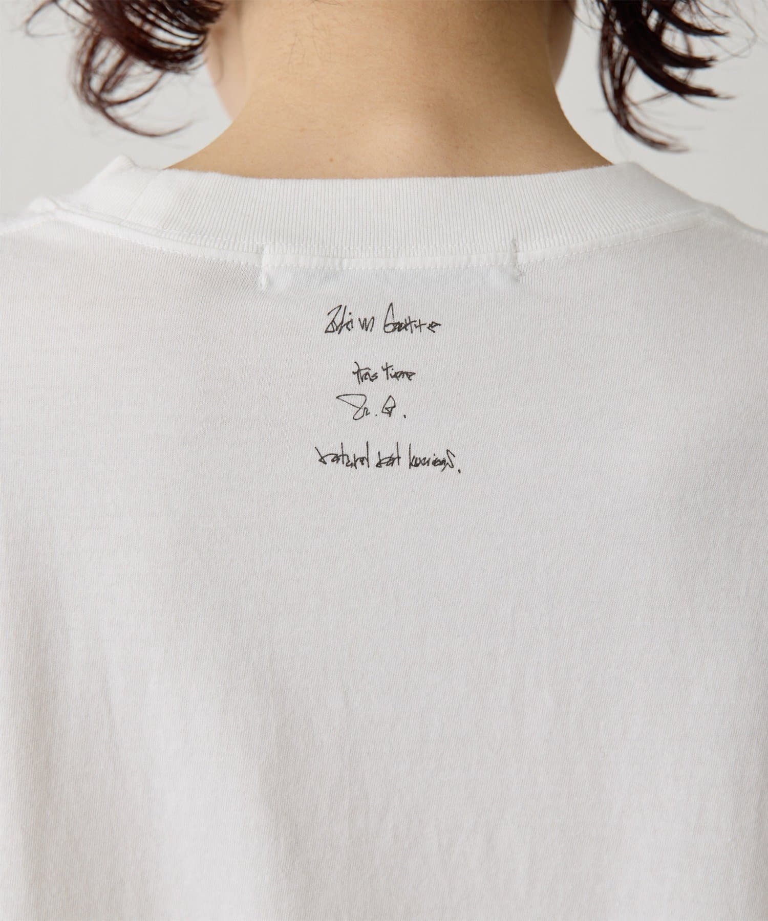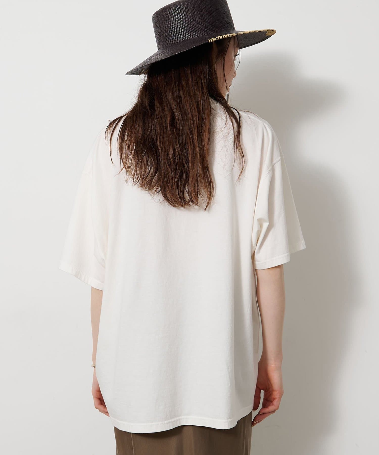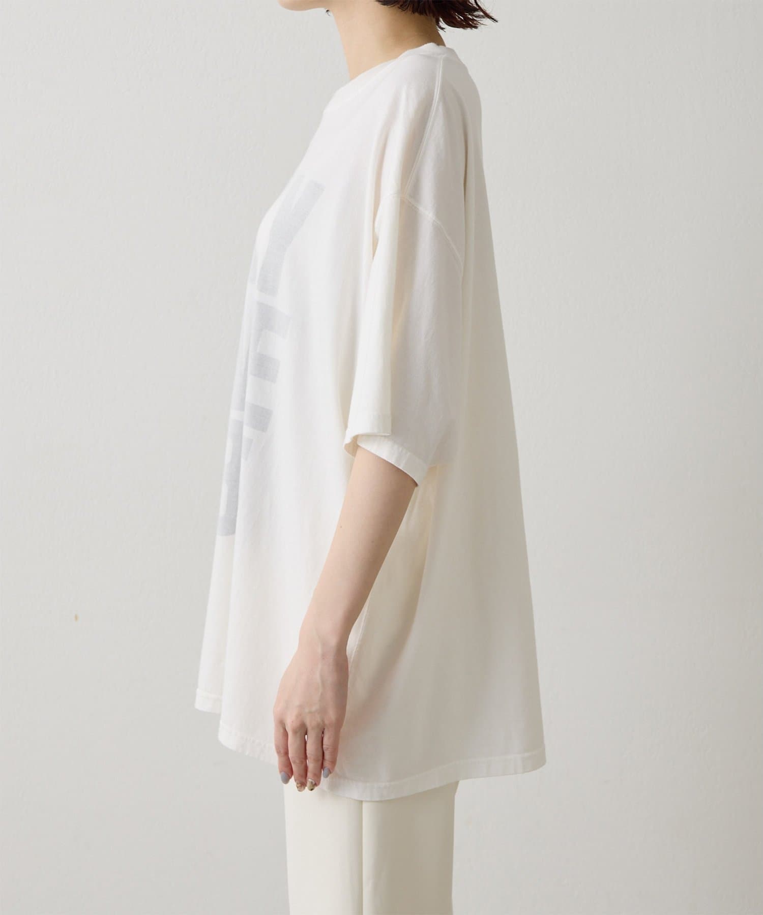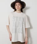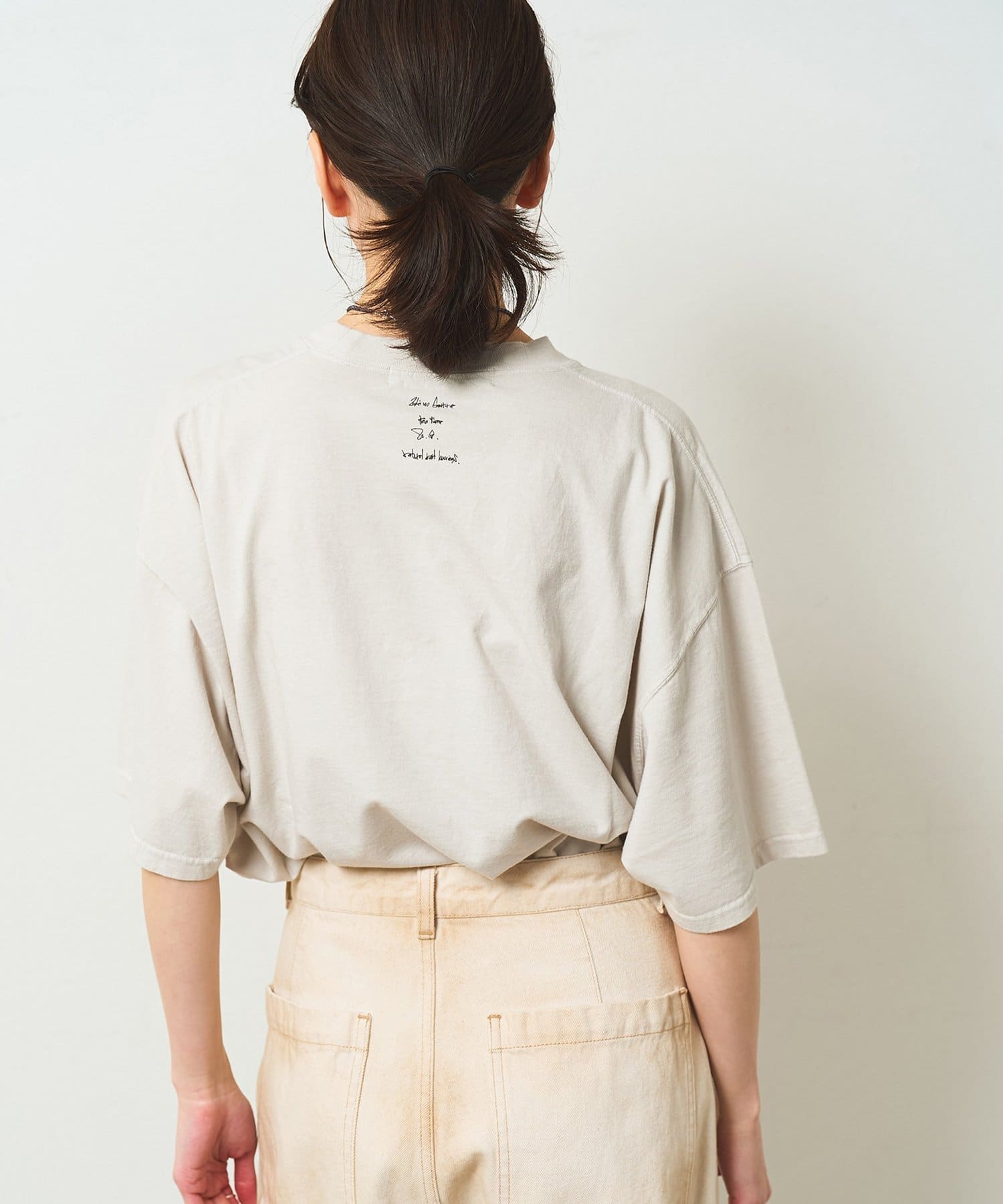 ■スローガンをTシャツの裏側からプリントすることで、ハードな印象を抑え柔らかくニュアンスのある印象に。