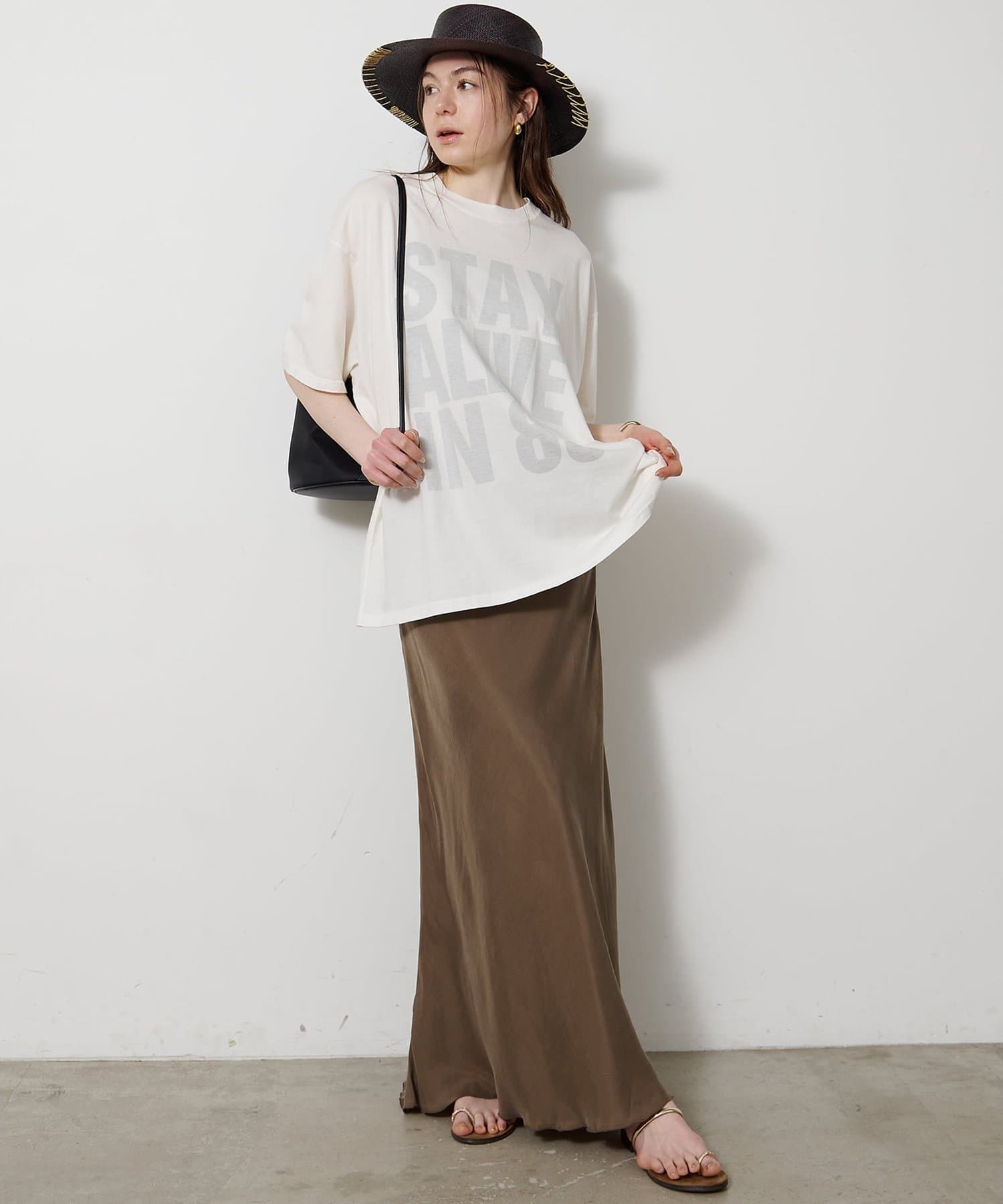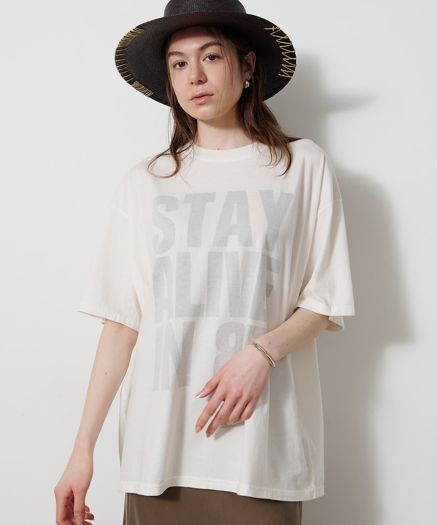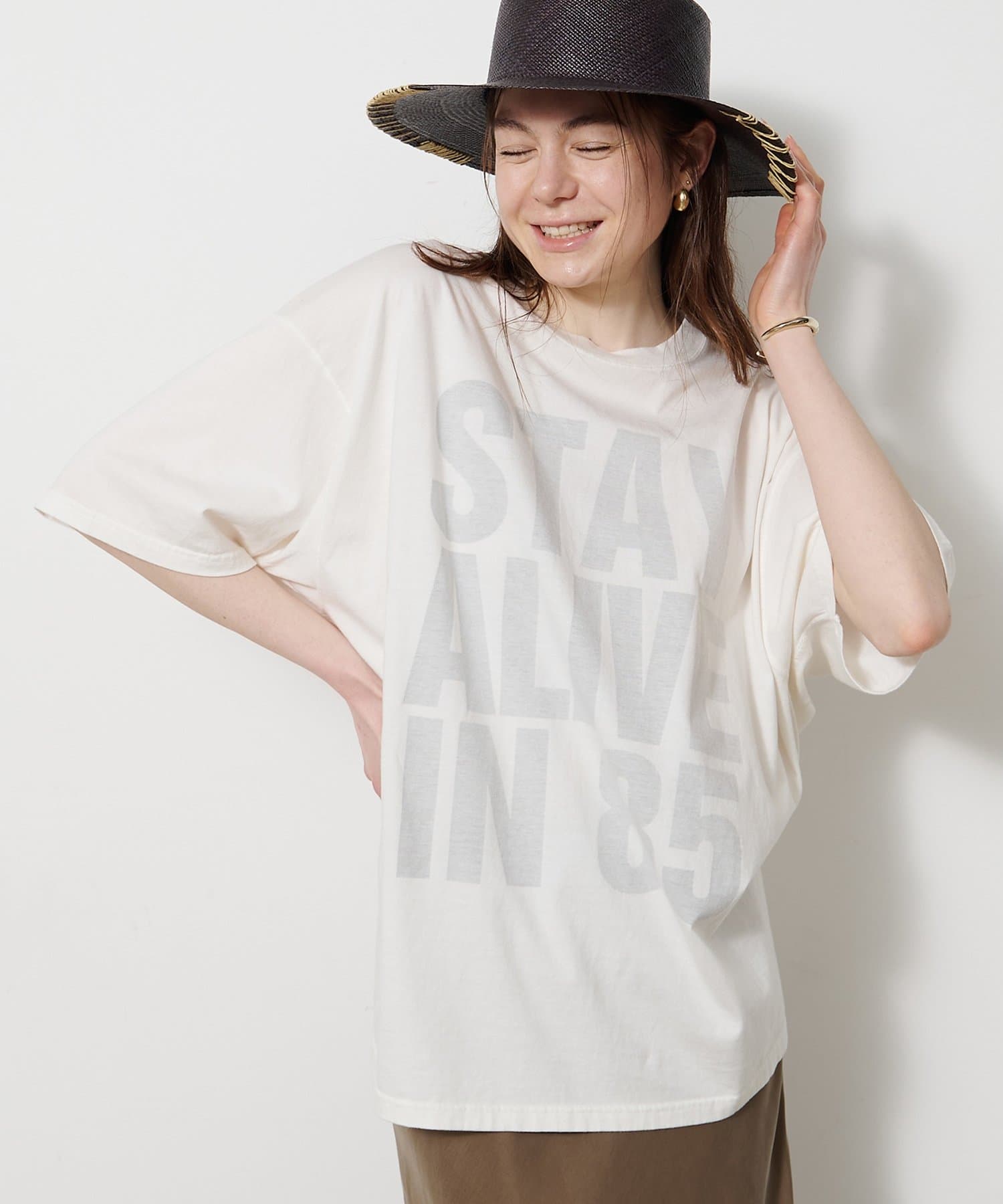 ■ブランドの代名詞ともいえるスローガンTシャツから、「STAY ALIVE IN 85」 ”85年を忘れない”のスローガンをチョイスした一枚。