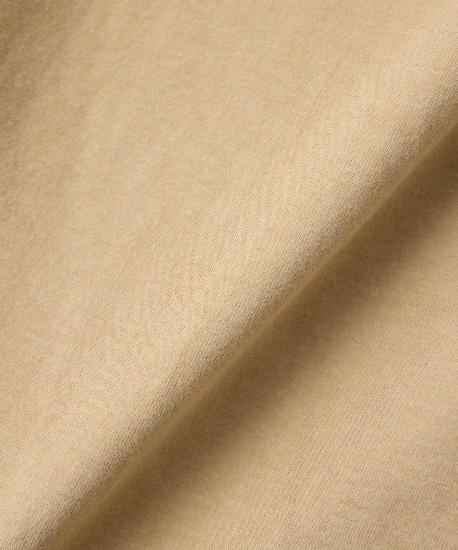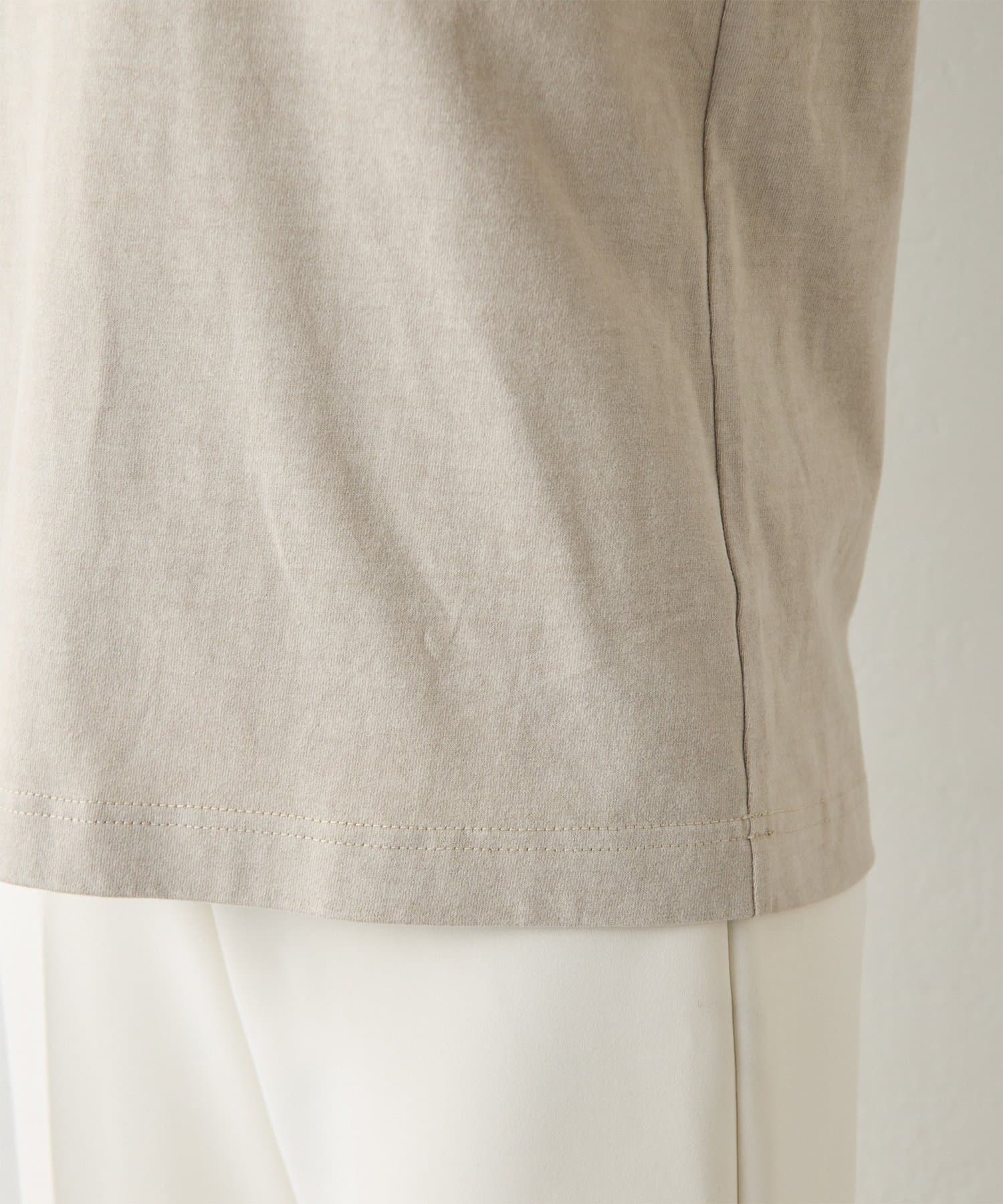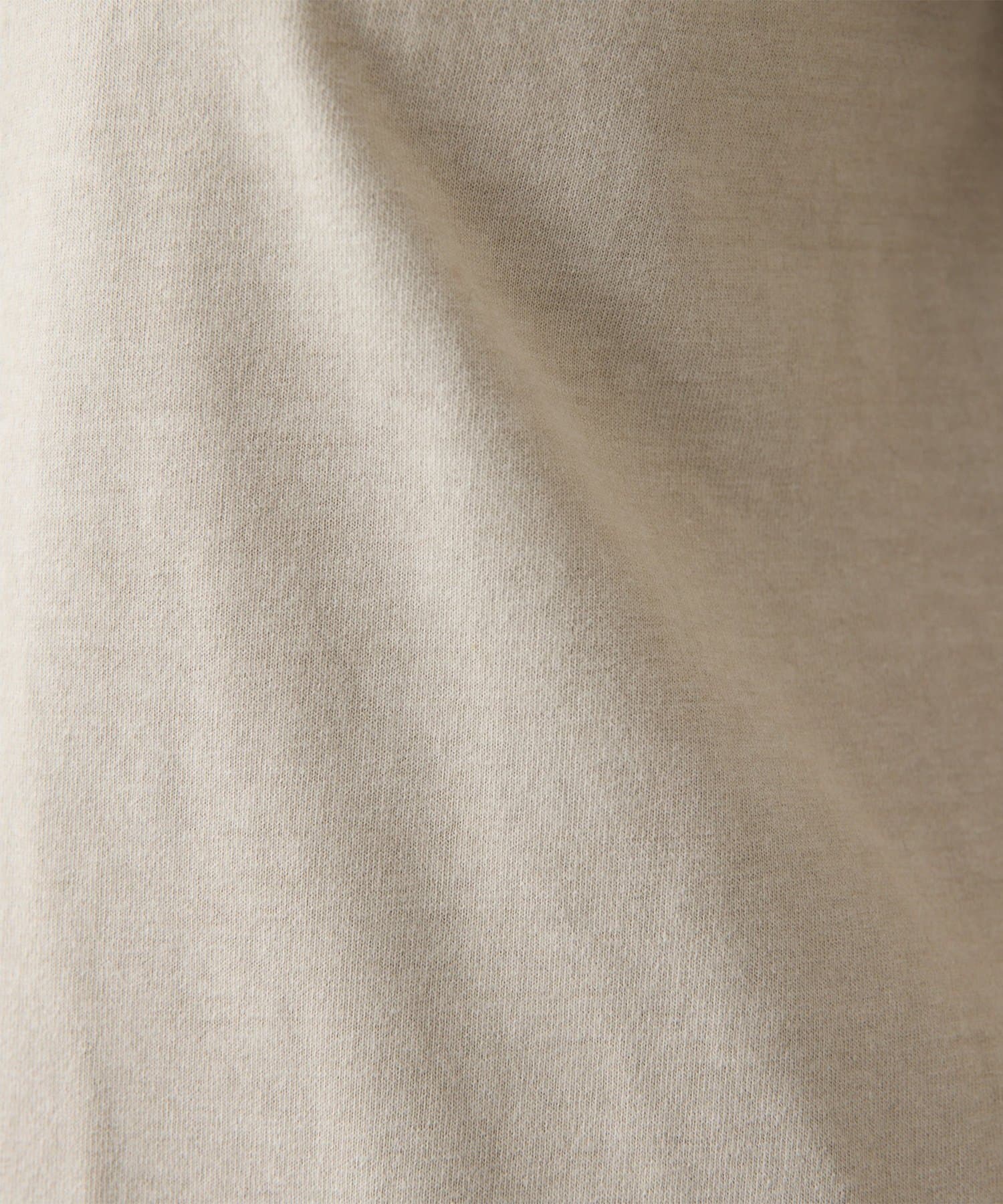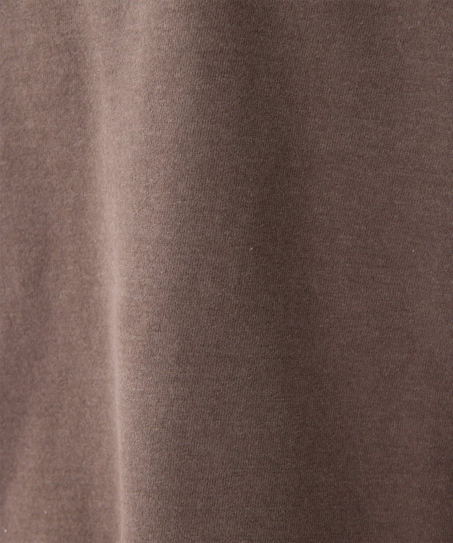 空紡糸を使用した天竺で、ヴィンテージルックを引き出すために染料のブレンドや起毛加工、タンブラー加工で表情を出した素材。