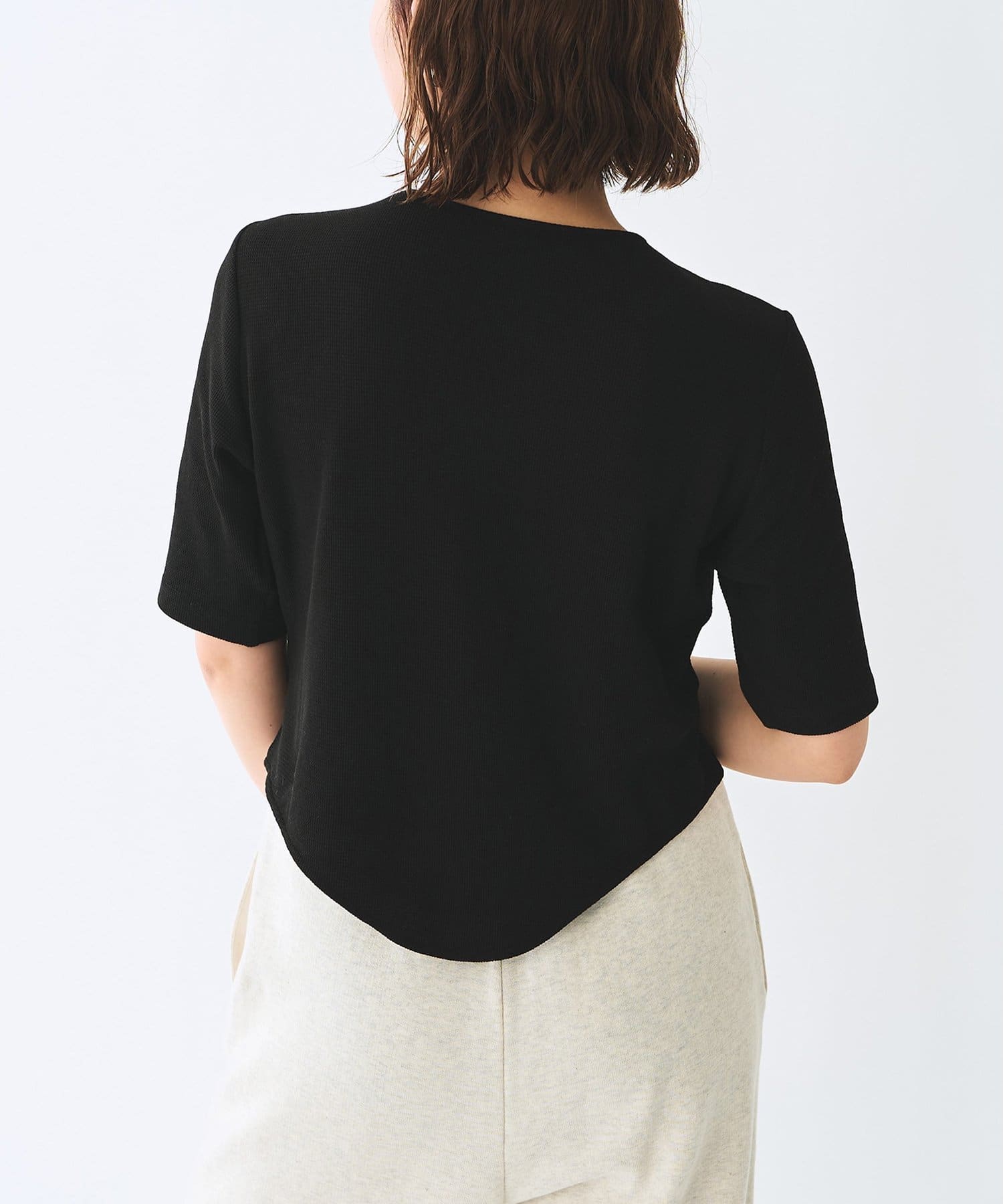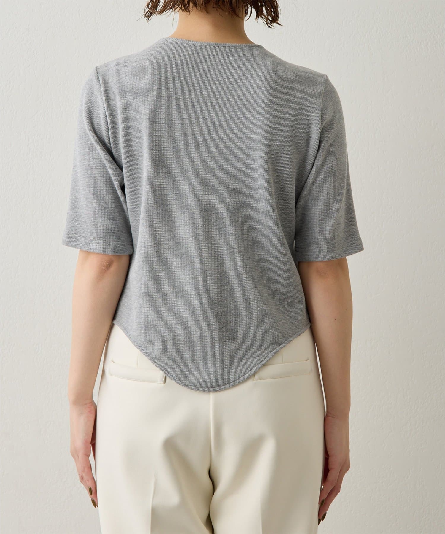 ■裾はラウンドしたシルエットで、さりげなく動きのあるデザインにすることで、インせずそのままでもバランスよく着こなせるのも魅力。