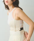 ■ブラトップとタンクトップを一体化させたアメリカンスリーブデザインのトップス。