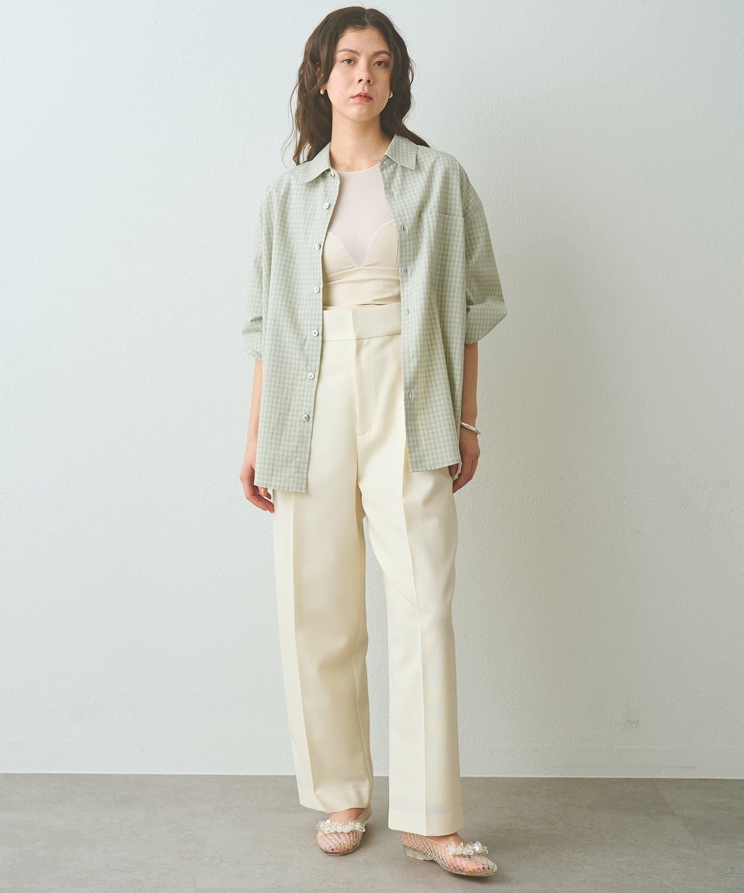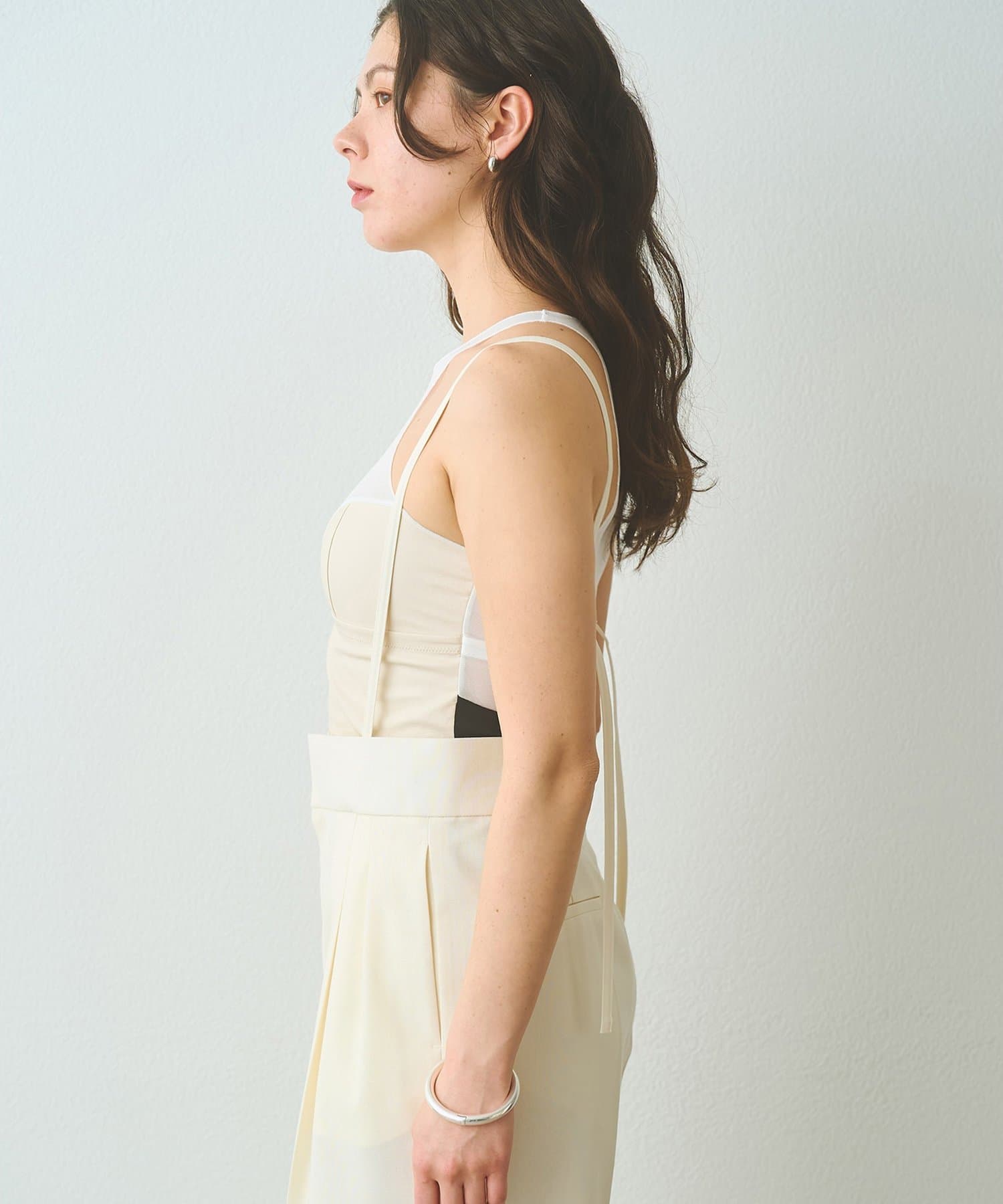 ■胸下に配したゴムがしっかりとバストを支えるため、インナーを気にせず一枚で着用可能。