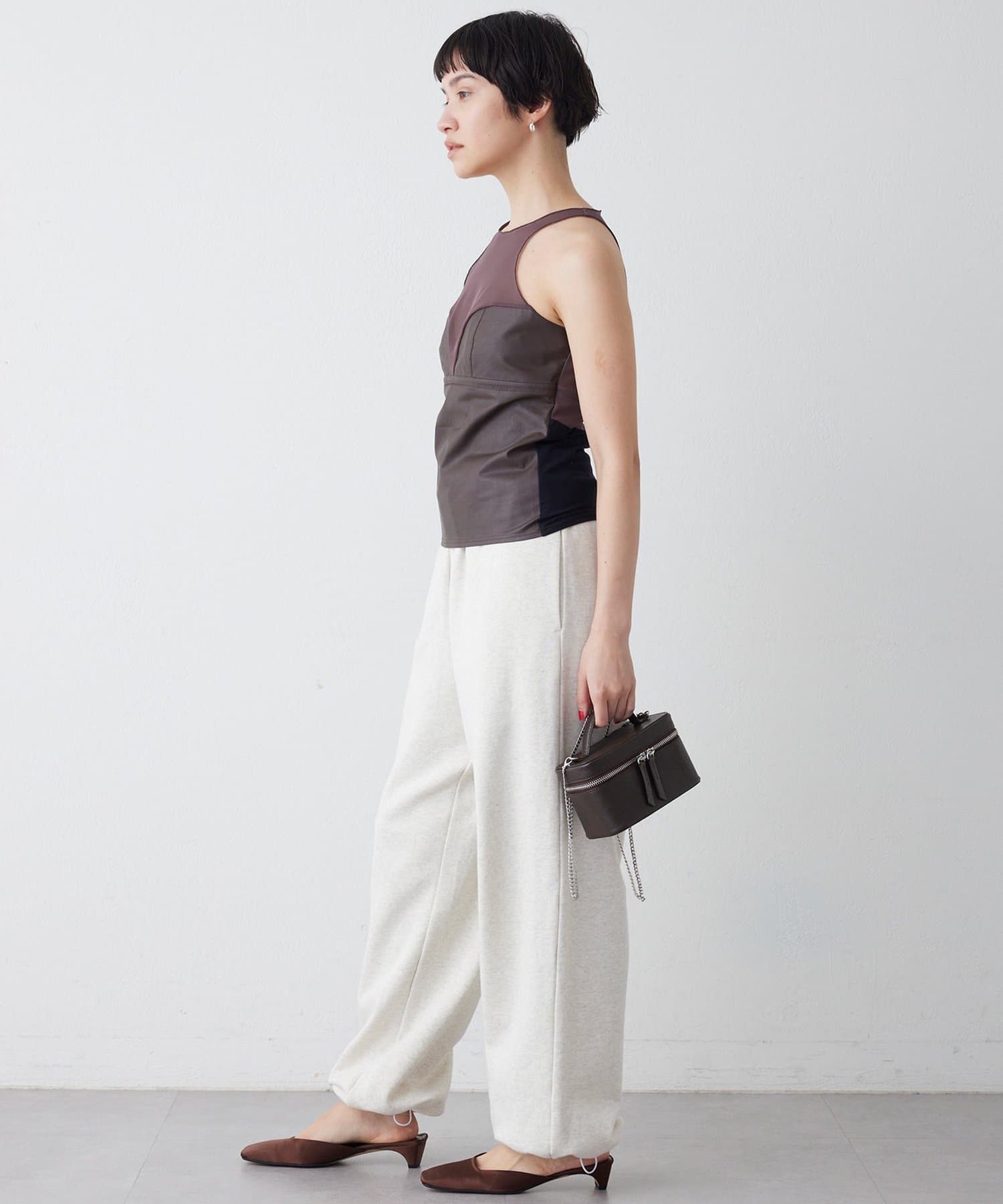 ブラウン:素材のコントラストがより際立つモードなブラウン。