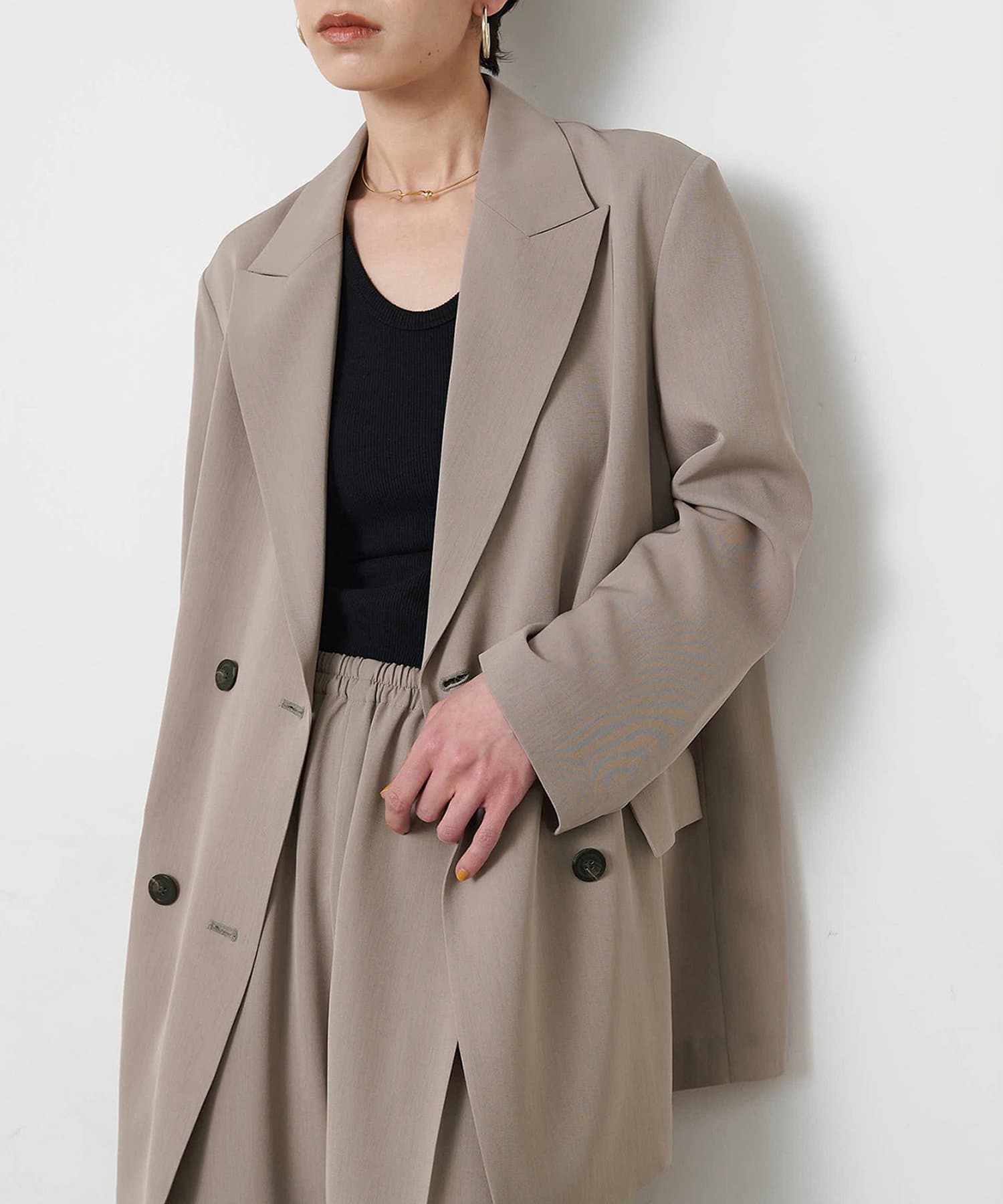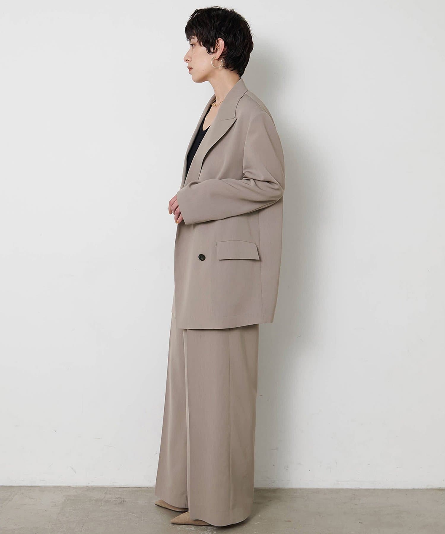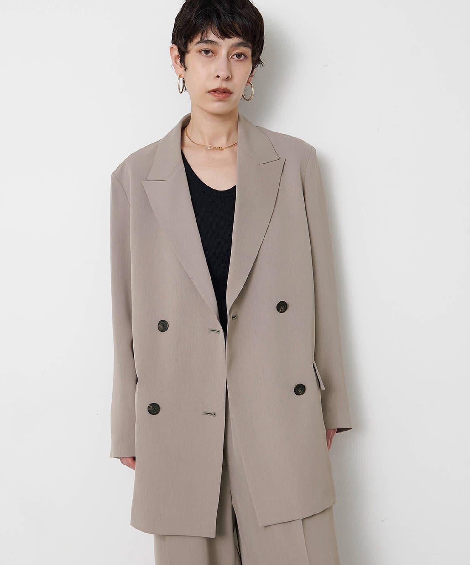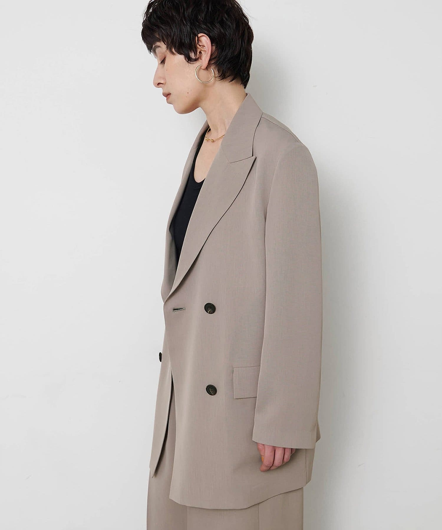 ■クラシックなダブルブレストのデザインに、ゆとりのあるシルエットを掛け合わせることで、堅くなりすぎないモダンなバランスに。