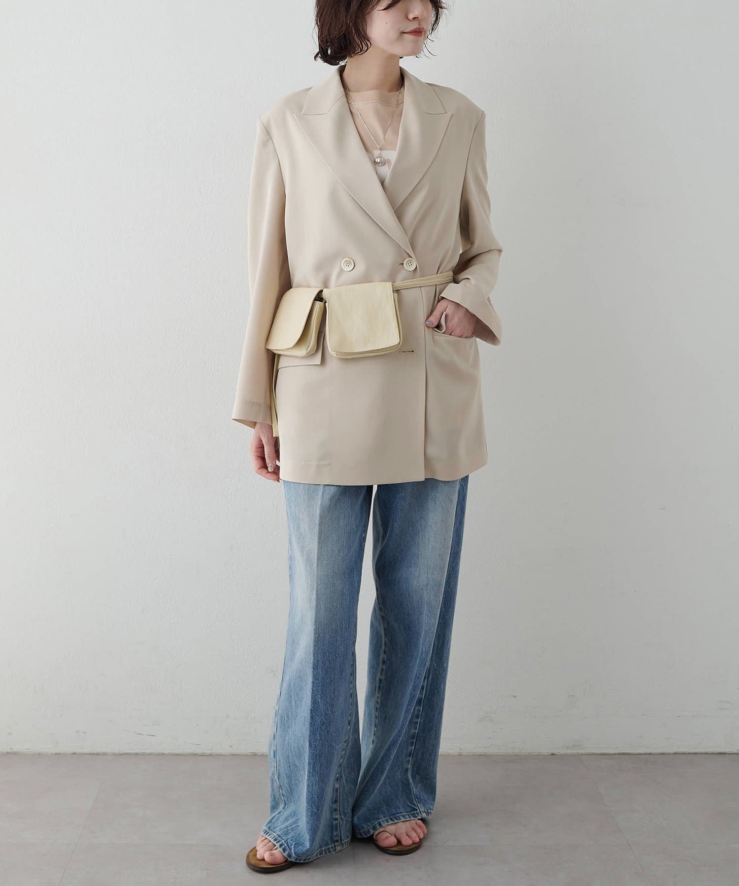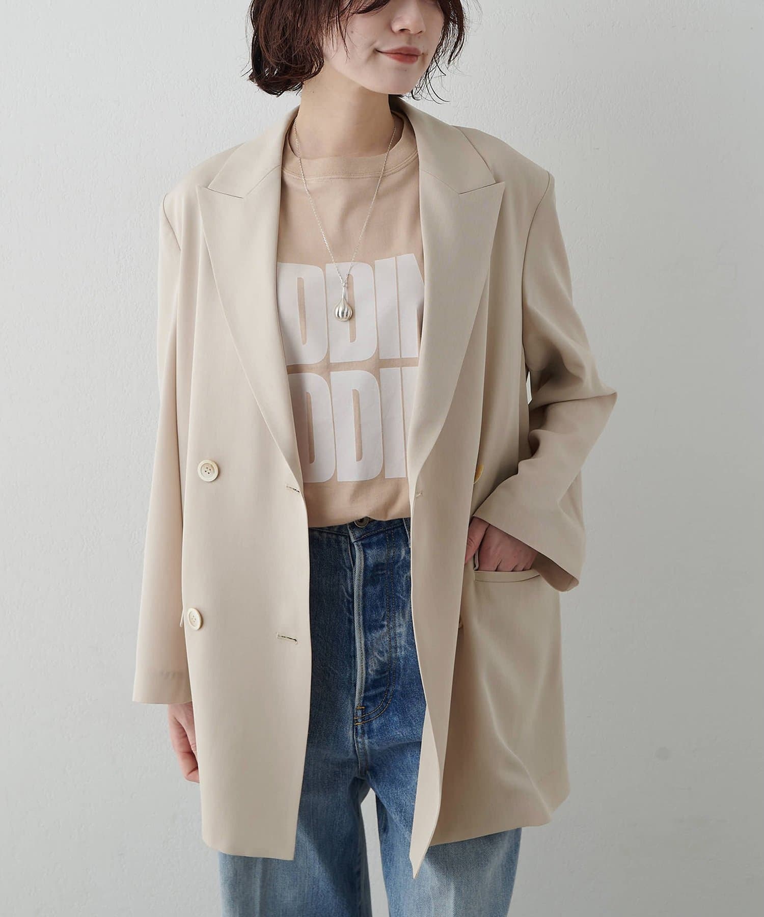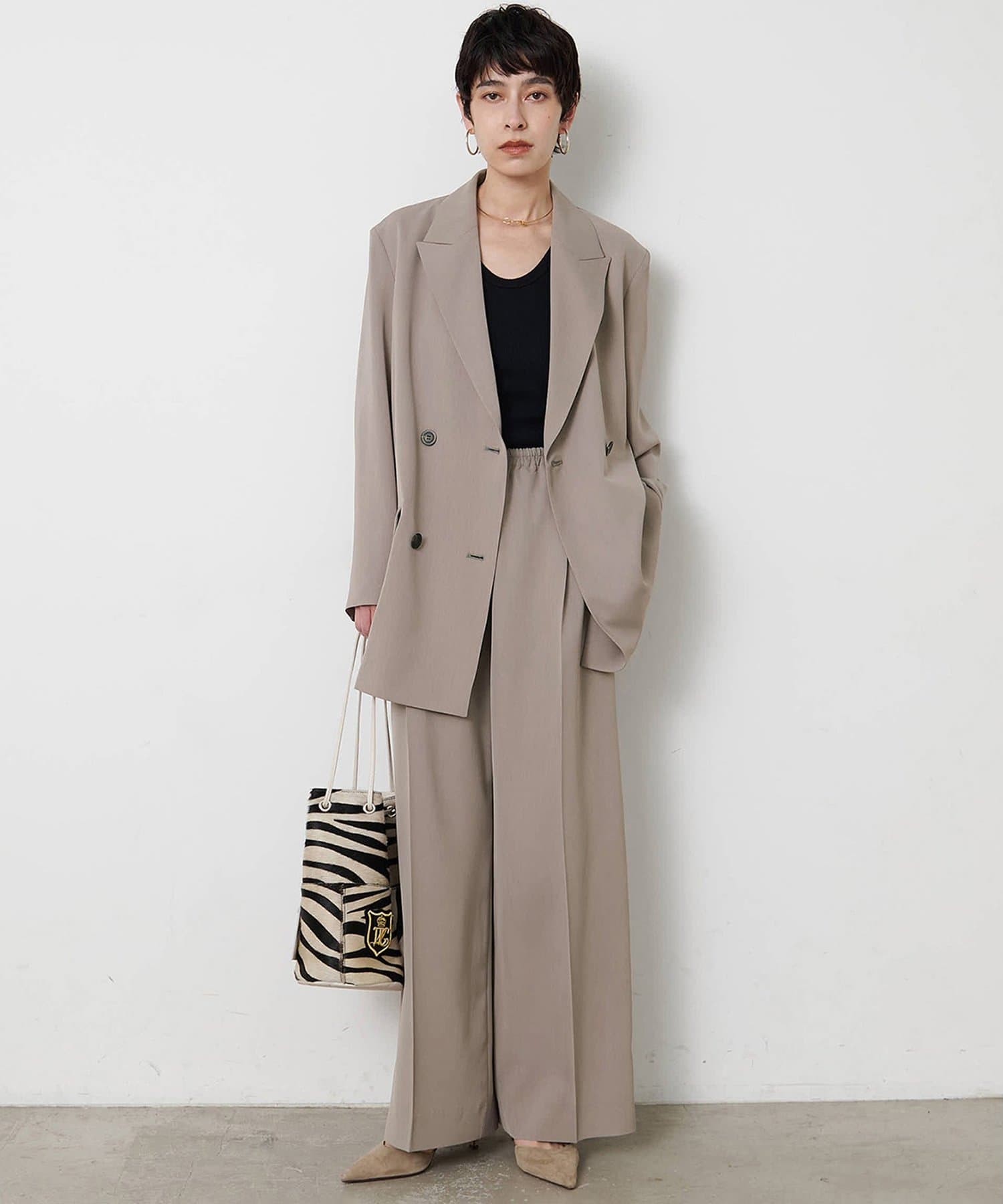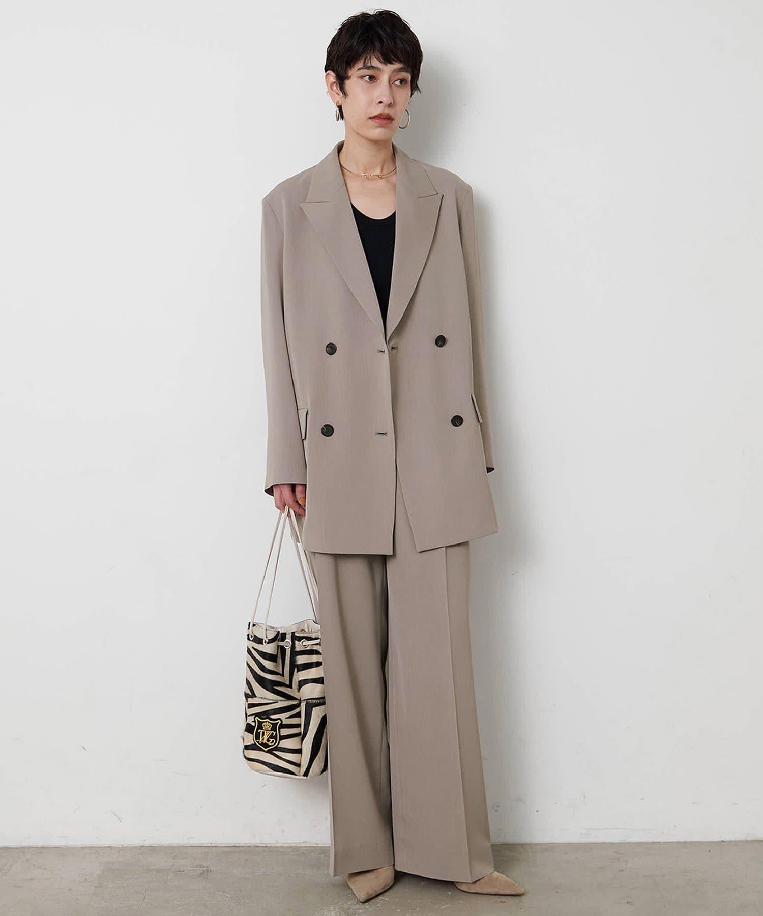 ■クラシックなダブルブレストのデザインに、ゆとりのあるシルエットを掛け合わせることで、堅くなりすぎないモダンなバランスに。