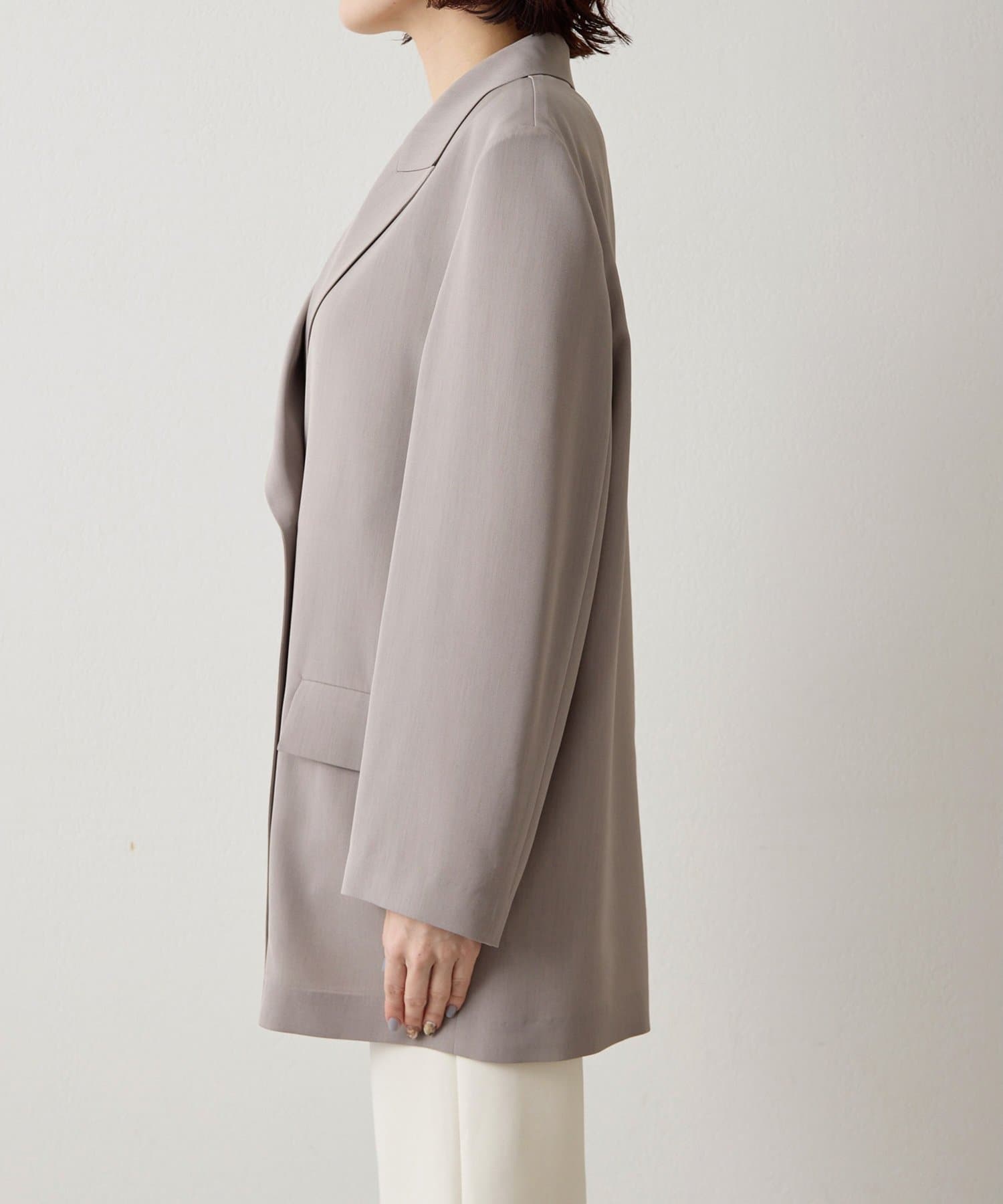 ■梳毛見えするしなやかな合繊素材を使用したジャケット。