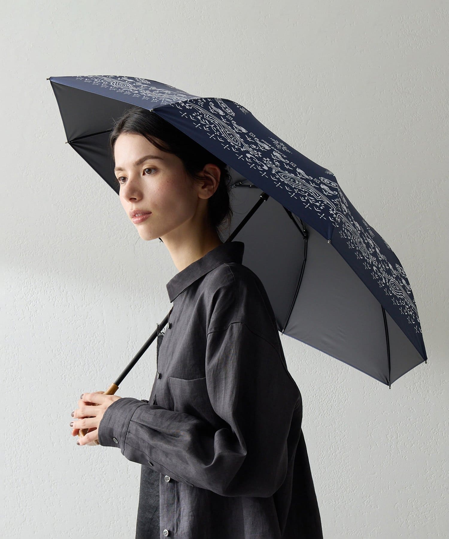 オリジナルのプリント柄が目を惹く、晴雨兼用折り畳み傘