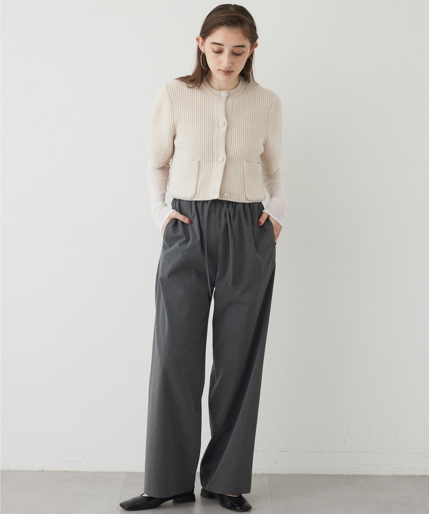■ウエストのドロスト紐はやや短めにし、あえて垂らしたままにしていただくのも◎。