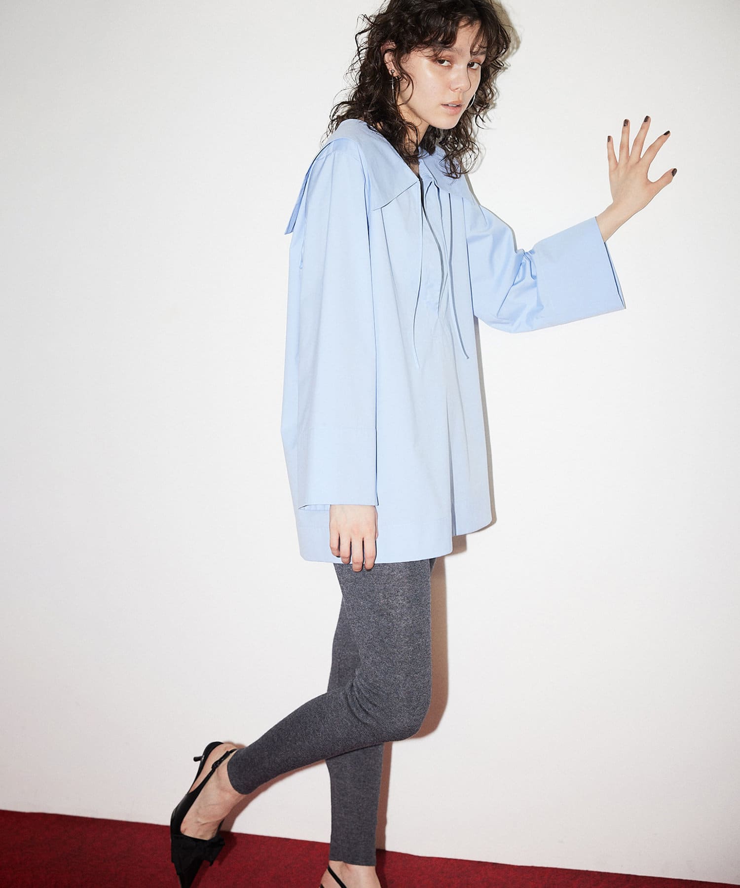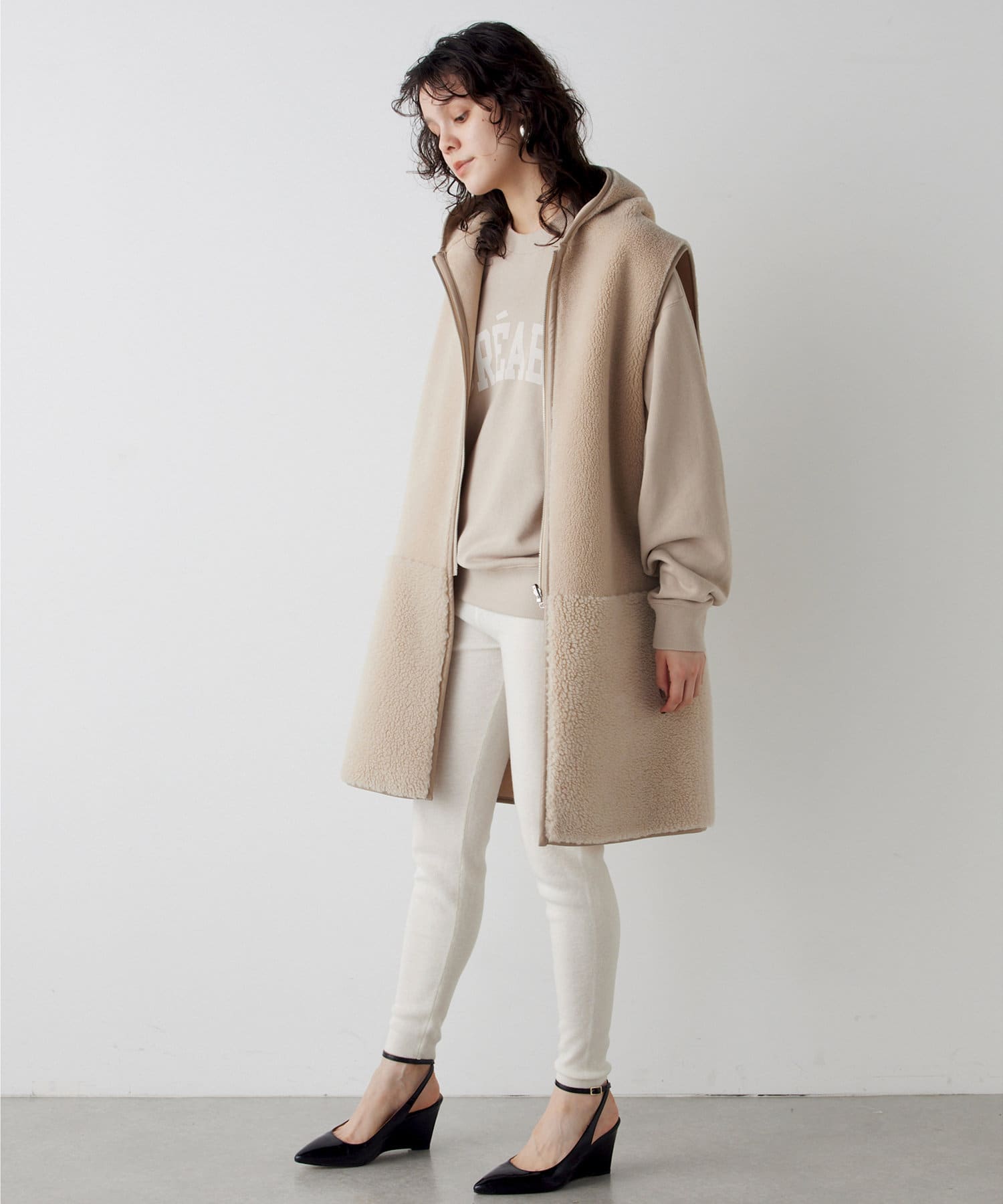 ■ヒップが隠れるくらい長めのトップスと合わせるのがおすすめ。