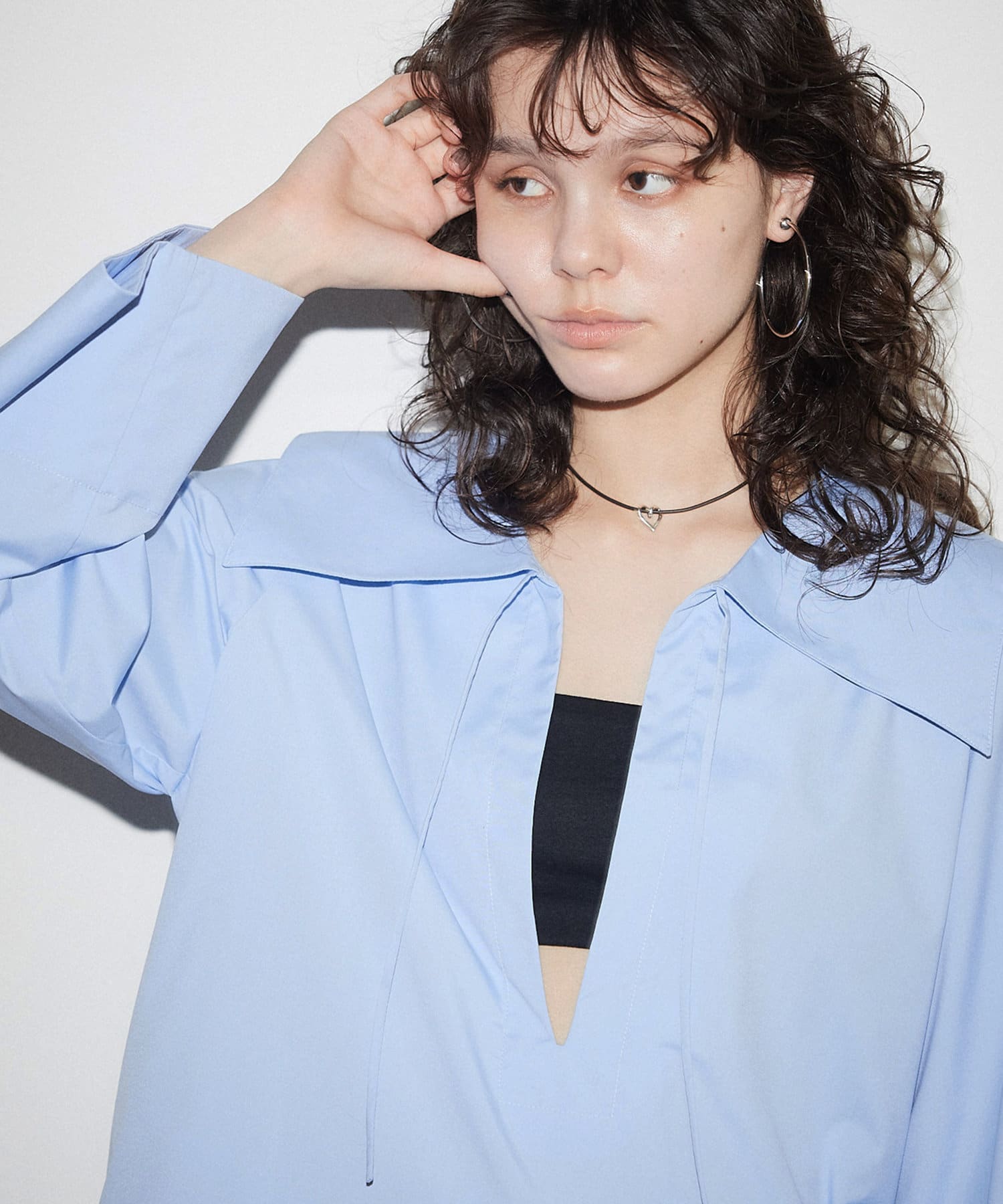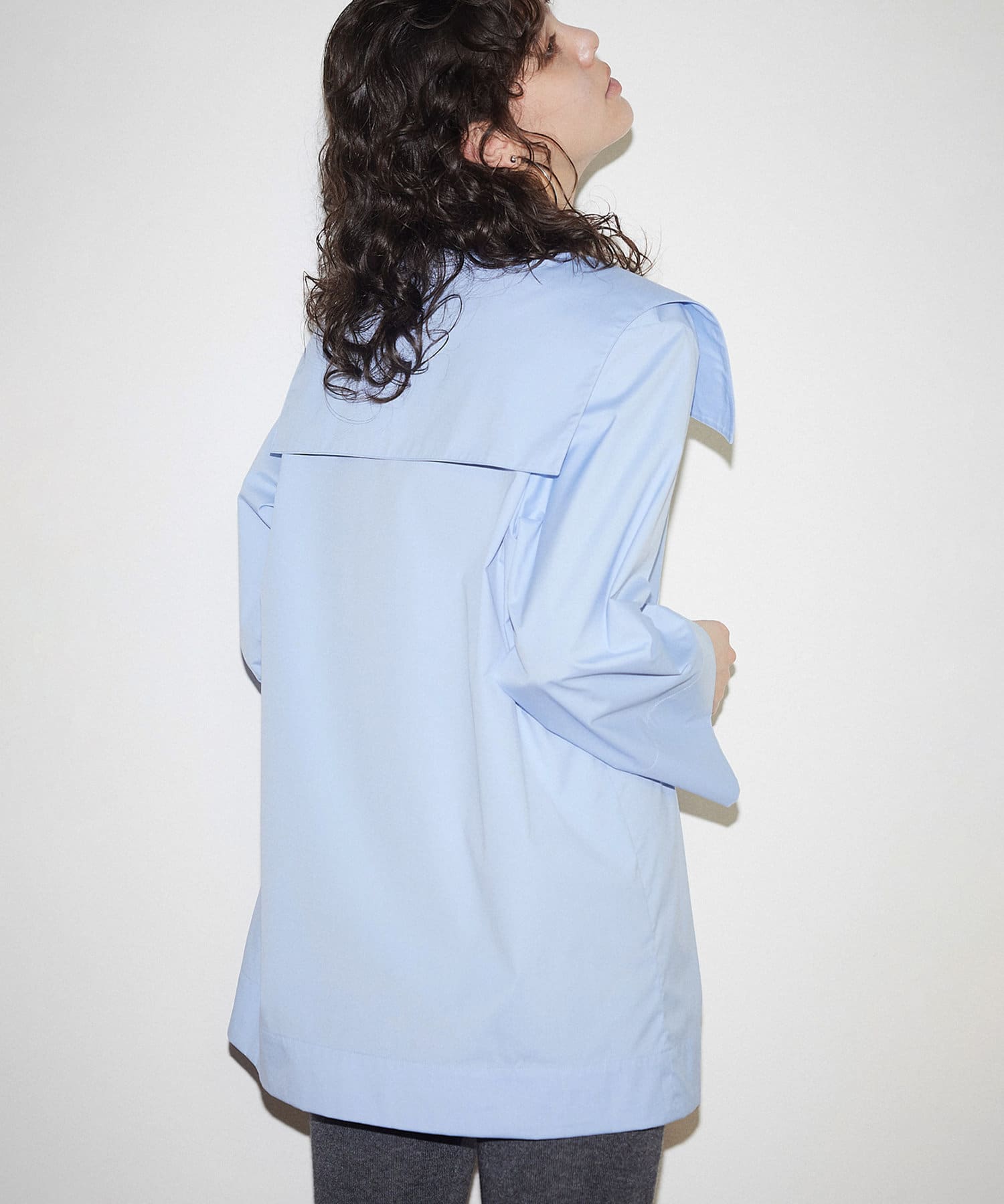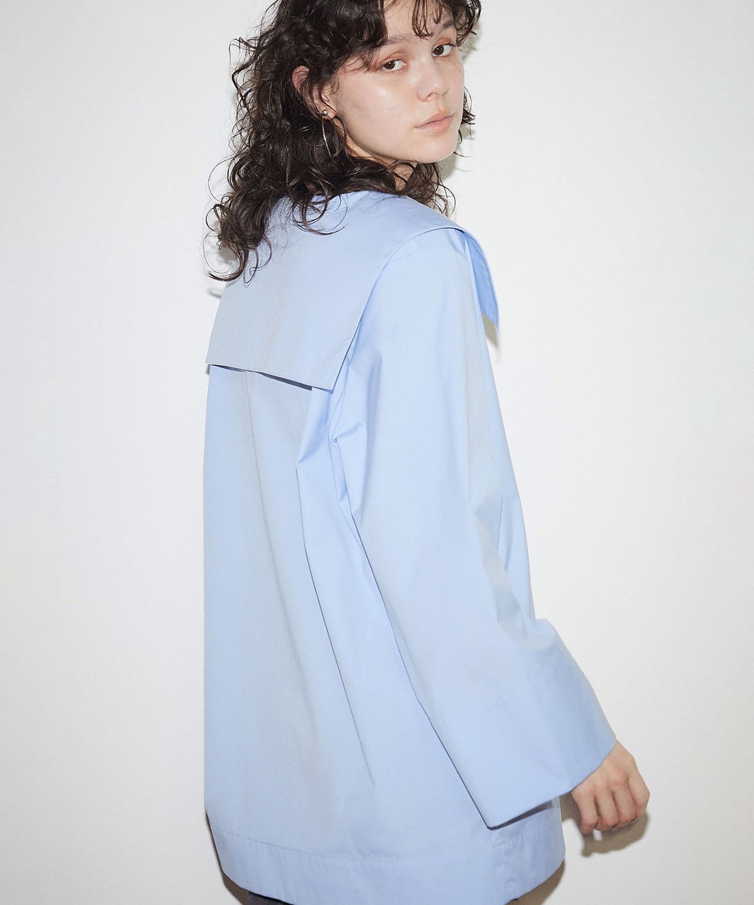 大きめのスクエアカラーが存在感のあるオーバーシャツ