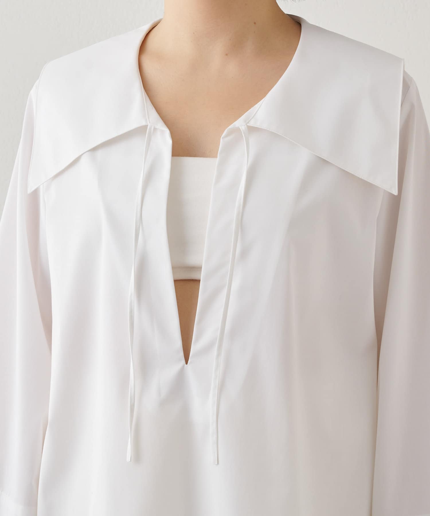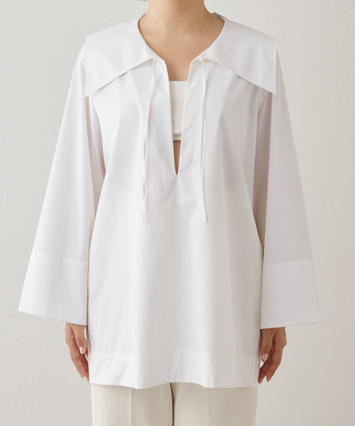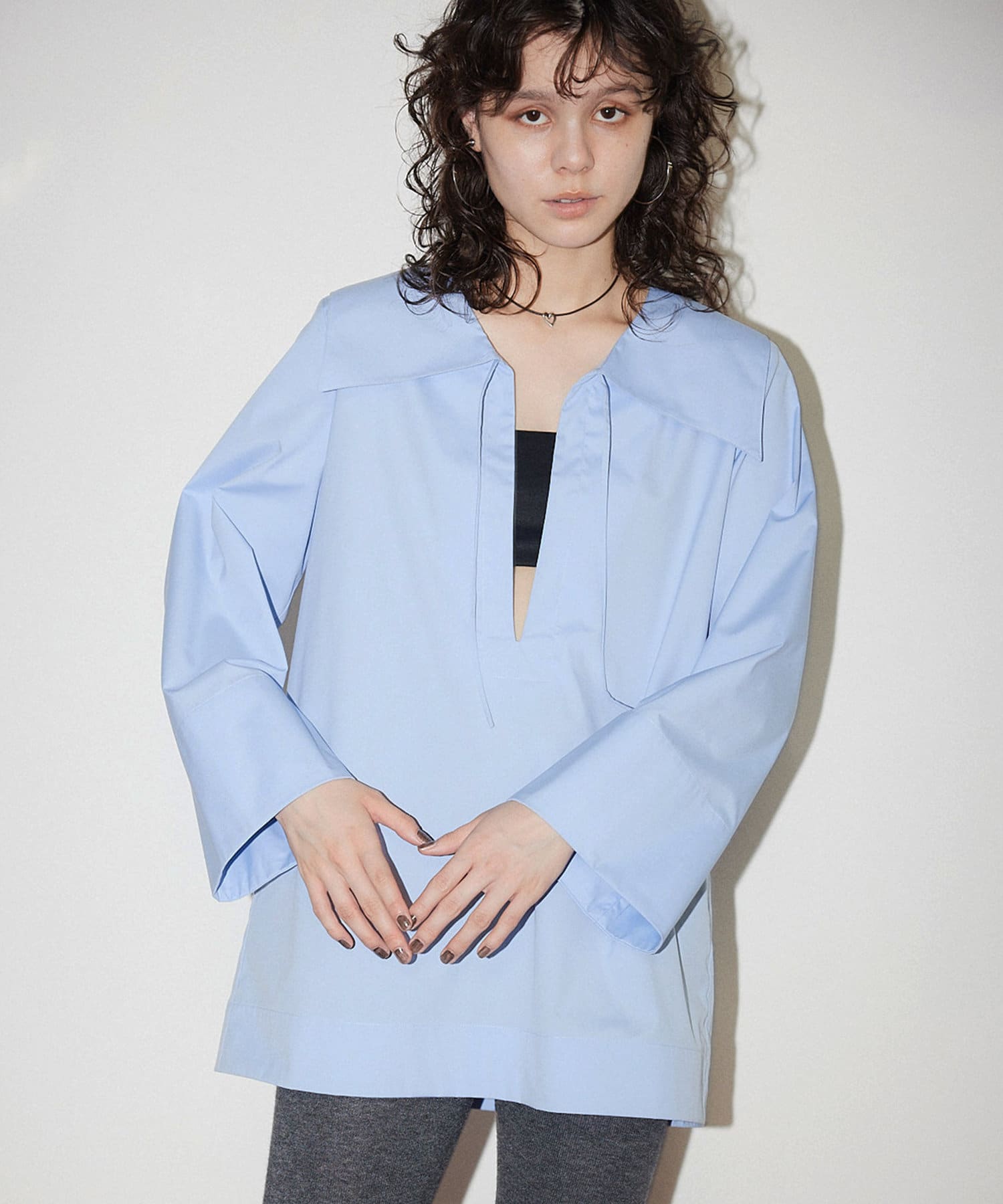大きめのスクエアカラーが存在感のあるオーバーシャツ