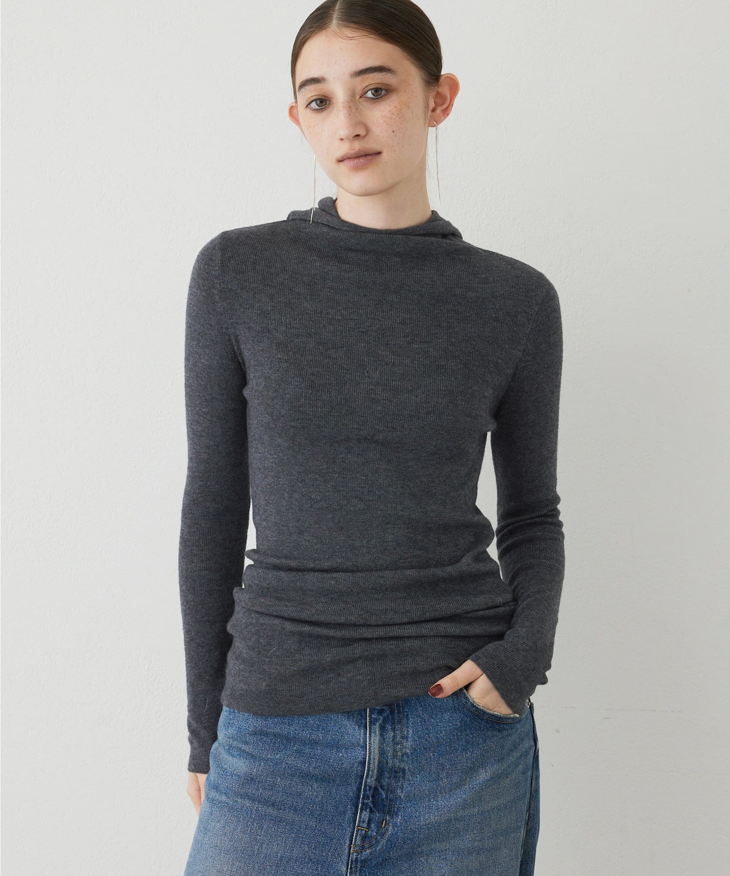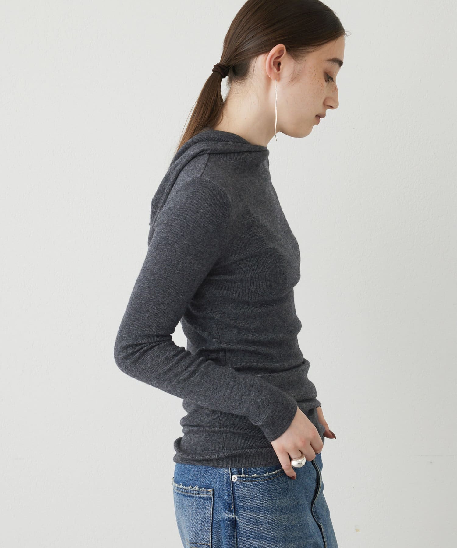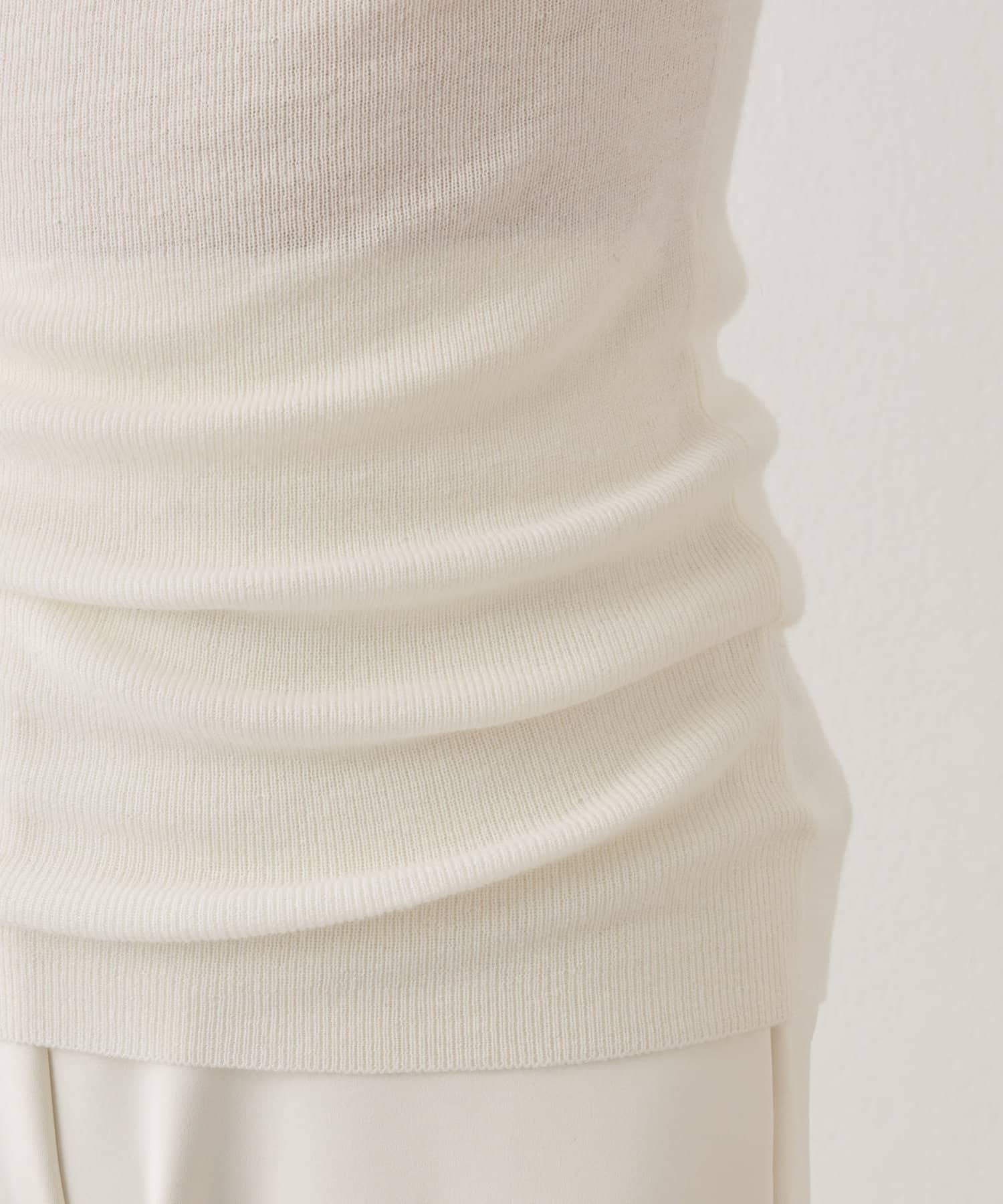 ■体に沿うタイトなサイズ感ながら、伸縮性が良いリブ編みのストレスフリーな着心地が魅力。
