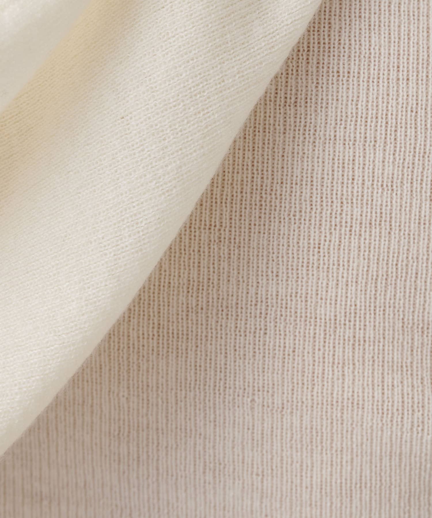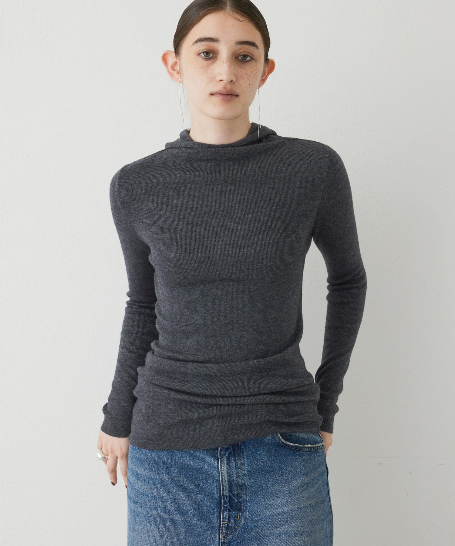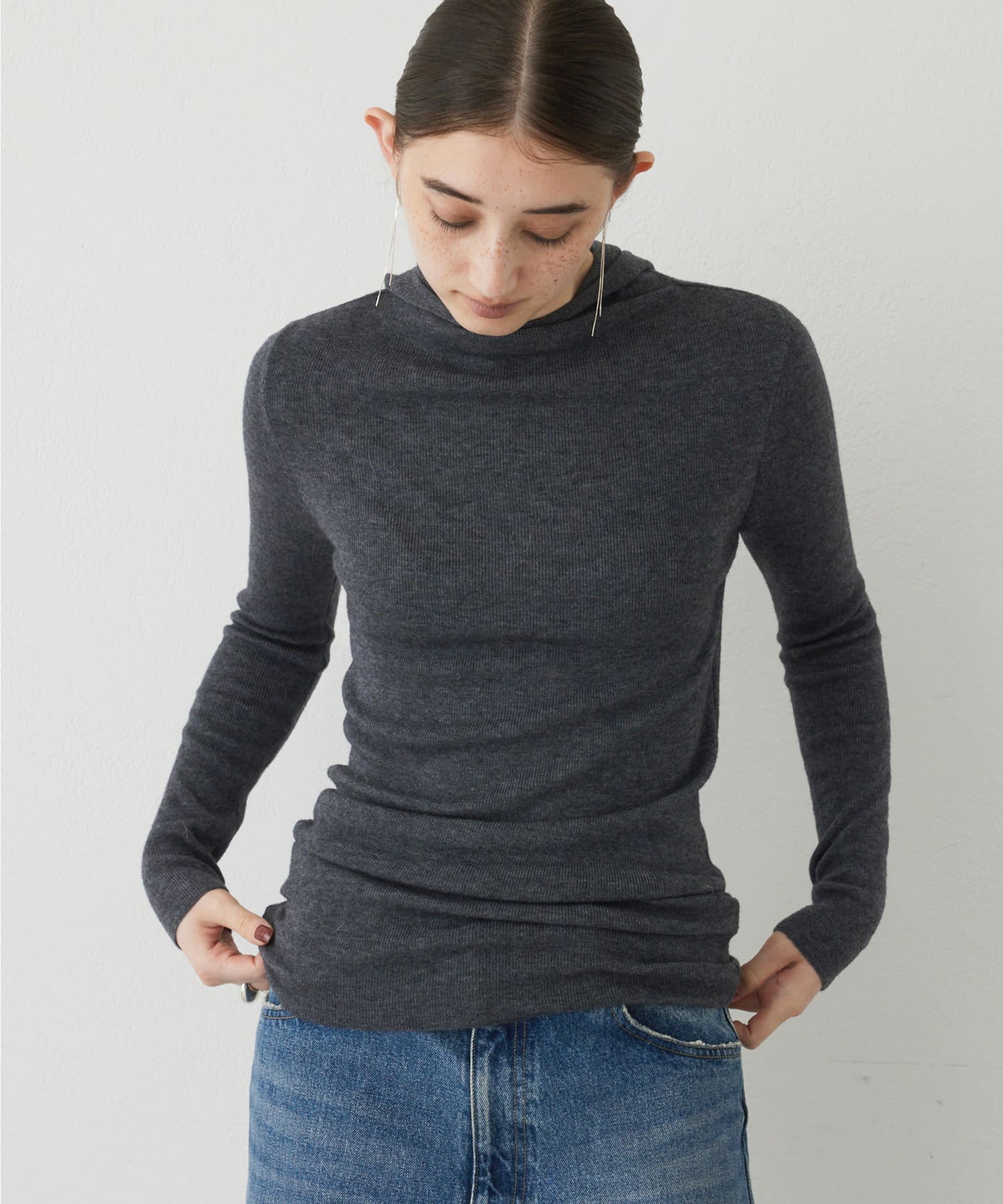 ■体に沿うタイトなサイズ感ながら、伸縮性が良いリブ編みのストレスフリーな着心地が魅力。