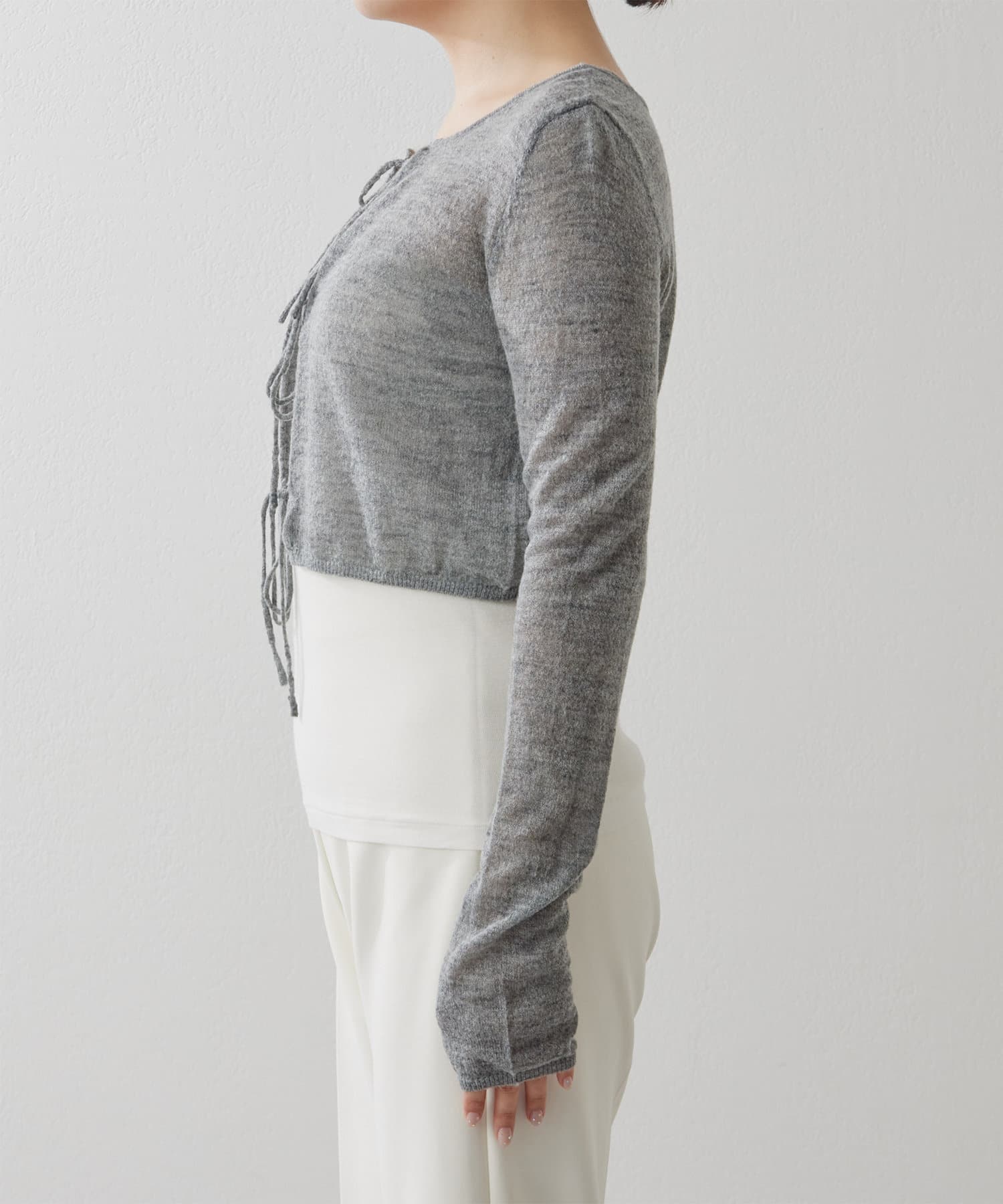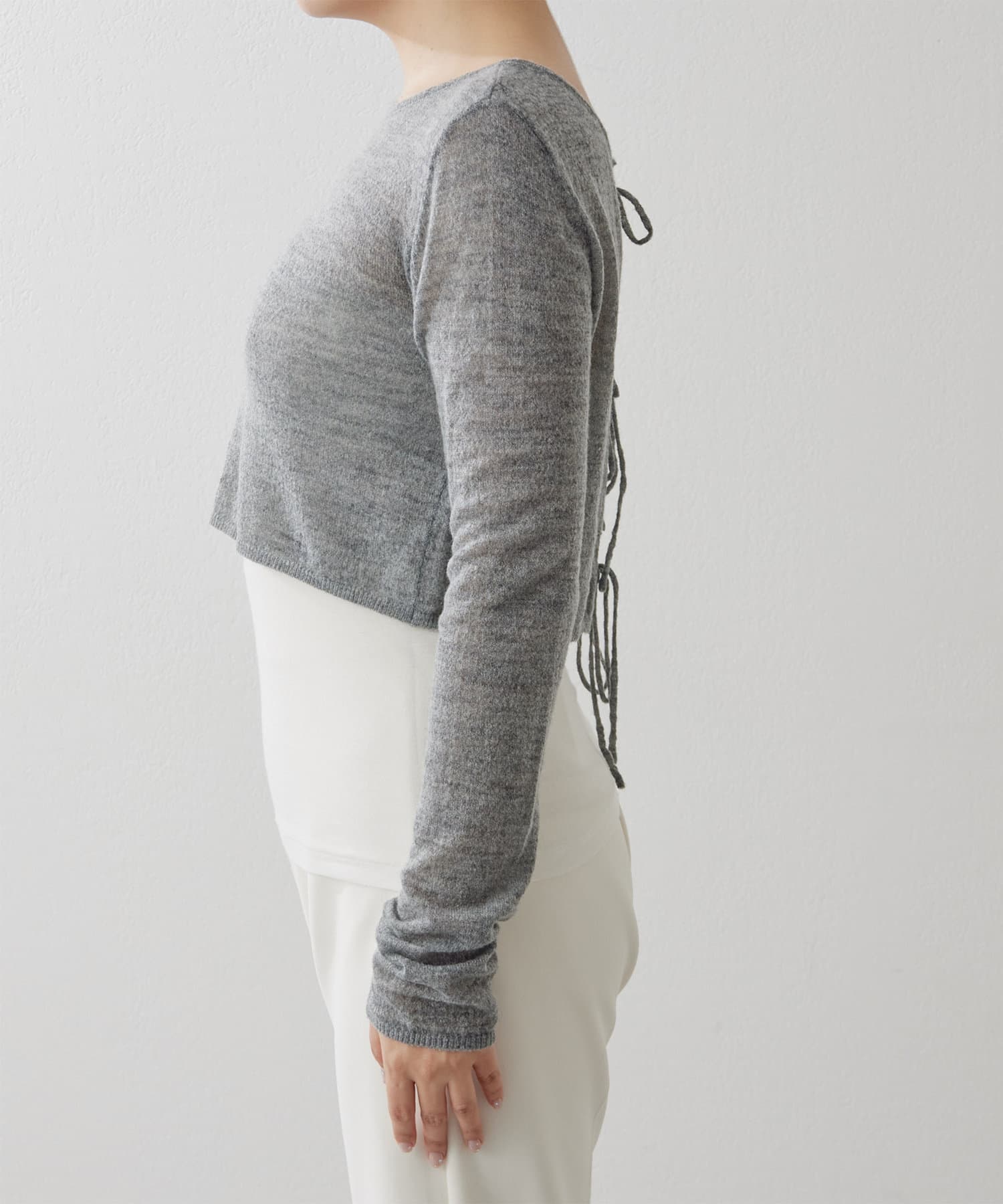 ■シアー感のある薄手のニット素材を使用したプルオーバー。