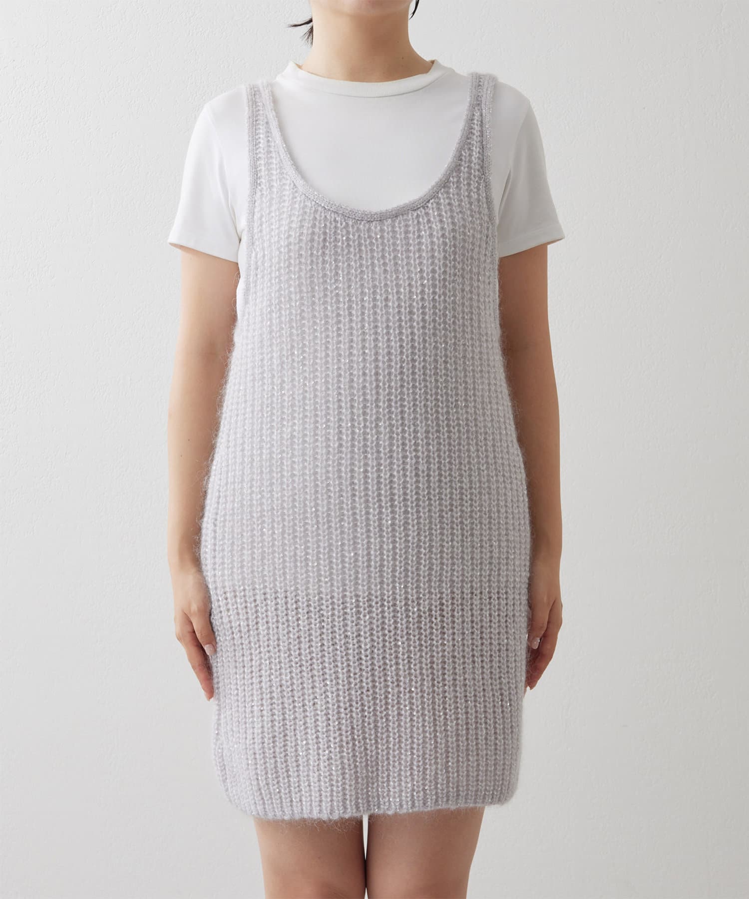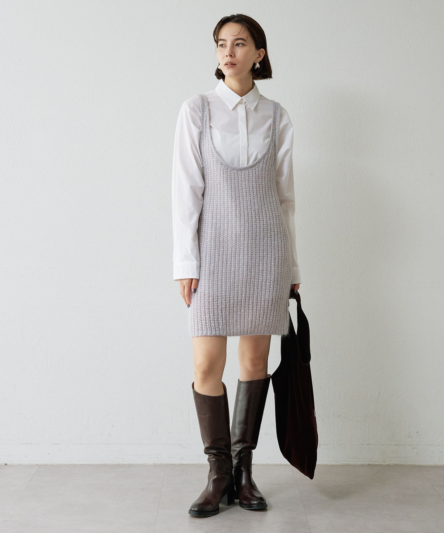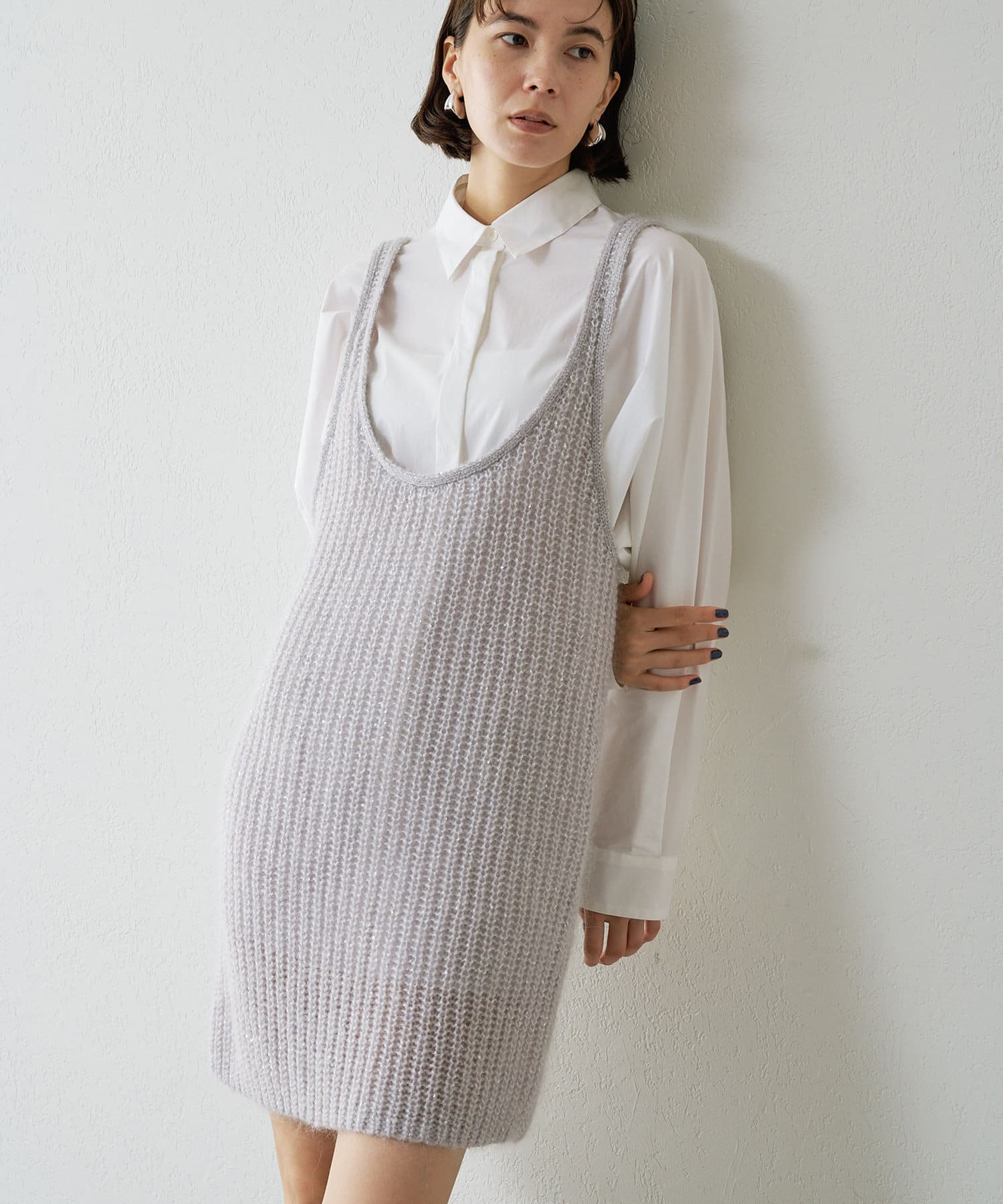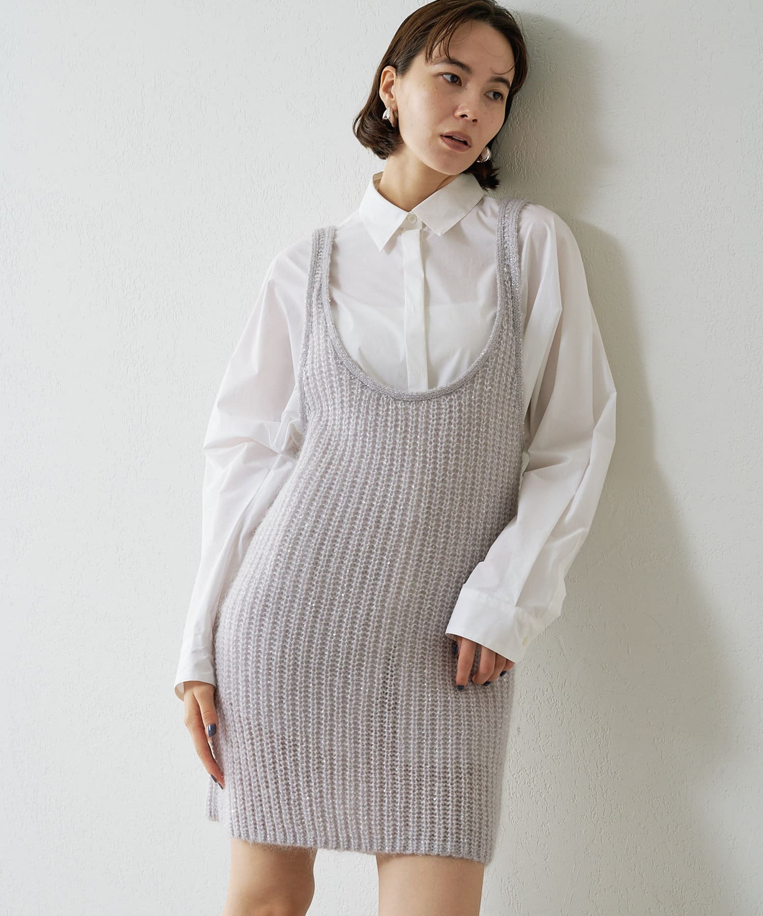 ■ローゲージで編み上げられたミニ丈のニットワンピース。