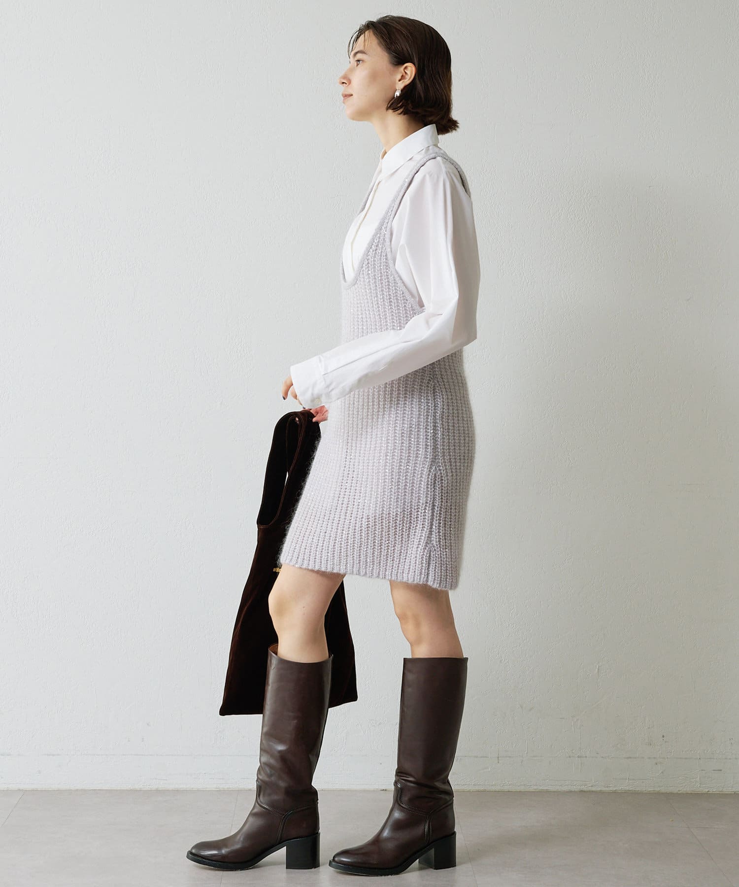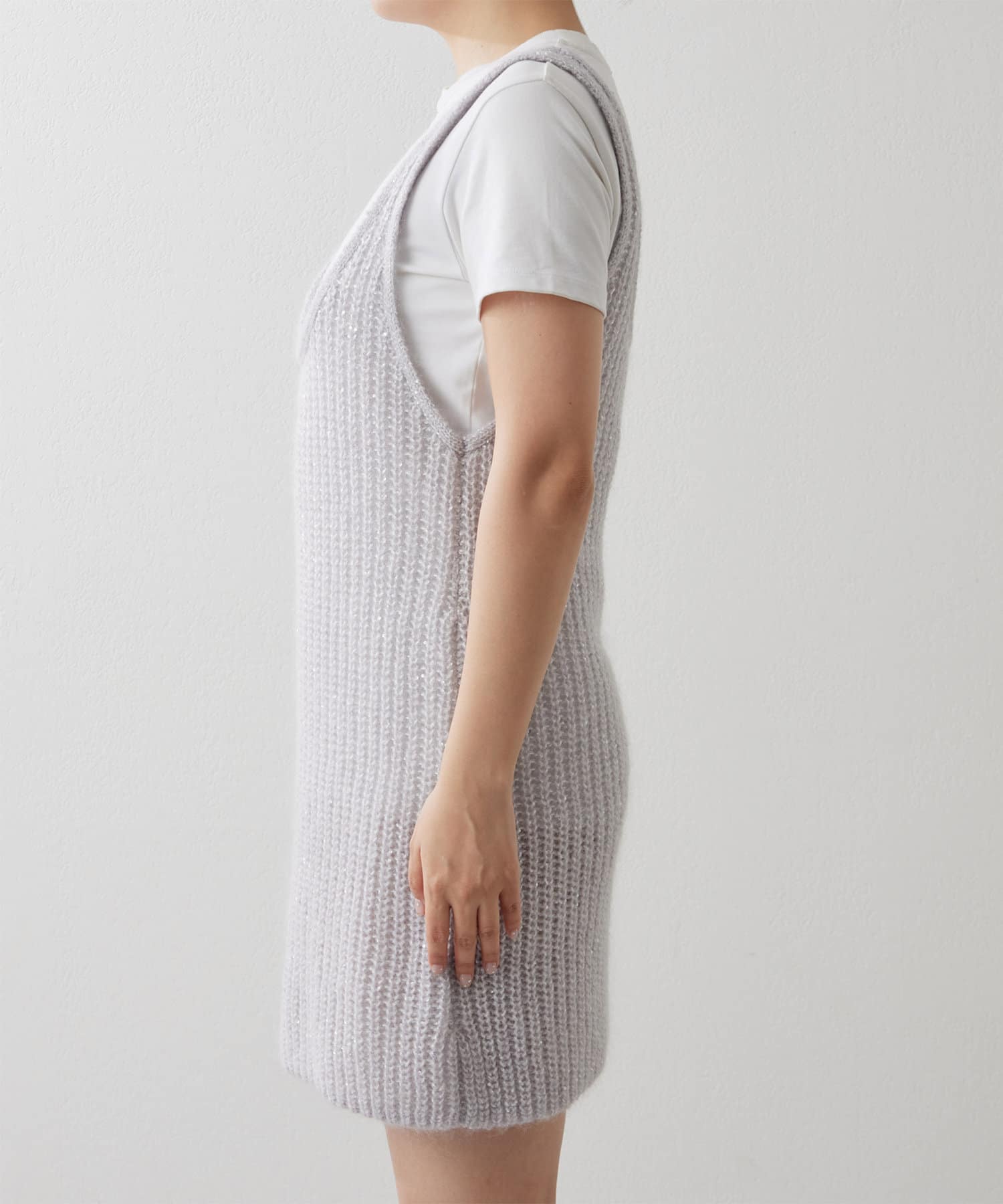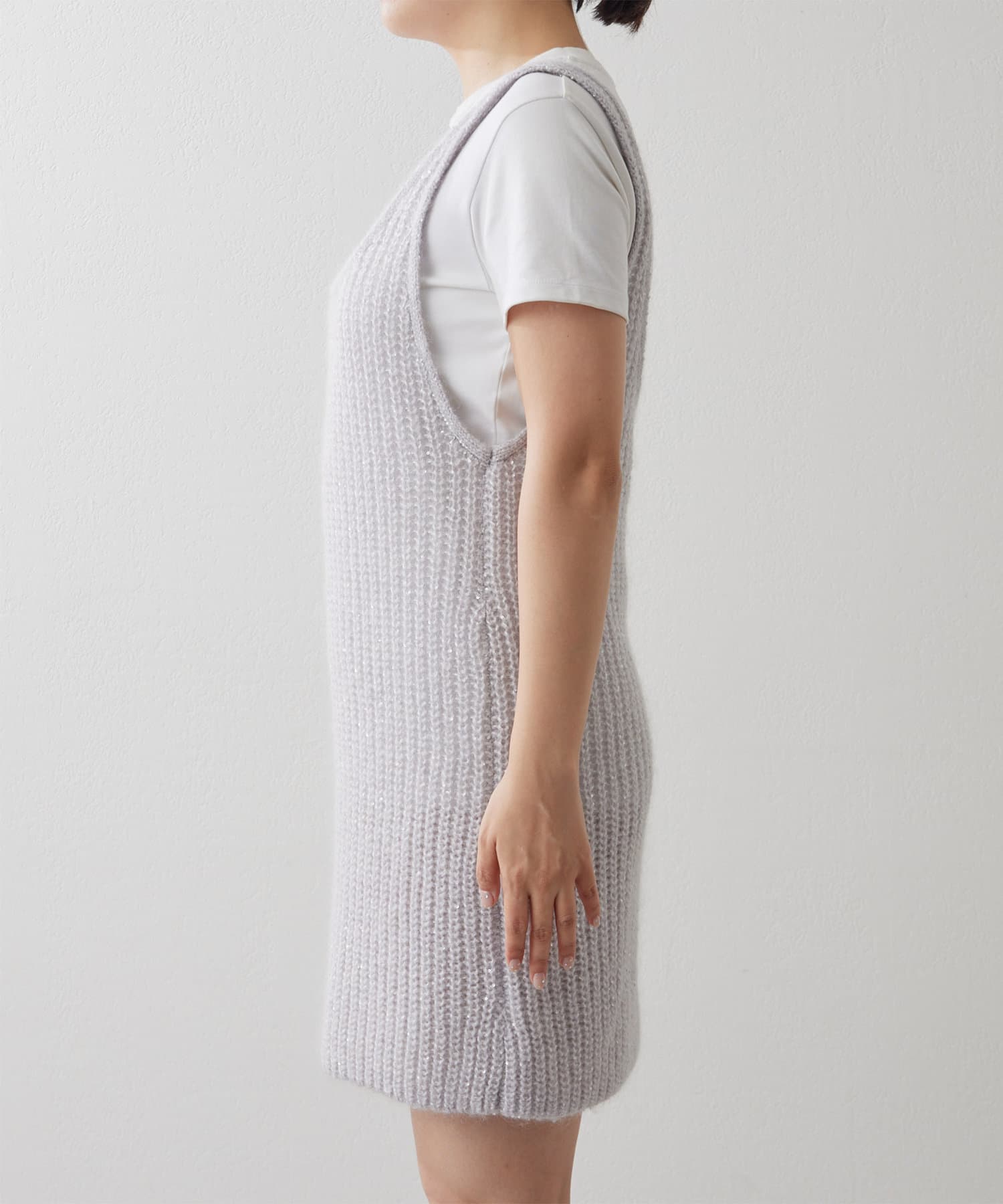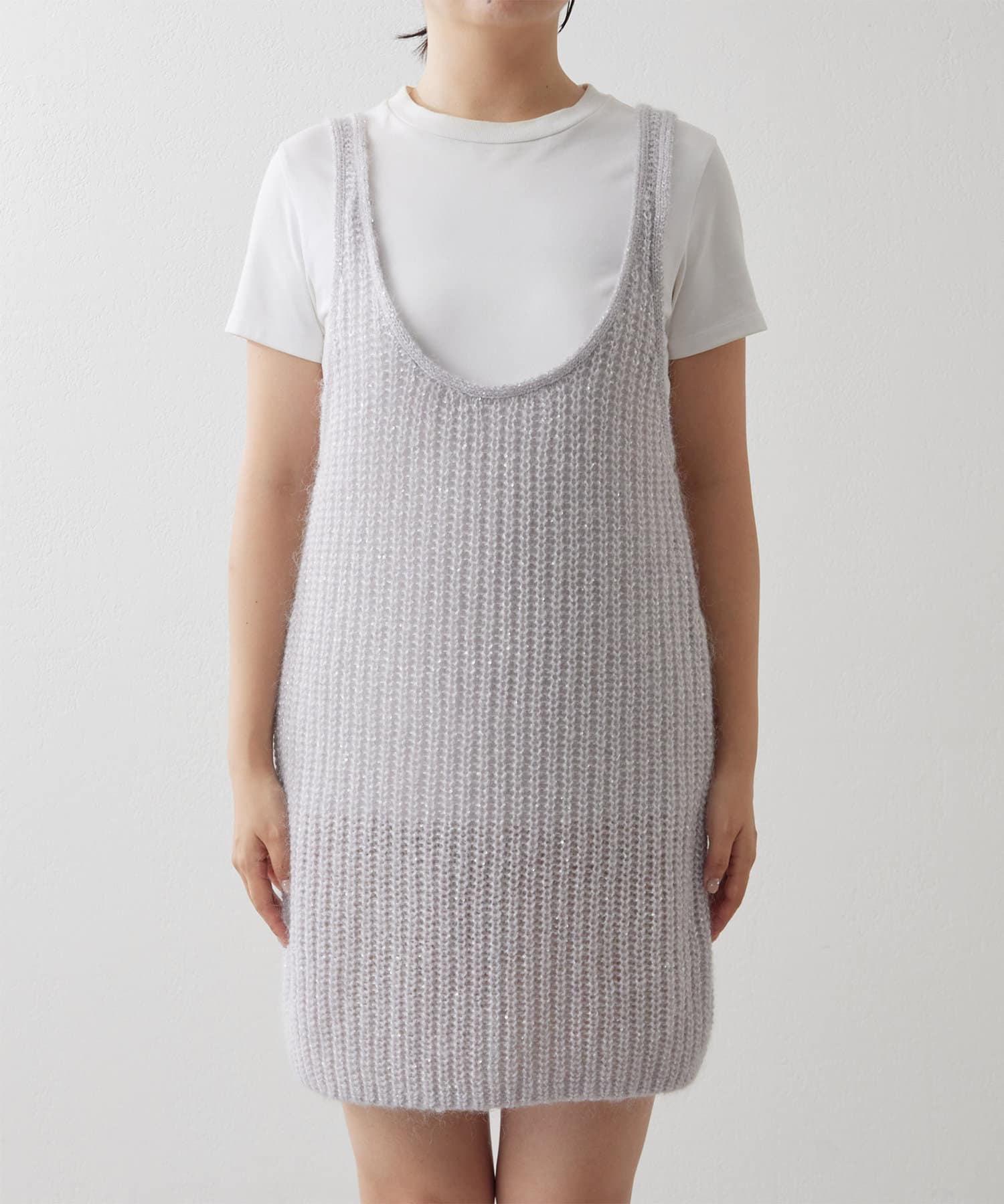 ■ローゲージで編み上げられたミニ丈のニットワンピース。