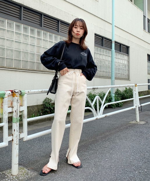 ・カラーもデザインもロゴもシンプルなので、シンプルなボトムは勿論、デザインの効いたボトムにも◎