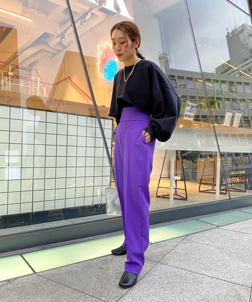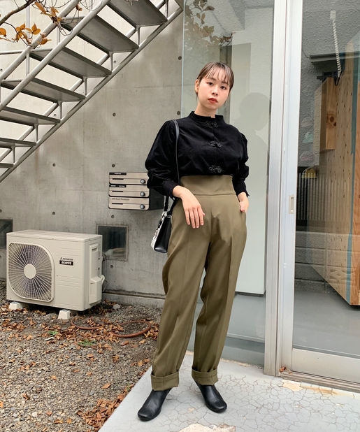 ・ウエストのスッキリさとシルエットのゆったりさで、メリハリのあるスタイルに。