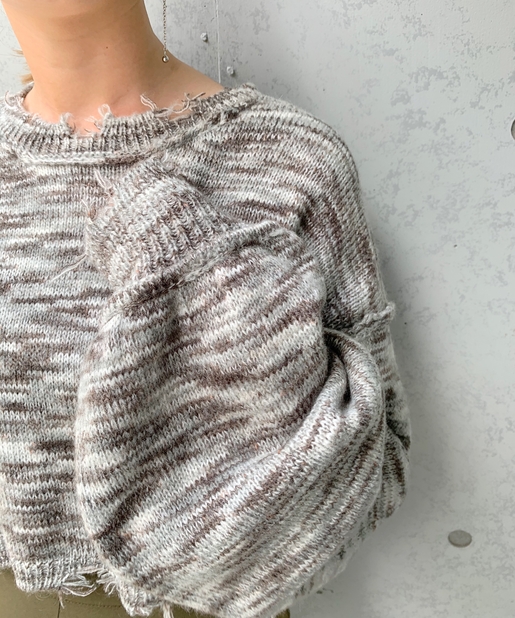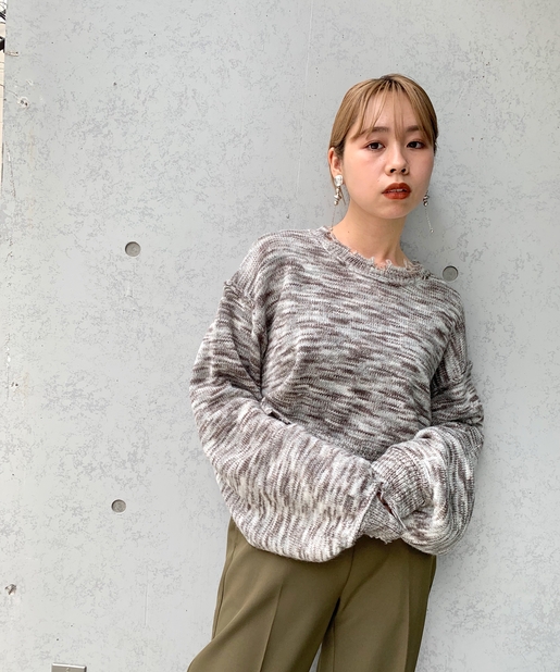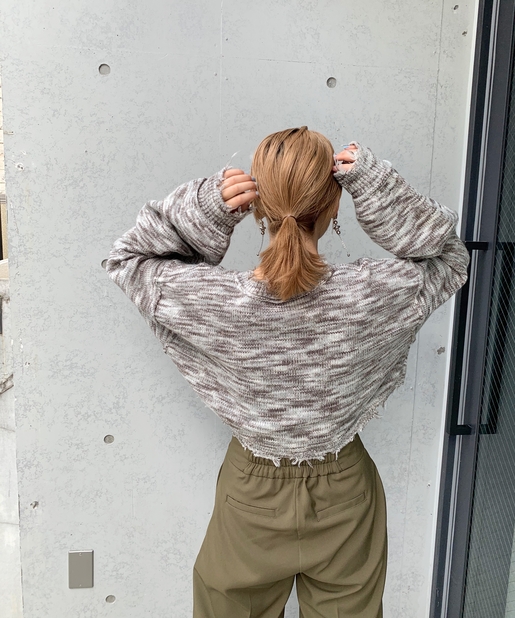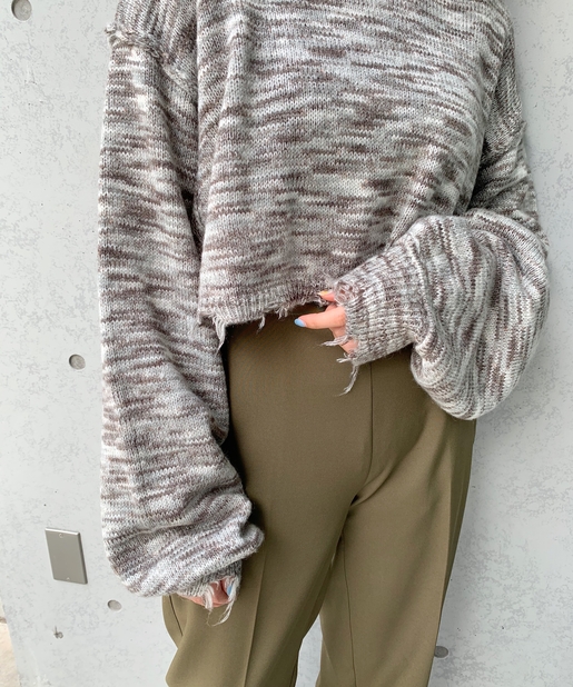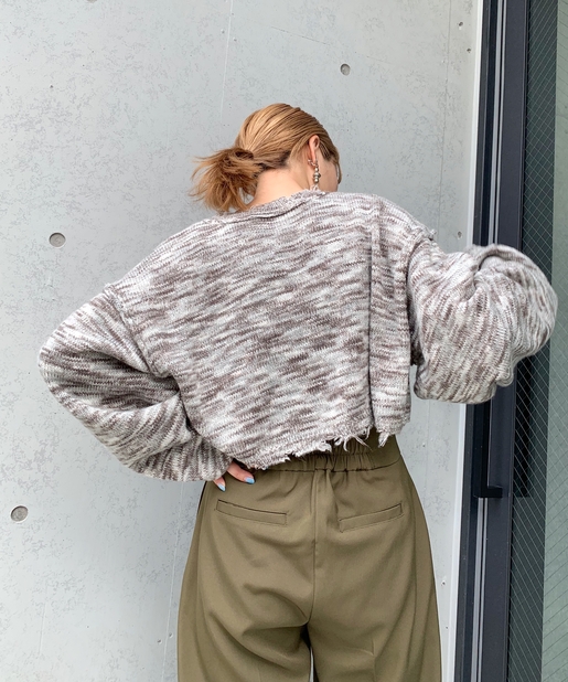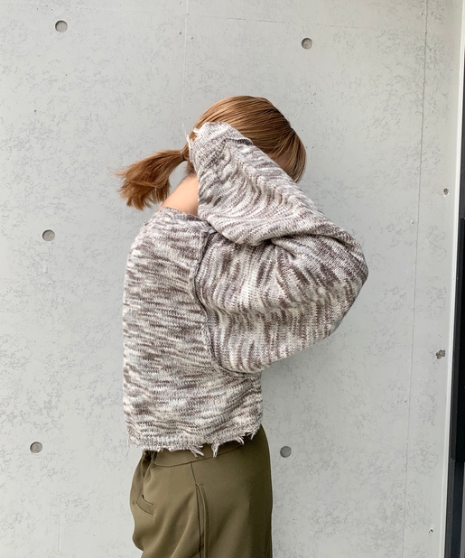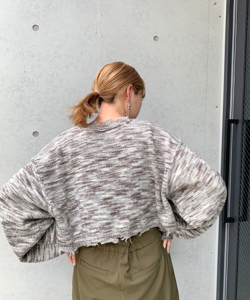 レイヤードスタイルもチラッと肌見せスタイルも◎短丈ボリュームスリーブニット