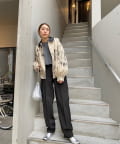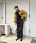 ・ボディーのカラーと襟の異素材感がコーデのスパイスに。地味になりがちな秋冬コーデに新鮮さを与えます。