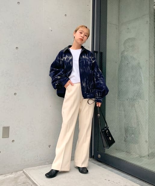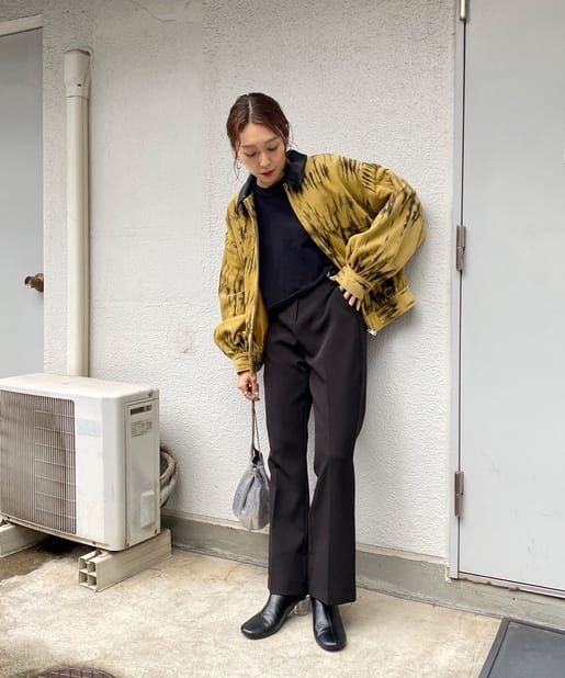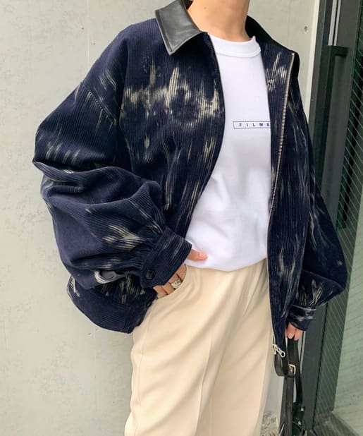 暗くなりがちな秋冬ファッションにカラーでパンチを!コーデュロイのスウィングトップ