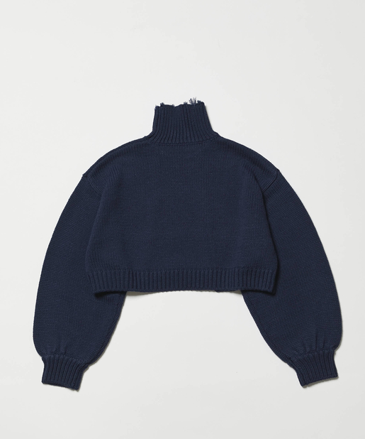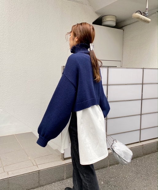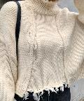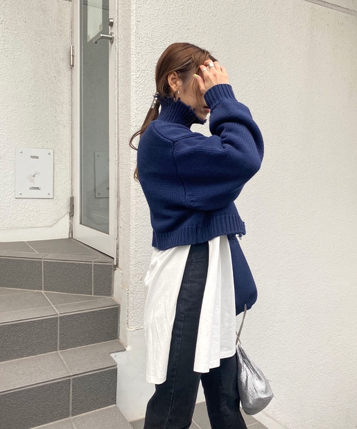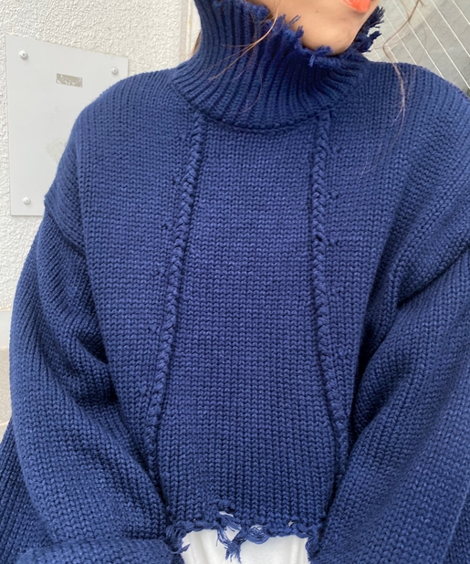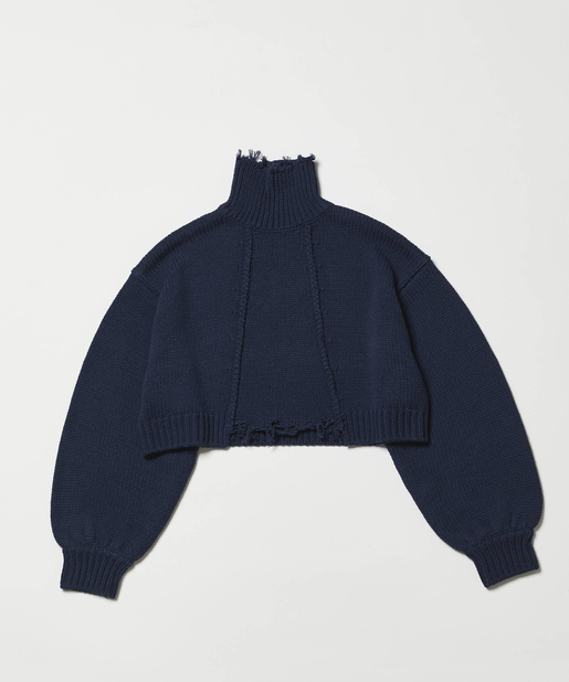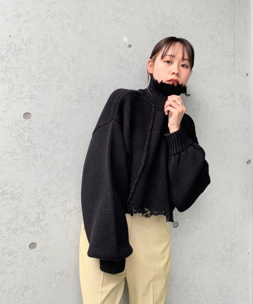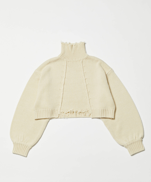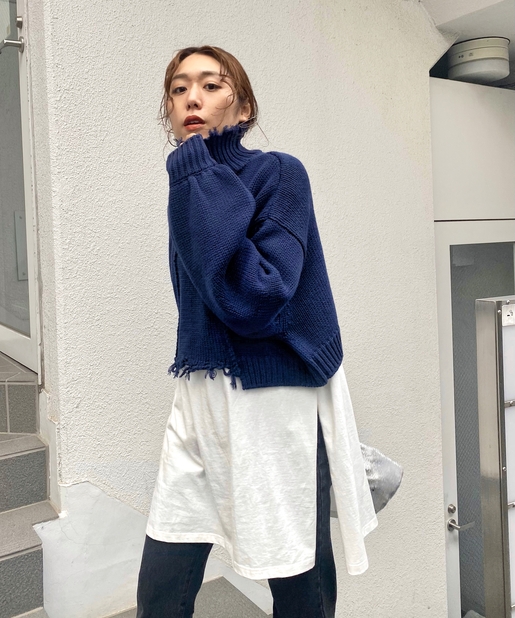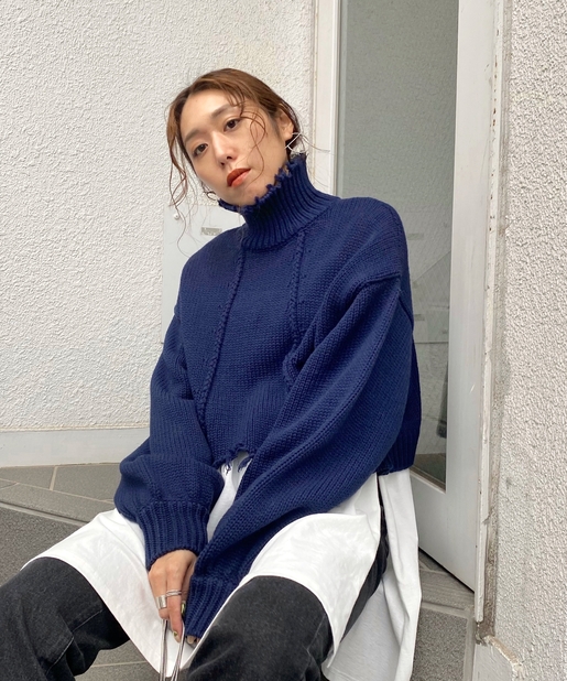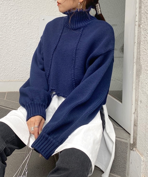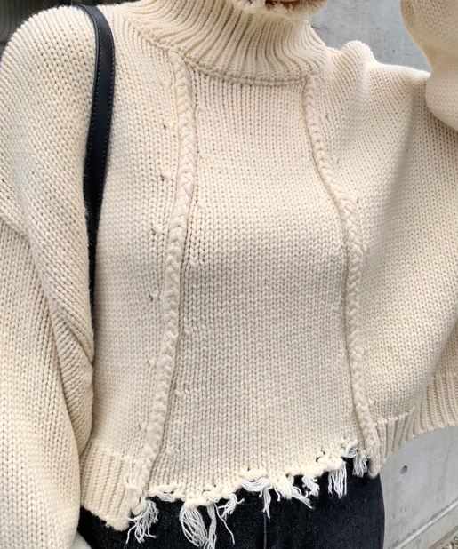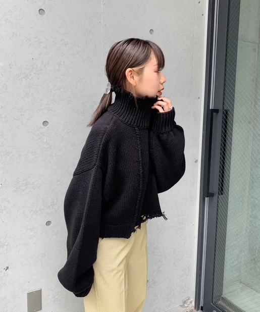立体的なハイネック×ショート丈のバランスがカワイイ!ダメージニット
