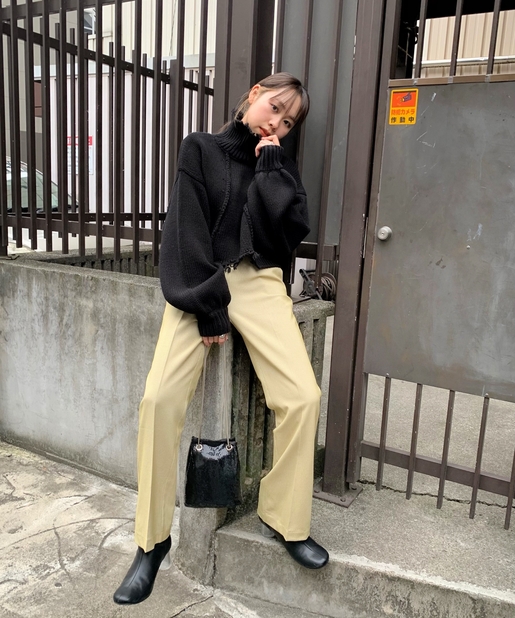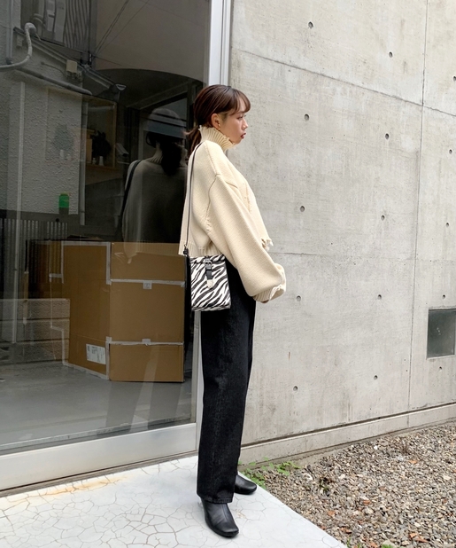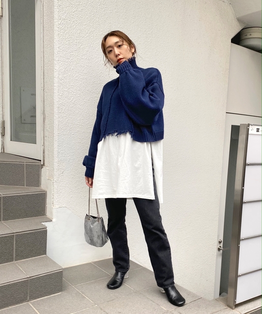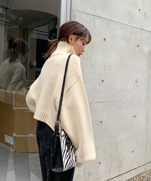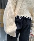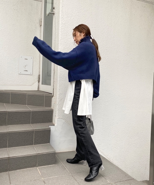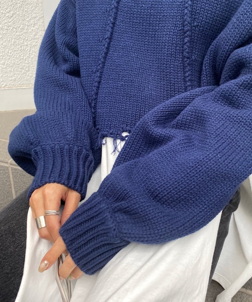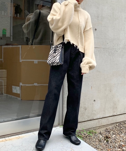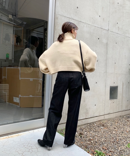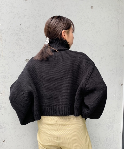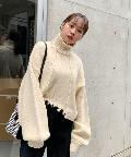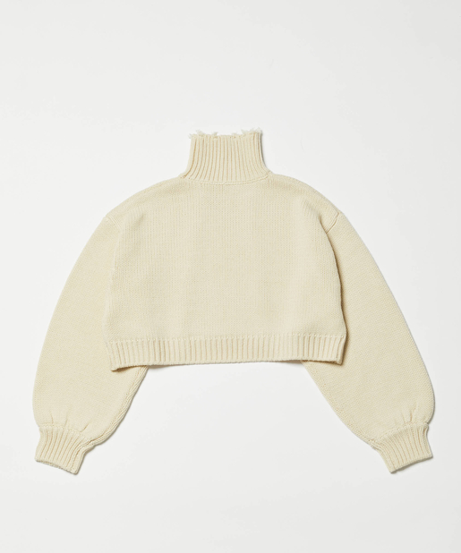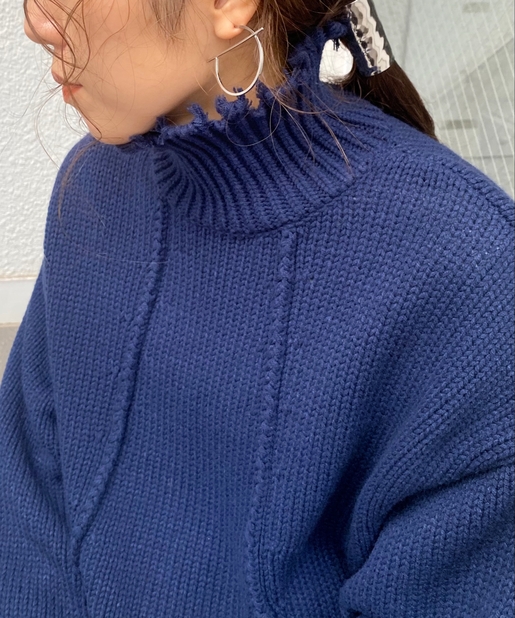立体的なハイネック×ショート丈のバランスがカワイイ!ダメージニット