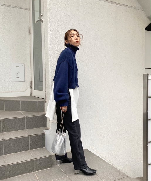 ・身幅がゆったりしており、インナーを着るのにもちょうど良いサイズ感。ショート丈なので、レイヤードスタイルにも最適!